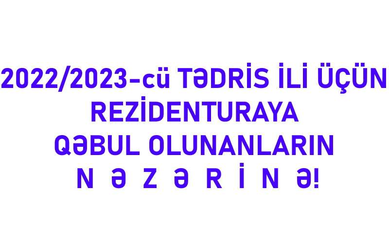 2022/2023-cü TƏDRİS İLİ ÜÇÜN REZİDENTURAYA QƏBUL OLUNANLARIN NƏZƏRİNƏ!