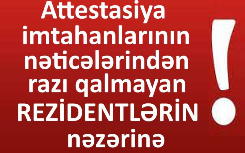 2021-Cİ İLİN OKTYABR AYINDA VƏ DAHA ÖNCƏKİ İLLƏRDƏ KEÇİRİLMİŞ YEKUN ATTESTASİYADA İŞTİRAK ETMƏYƏN VƏ YA İŞTİRAK EDİB QEYRİ-KAFİ QİYMƏT ALAN REZİDETLƏRİN NƏZƏRİNƏ!