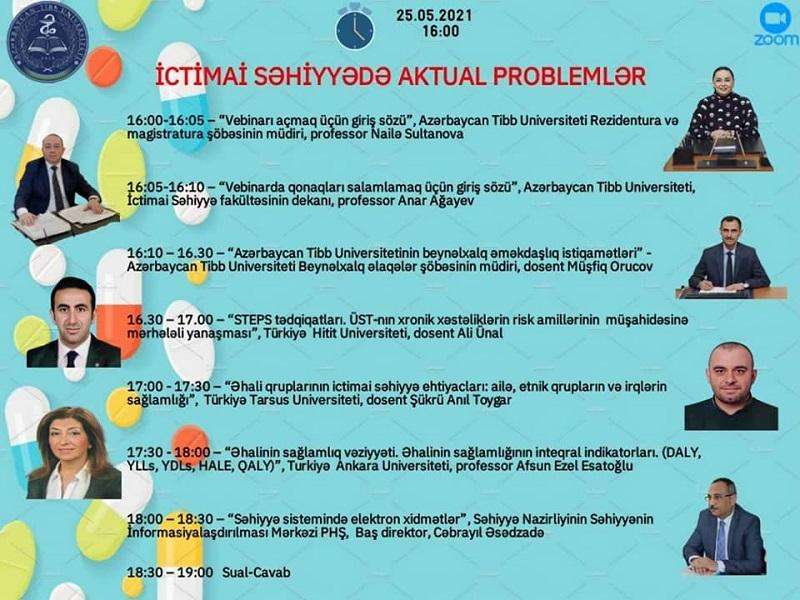 Mayın 25-26-da Azərbaycan Tibb Universitetində "İctimai səhiyyədə aktual problemlər" mövzusunda vebinar keçiriləcək.