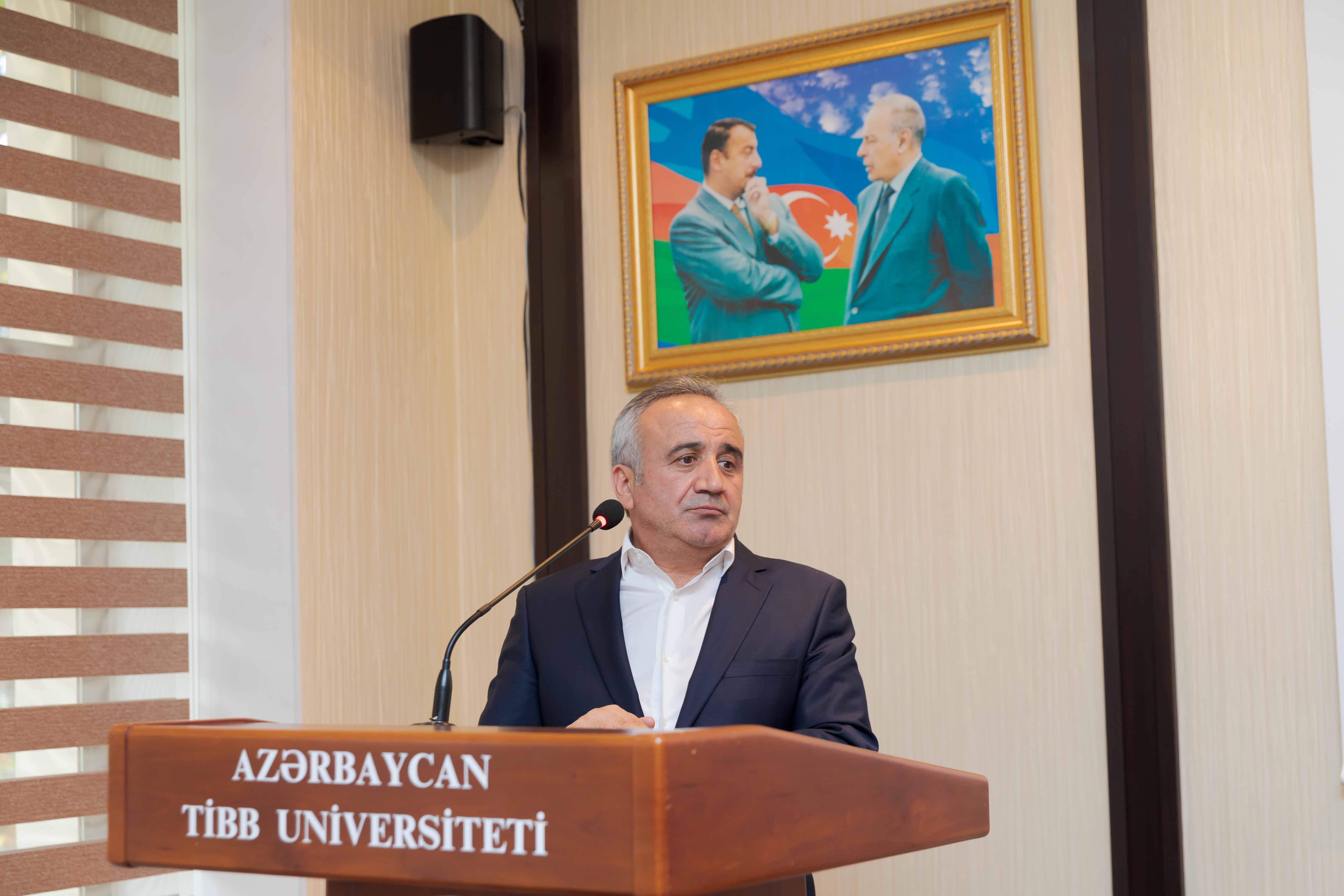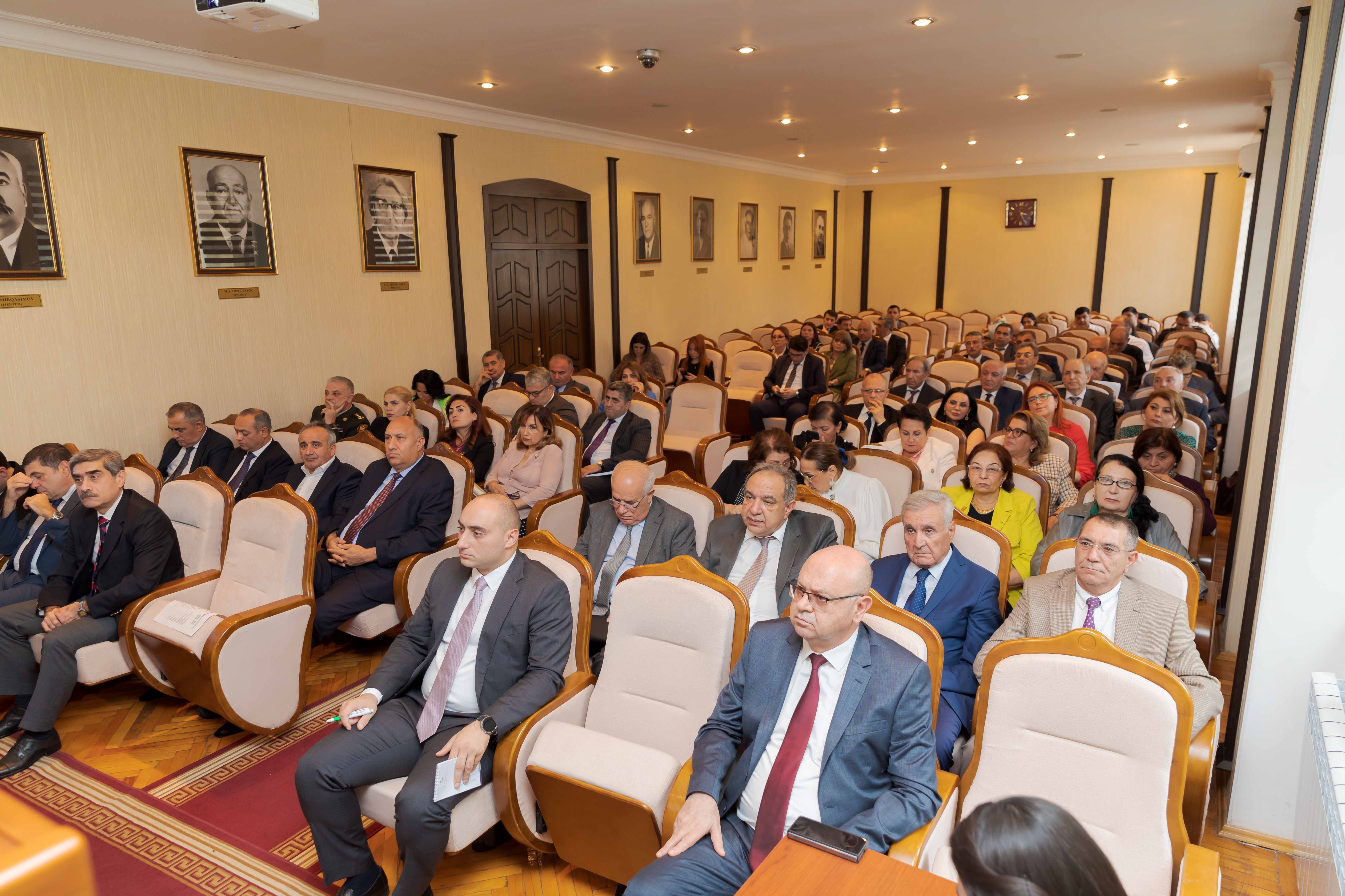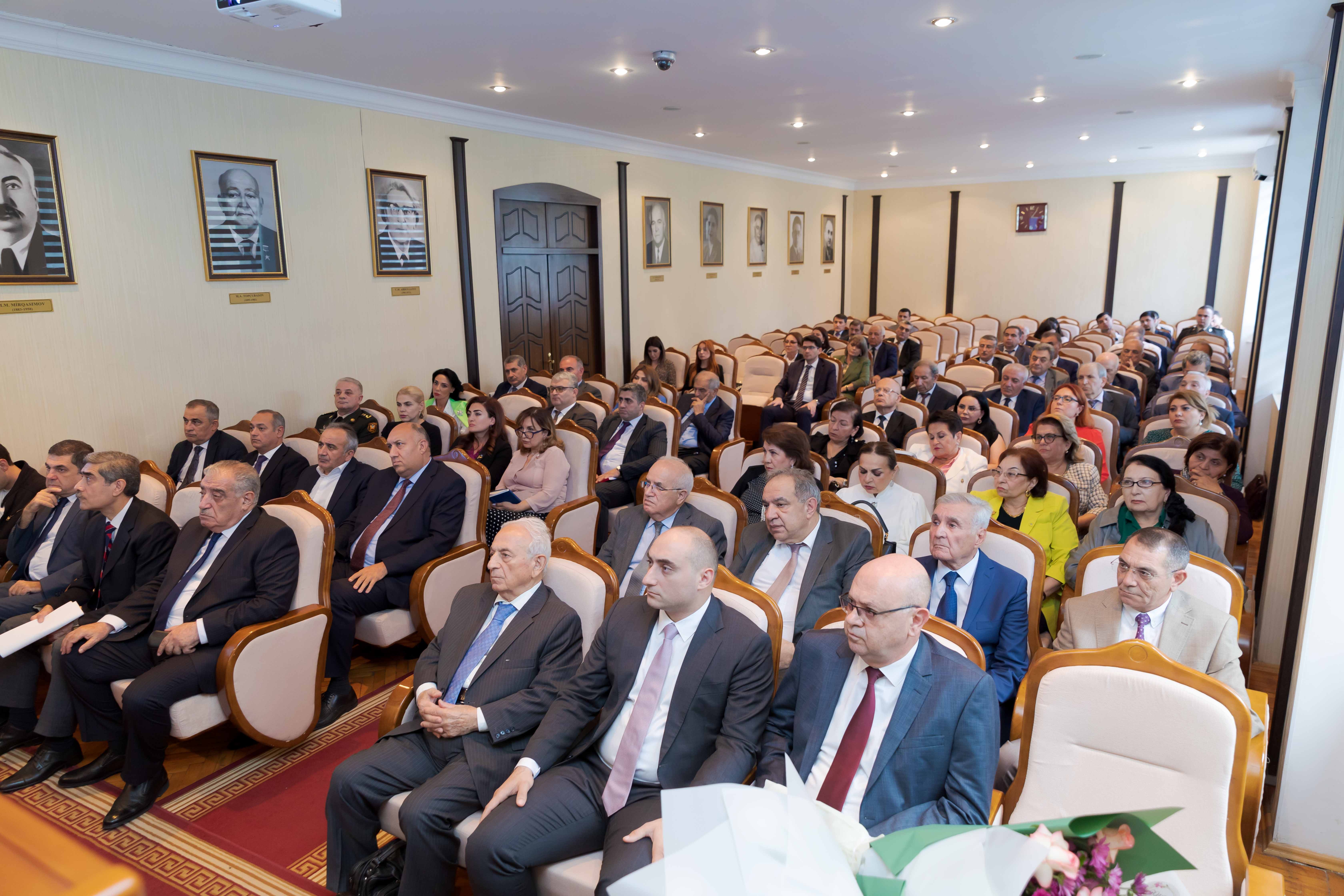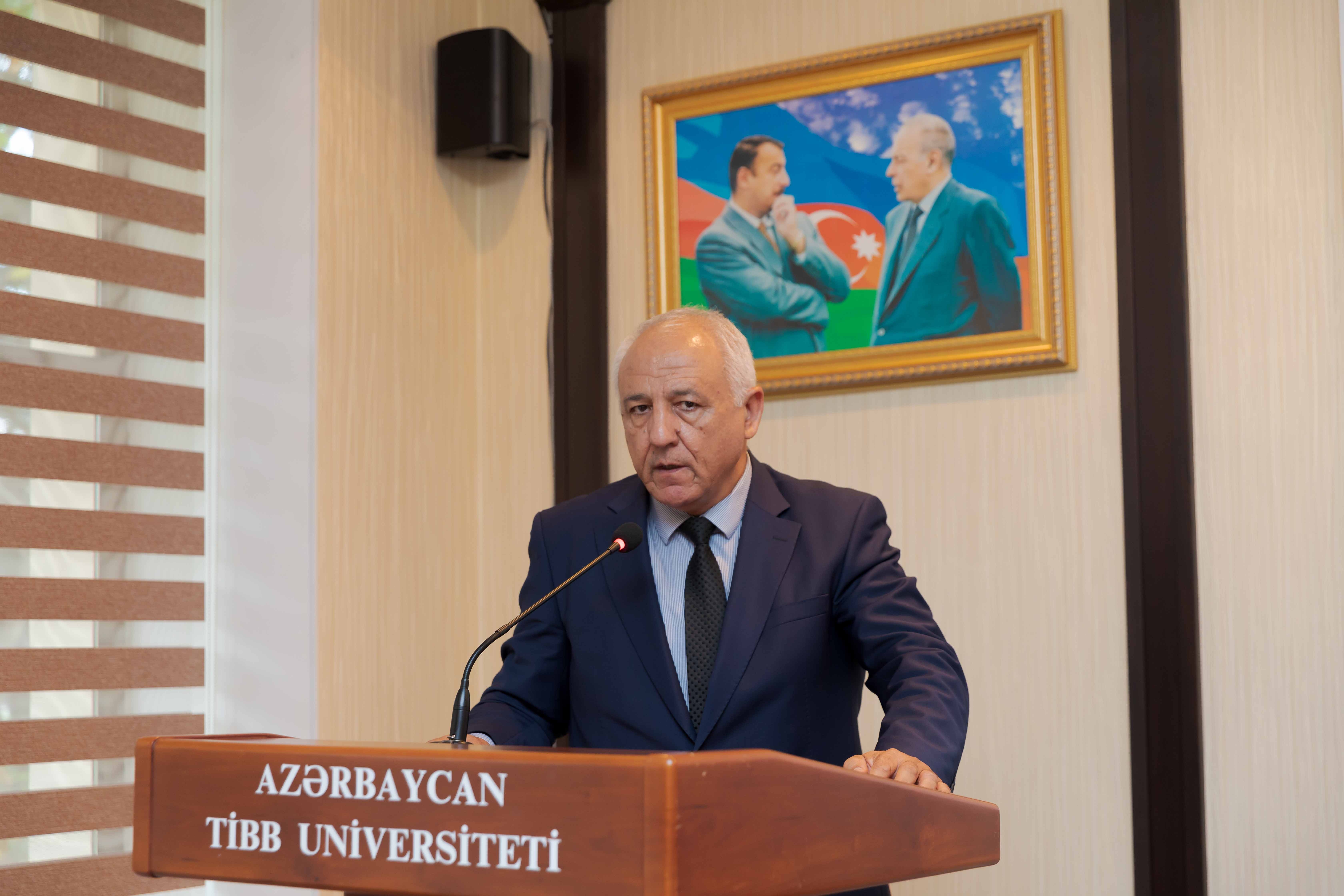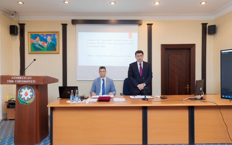 Gündəlikdə duran məsələlərin müzakirəsindən öncə II Qarabağ müharibəsindən 3 il ötdüyünü xatırladan rektor, müzəffər Ali Baş Komandan cənab İlham Əliyevin rəhbərliyi altında rəşadətli ordumuzun şanlı qələbəsindən danışıb. O, 44 günlük Vətən müharibəsində 30 il işğal altında qalan torpaqlarımızın azad edildiyini, bu il sentyabrın 20-də isə 24 saatdan da az müddətdə həyata keçirilən lokal antiterror tədbirləri nəticəsində Azərbaycanın öz suverenliyini tam bərpa etdiyini diqqətə çatdırıb. Torpaqlarımızın işğaldan azad edilməsi uğrunda gedən döyüşlərdə və antiterror əməliyyatı zamanı həyatlarını itirən şəhidlərimizin xatirəsi bir dəqiqəlik sükutla yad olunub.