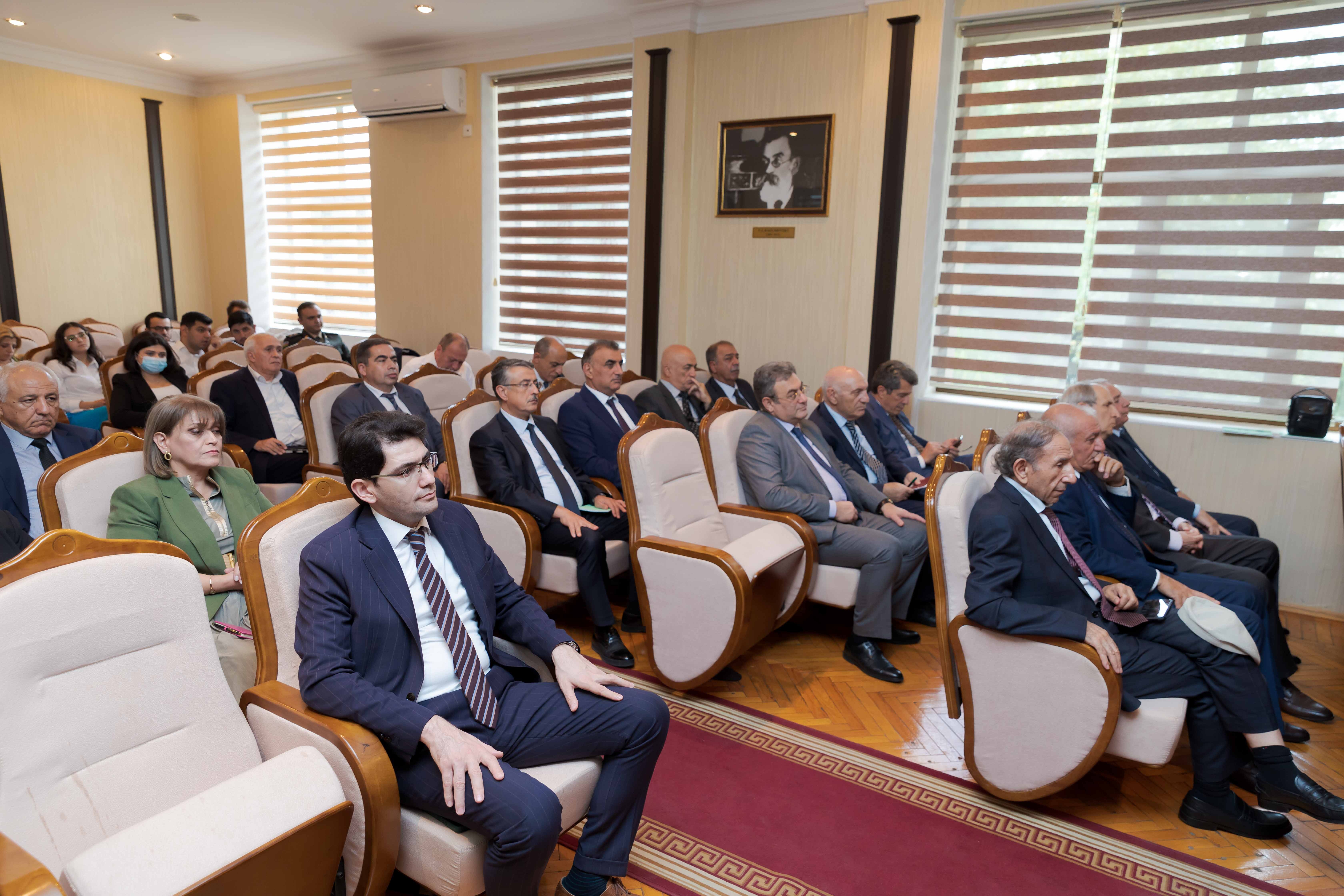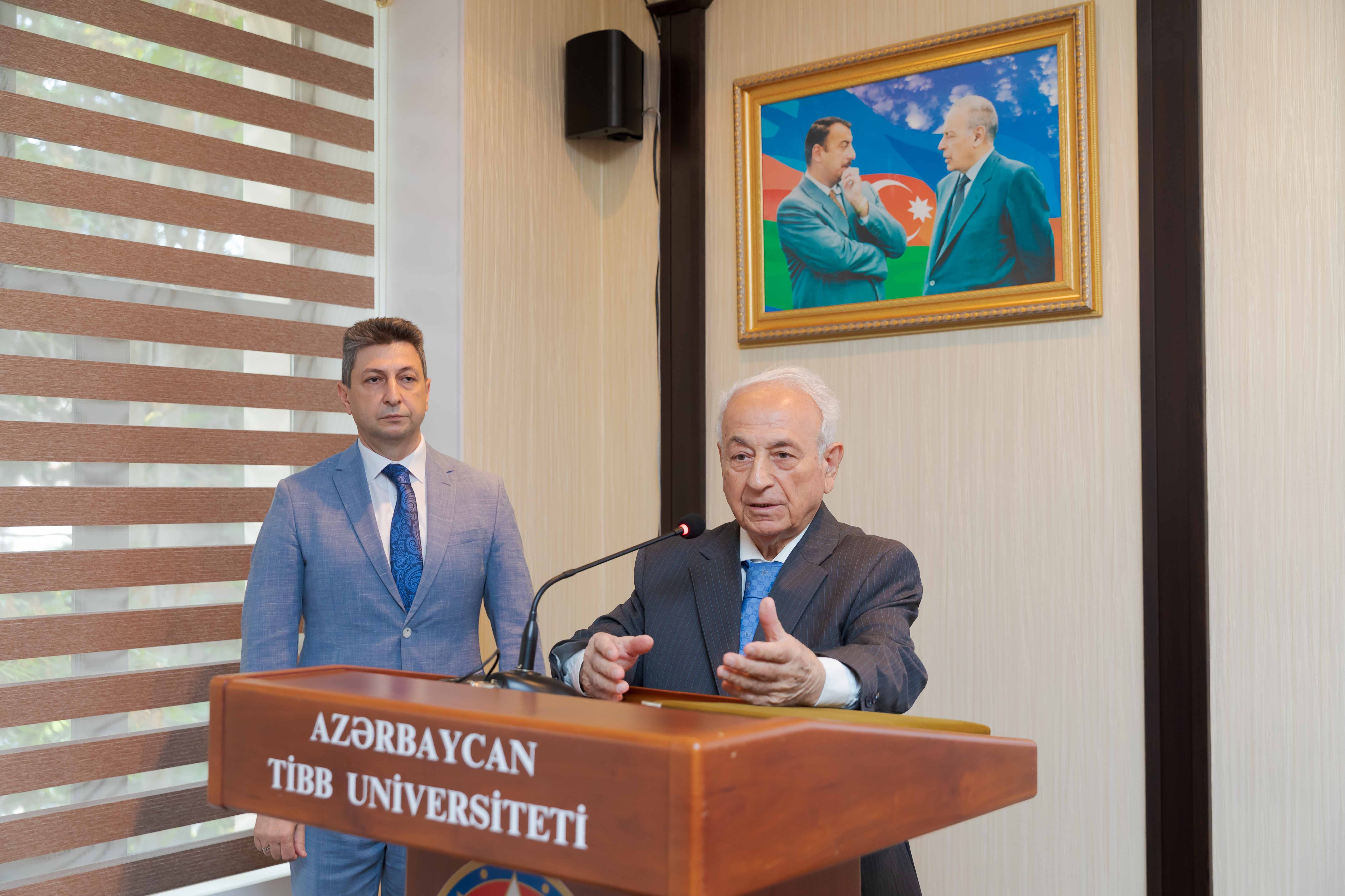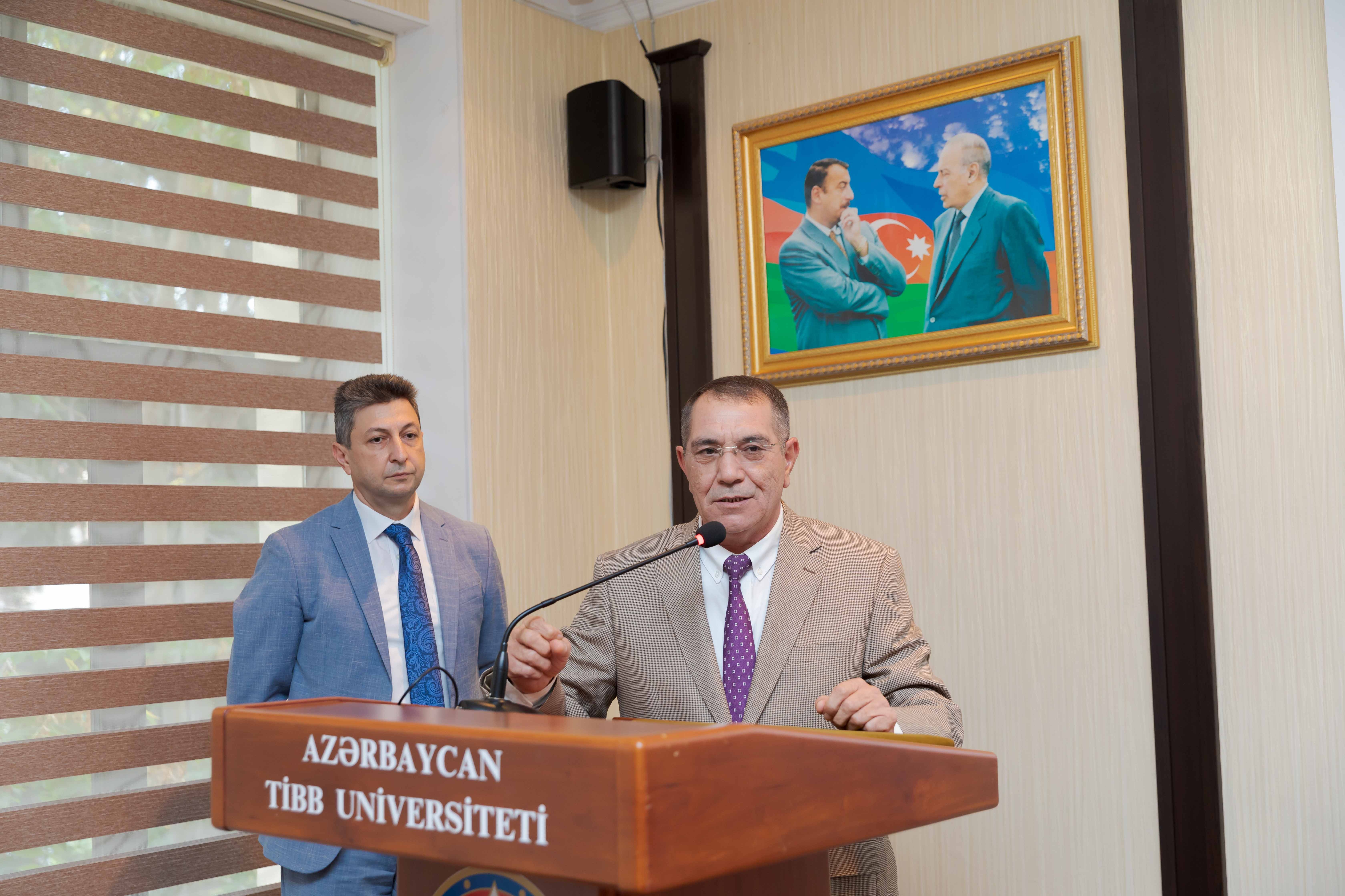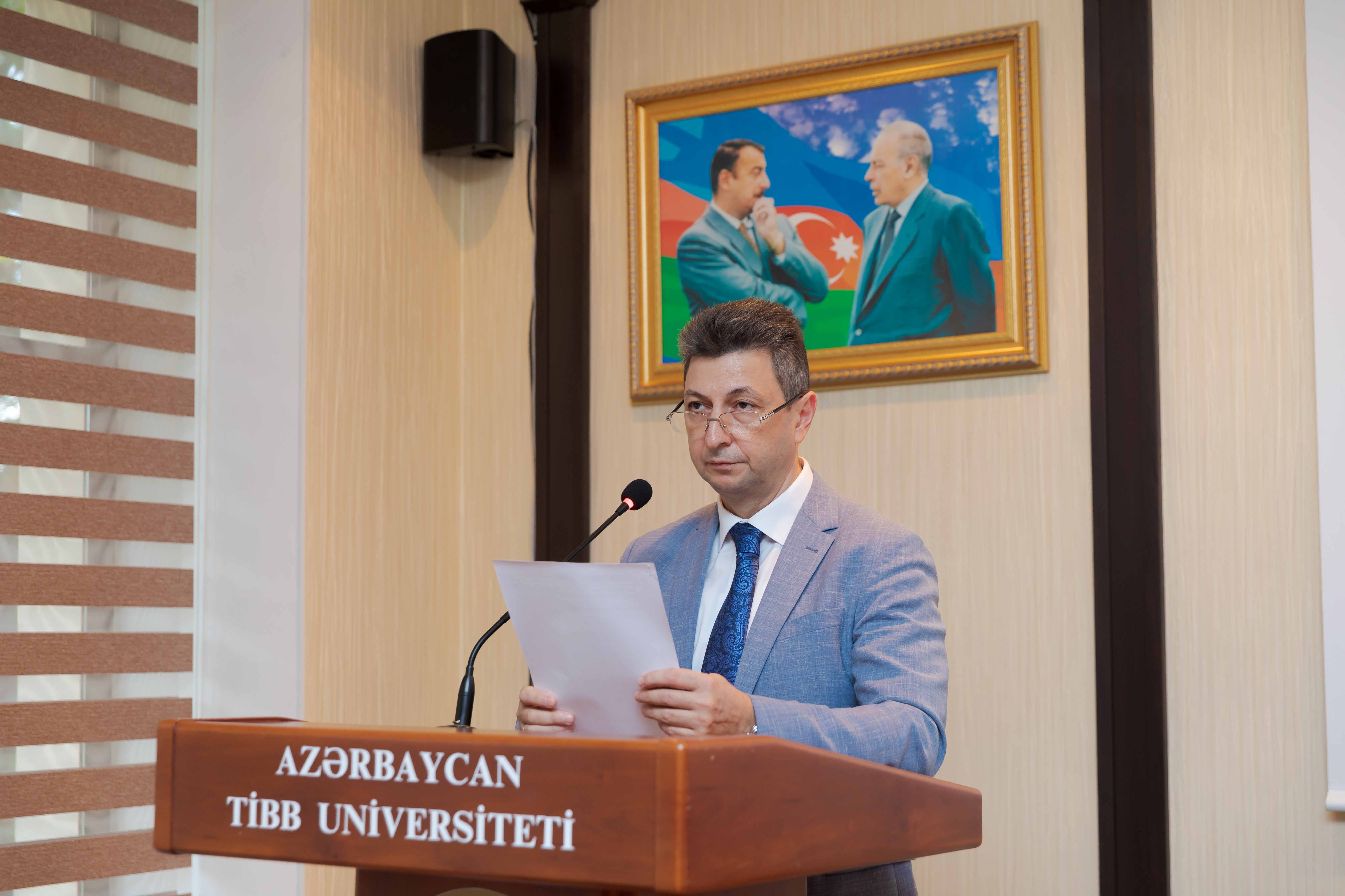 Gündəlikdə duran məsələlərin müzakirəsindən öncə II Qarabağ müharibəsindən 3 il ötdüyünü xatırladan rektor, müzəffər Ali Baş Komandan cənab İlham Əliyevin rəhbərliyi altında rəşadətli ordumuzun şanlı qələbəsindən danışıb. O, 44 günlük Vətən müharibəsində 30 il işğal altında qalan torpaqlarımızın azad edildiyini, bu il sentyabrın 20-də isə 24 saatdan da az müddətdə həyata keçirilən lokal antiterror tədbirləri nəticəsində Azərbaycanın öz suverenliyini tam bərpa etdiyini diqqətə çatdırıb. Torpaqlarımızın işğaldan azad edilməsi uğrunda gedən döyüşlərdə və antiterror əməliyyatı zamanı həyatlarını itirən şəhidlərimizin xatirəsi bir dəqiqəlik sükutla yad olunub.