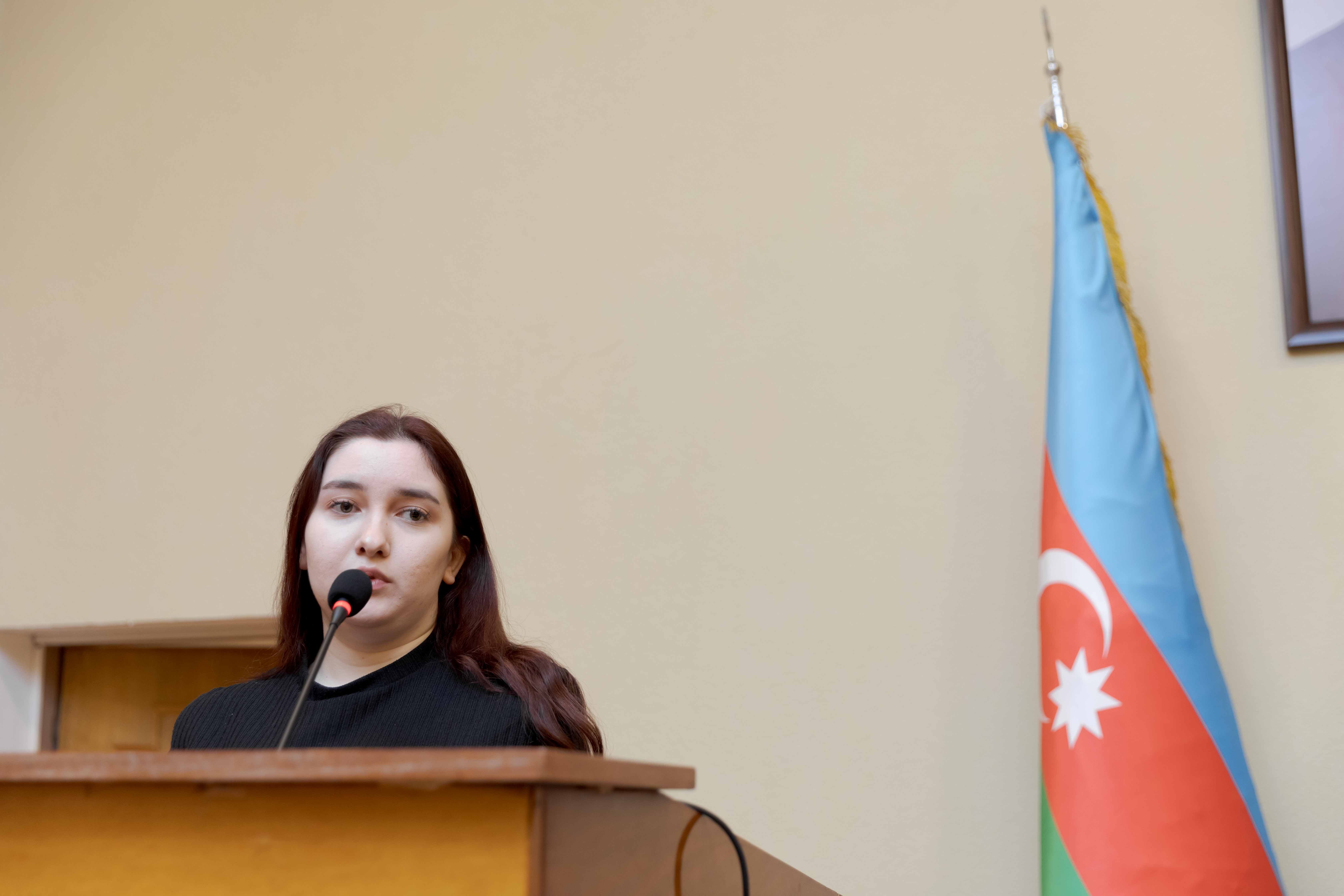İctimai səhiyyə fakültəsinin tələbəsi Fidan Rəhmanlı və Müalicə-profilaktika fakültəsinin tələbəsi Selcan İsazadənin Xocalı soyqırımına dair bədii-publisist mahiyyətli çıxışları tədbir iştirakçılarını bir daha yaddaşlardan silinməyən o qanlı faciəyə qaytarıb. Onlar tariximizin şanlı və qanlı səhifələrinin gələcək nəsillərə ötürülməsində belə tədbirlərin yüksək vətənpərvərlik ruhu aşılaması baxımından əhəmiyyətini vurğulayıblar.