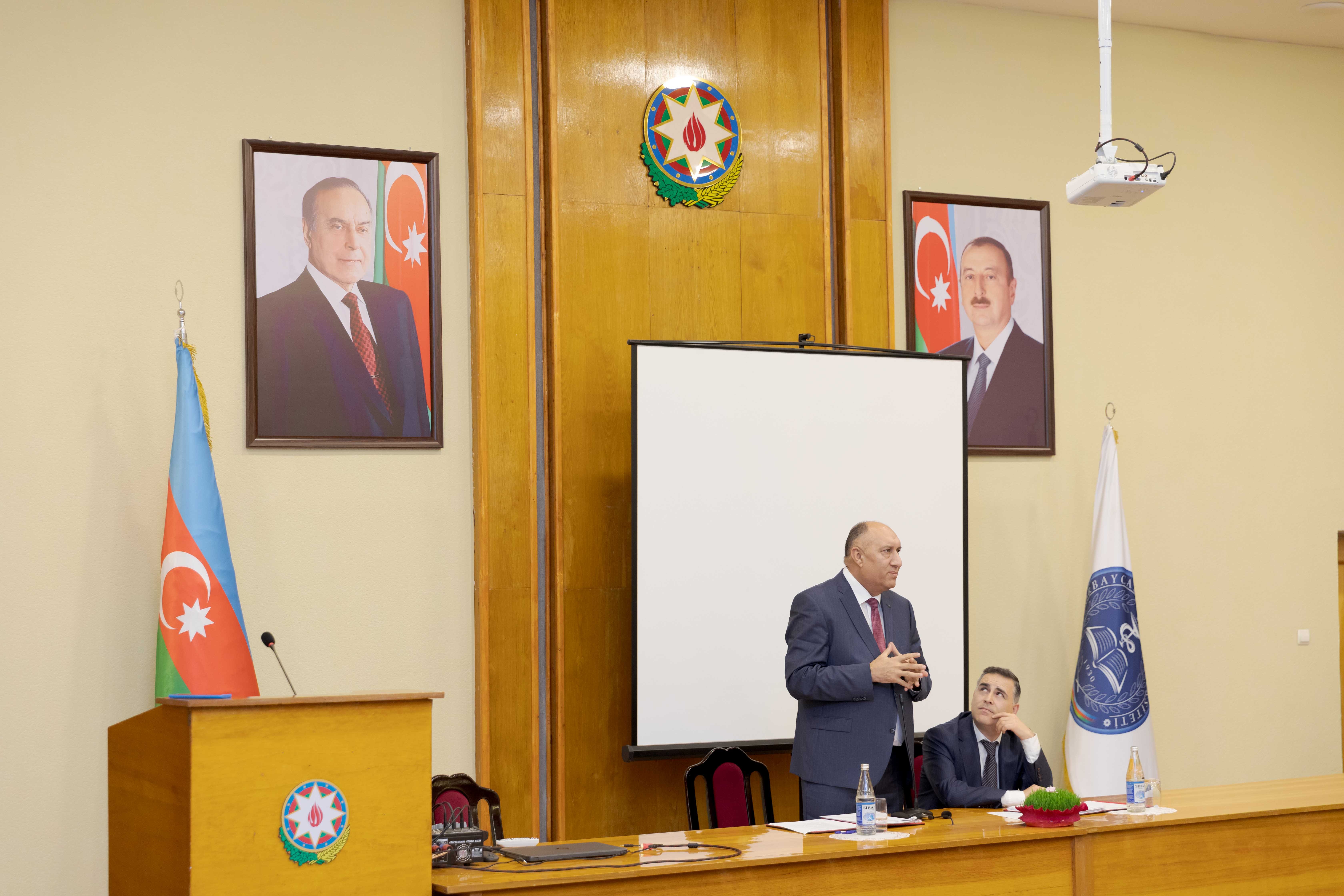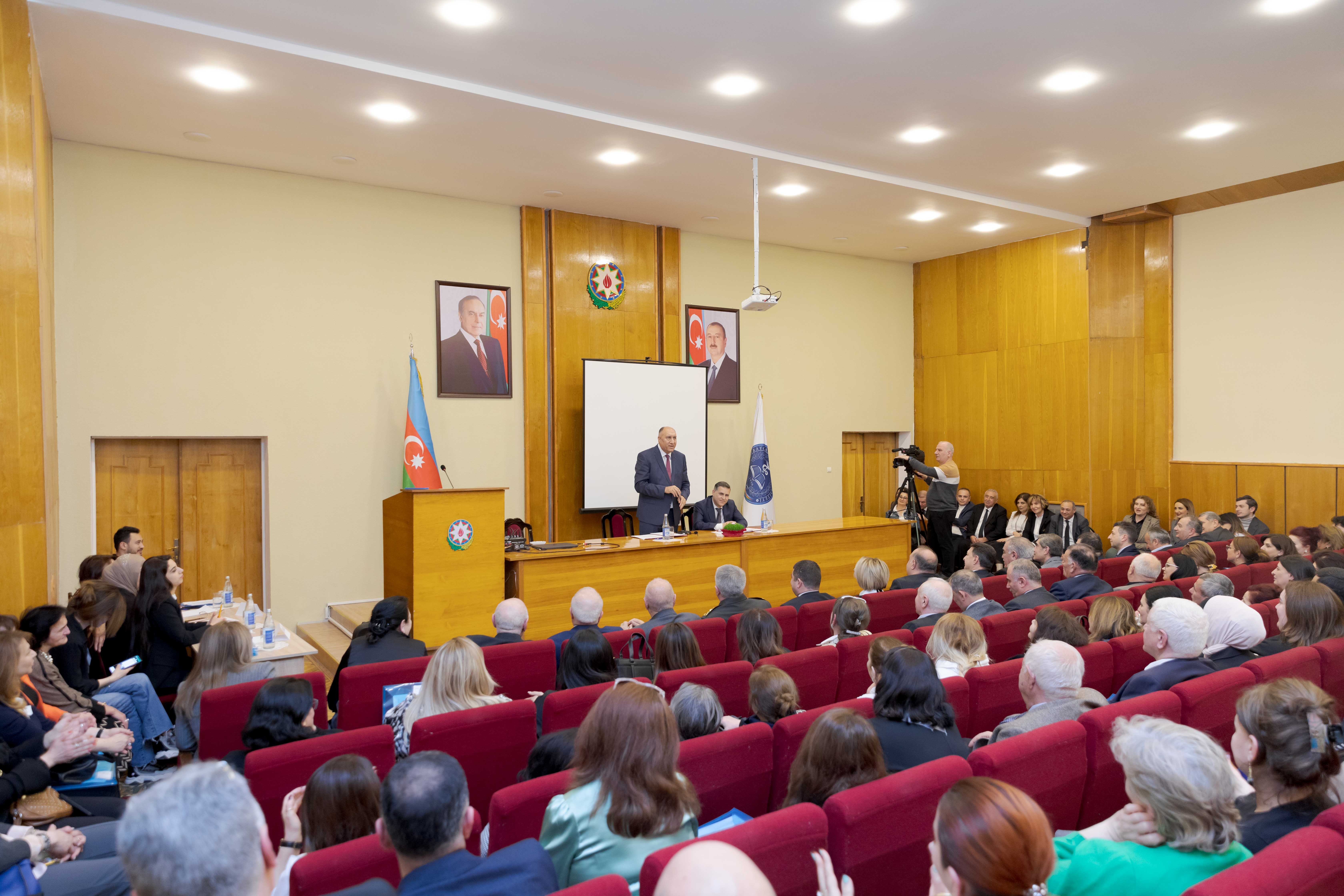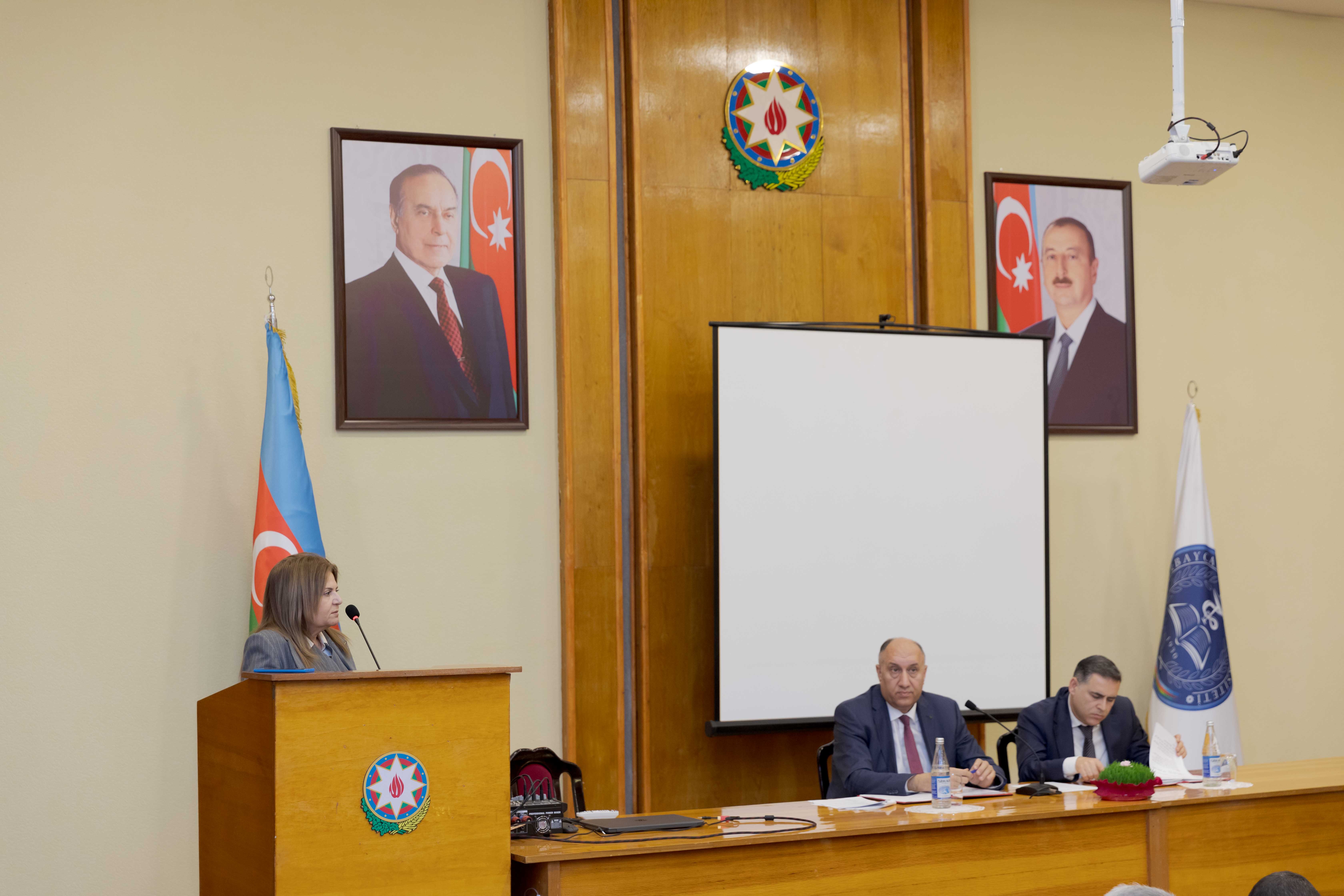 ATU HİK-in sədri, dosent Cahangir Qasımov çıxış edərək, son 7 il ərzində komitə tərəfindən görülən işlər haqqında danışıb. Bildirib ki, HİK-in XIV hesabat-seçki konfransı çox əlamətdar bir zamanda keçirilir: “Otuz il düşmən tapdağında olan torpaqlarımızın qaytarılmasına xalqımızın həmişə böyük ümidi və inamı vardı. Ulu Öndərin yaratdığı bu inam, qəhrəman ordumuzun döyüşkənlik ruhu və Müzəffər Ali Baş Komandanın qətiyyətli addımı ilə 2020-ci ildə 44 günlük Vətən müharibəsi nəticəsində torpaqlarımızın böyük bir hissəsi düşmən tapdağından azad edildi və tarixə 8 noyabr - Zəfər Günü kimi yazıldı. 2023-cü il sentyabr ayının 19-dan 20-nə keçən gecə isə antiterror əməliyyatı dövlət suverenliyimizin tam bərpa olunması ilə nəticələndi və İlham Əliyev cənabları Xankəndi şəhərində üçrəngli bayrağımızı ucaltdı. Bundan ruhlanan qədirbilən xalqımız bu il fevralın 7-də keçirilən növbədənkənar prezident seçkilərində yenidən Müzəffər Ali Baş Komandan İlham Əliyevə səs verdi”.