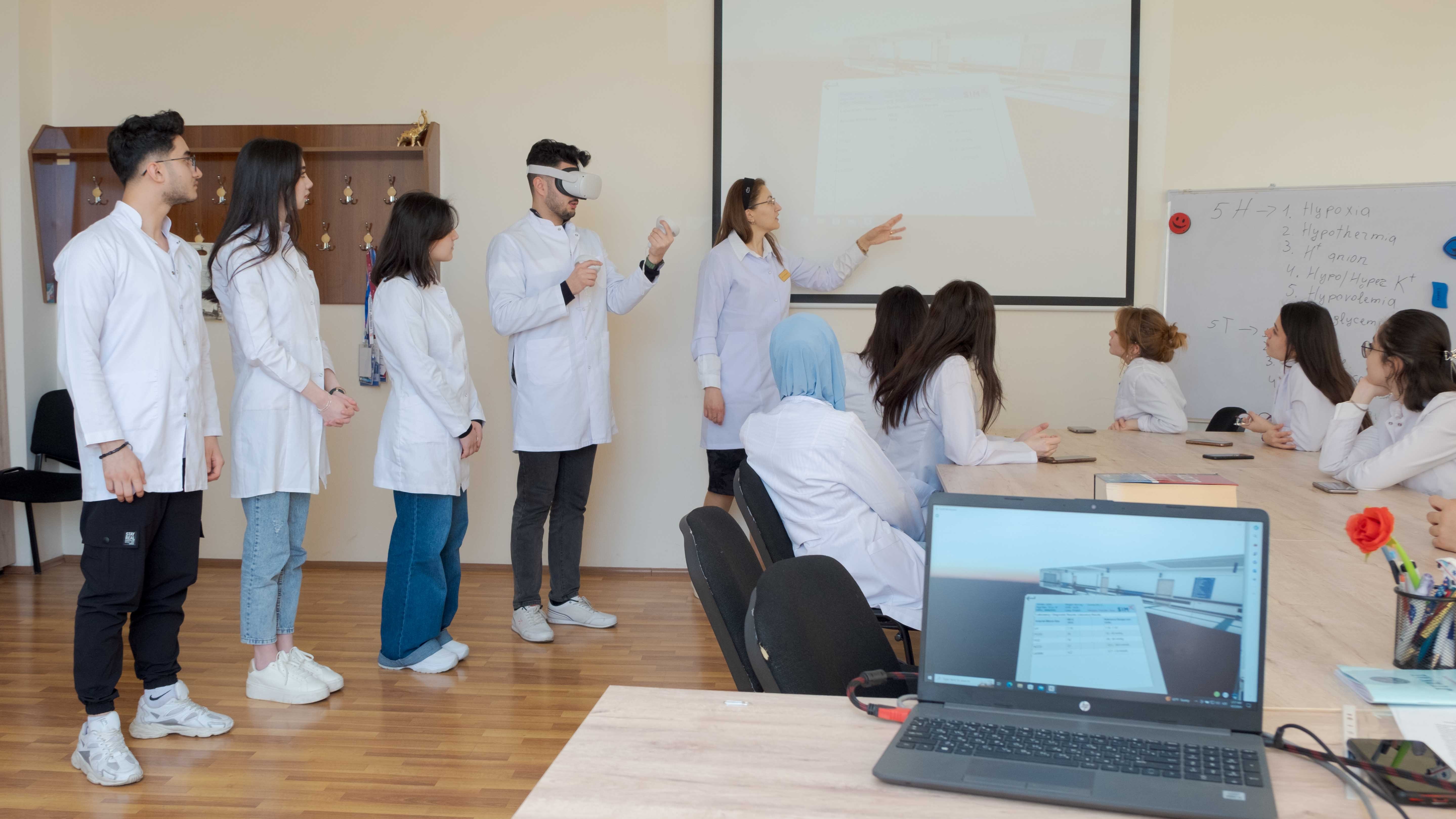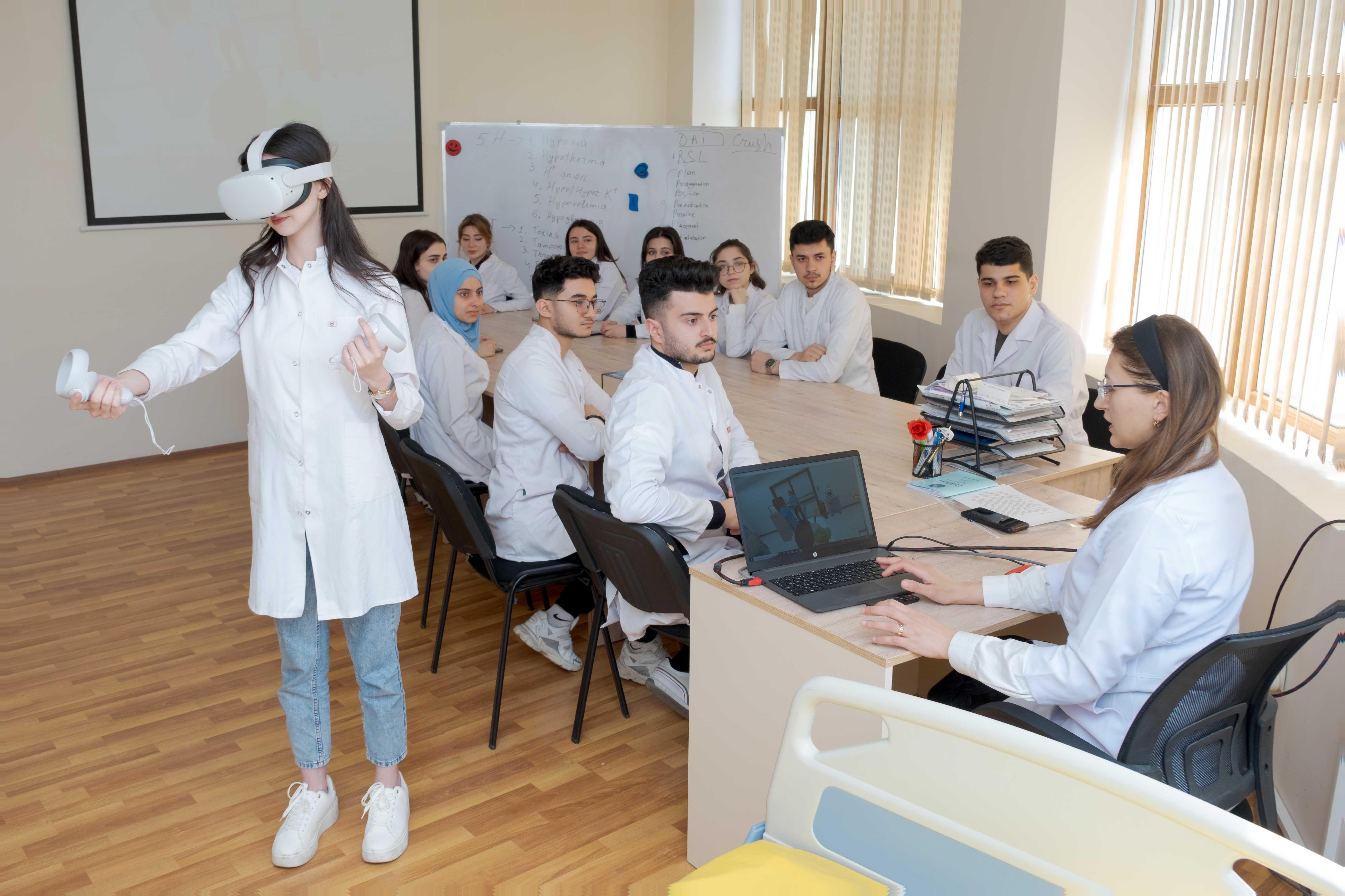 Kafedrada VR-ın (virtual reality) tətbiqi tələbələrin kritik situasiyalara aid biliklərini, bacarıqlarını, ən əsası isə, davranışlarını inkişaf etdirməyə və qiymətləndirməyə xidmət edir. VR simulyasiya dərsləri ilə tələbələr müxtəlif ssenarilər üzrə (multitravma, pediatrik sinkop, septik şok, döş qəfəsi ağrısı və s.) baş verə biləcək ölümün qarşısını alır, xəstəni stabilləşdirir və xəstə menecmentini həyata keçirirlər.