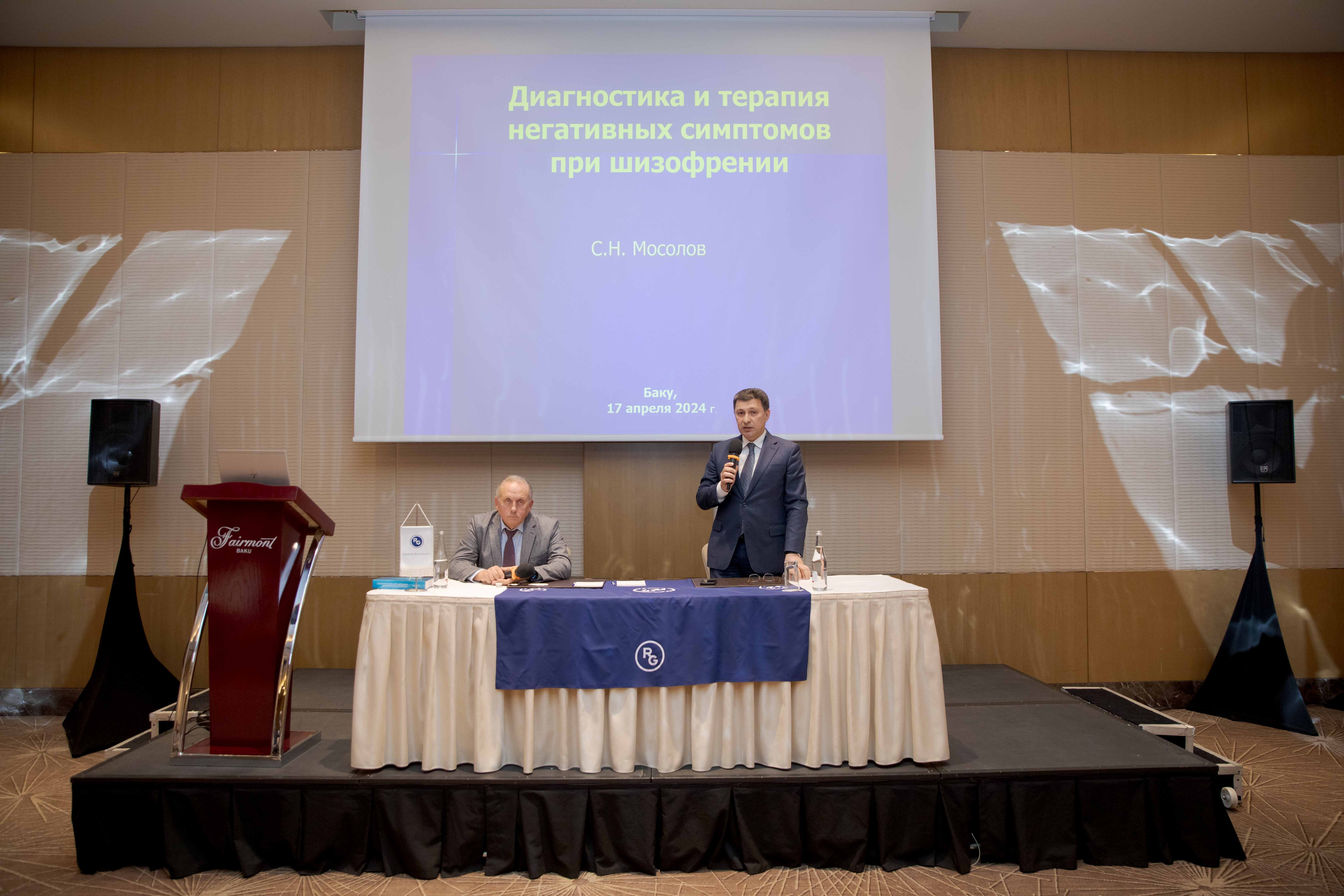 Sonra V.P.Serbski adına Milli Tibbi Tədqiqat Psixiatriya və Narkologiya Mərkəzinin filialı olan Moskva Elmi-Tədqiqat Psixiatriya İnstitutunun psixi xəstəliklərin müalicəsi şöbəsinin müdiri, Rusiya Tibb Akademiyasının Davamlı Peşəkar Təhsil Psixiatriya kafedrasının müdiri, t.e.d., Rusiya Federasiyasının əməkdar elm xadimi, professor Sergey Mosolov “Şizofreniyanın neqativ simptomlarının diaqnostikası və müalicəsi” mövzusunda mühazirə ilə çıxış edib. O, şizofreniyanın neqativ simptomlarının əksər hallarda bu xəstəliyin neqativ sosial nəticələrini müəyyən etdiyini bildirib. Eyni zamanda, son onilliklər ərzində bu əlamətlərin diaqnostik dəyərləndirilməsi və bu məsələyə yanaşmanın da əhəmiyyətli şəkildə dəyişdiyini vurğulayıb. Mühazirədə Rusiya Psixiatrlar Cəmiyyətinin keçirdiyi sorğuların nəticələri, rusiyalı mütəxəssislərin təcrübəsinə də istinad olunub. Qeyd olunub ki, şizofreniya xəstələrinin yarısından çoxunda ən azı bir neqativ simptom müşahidə olunur.