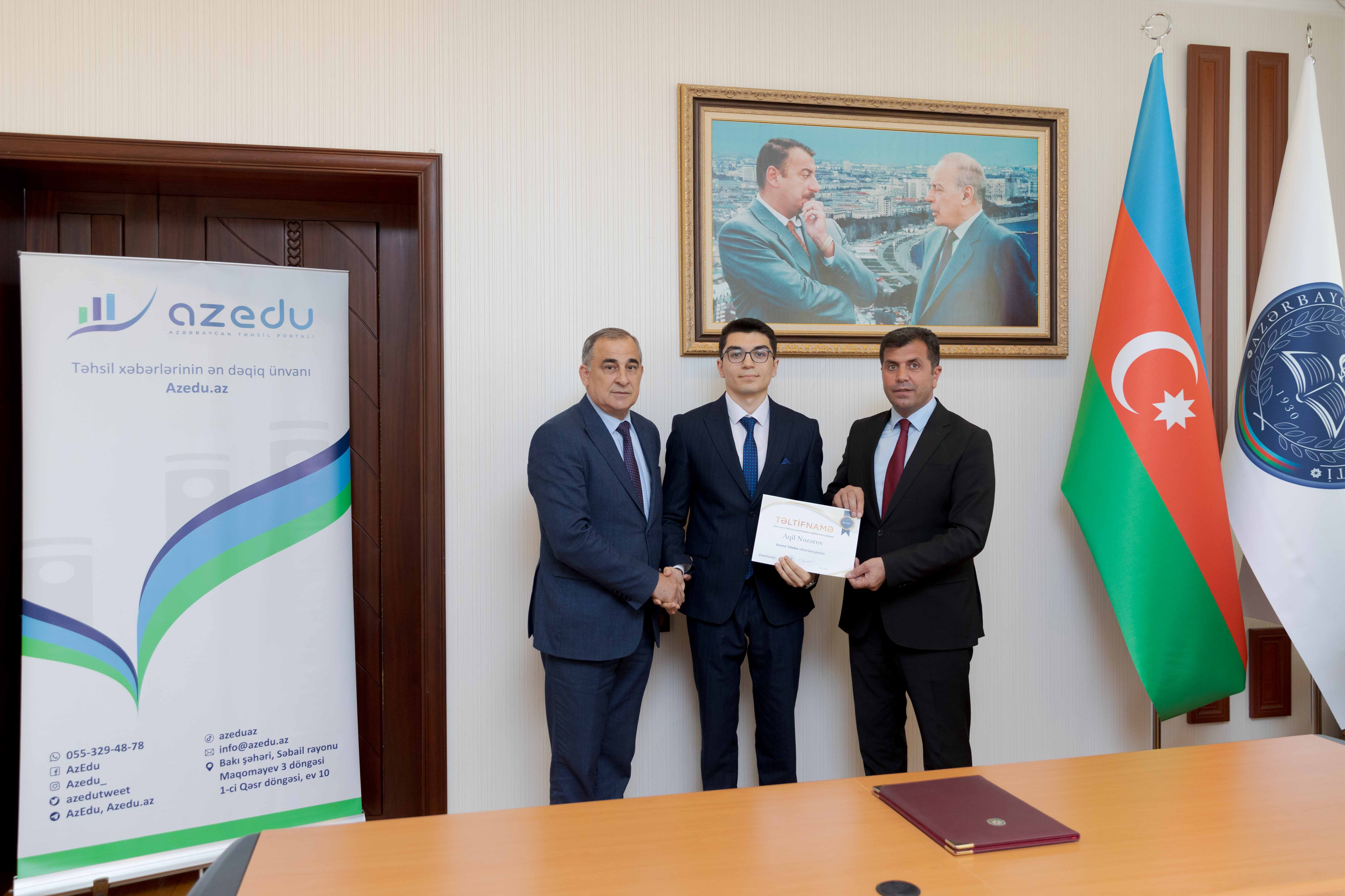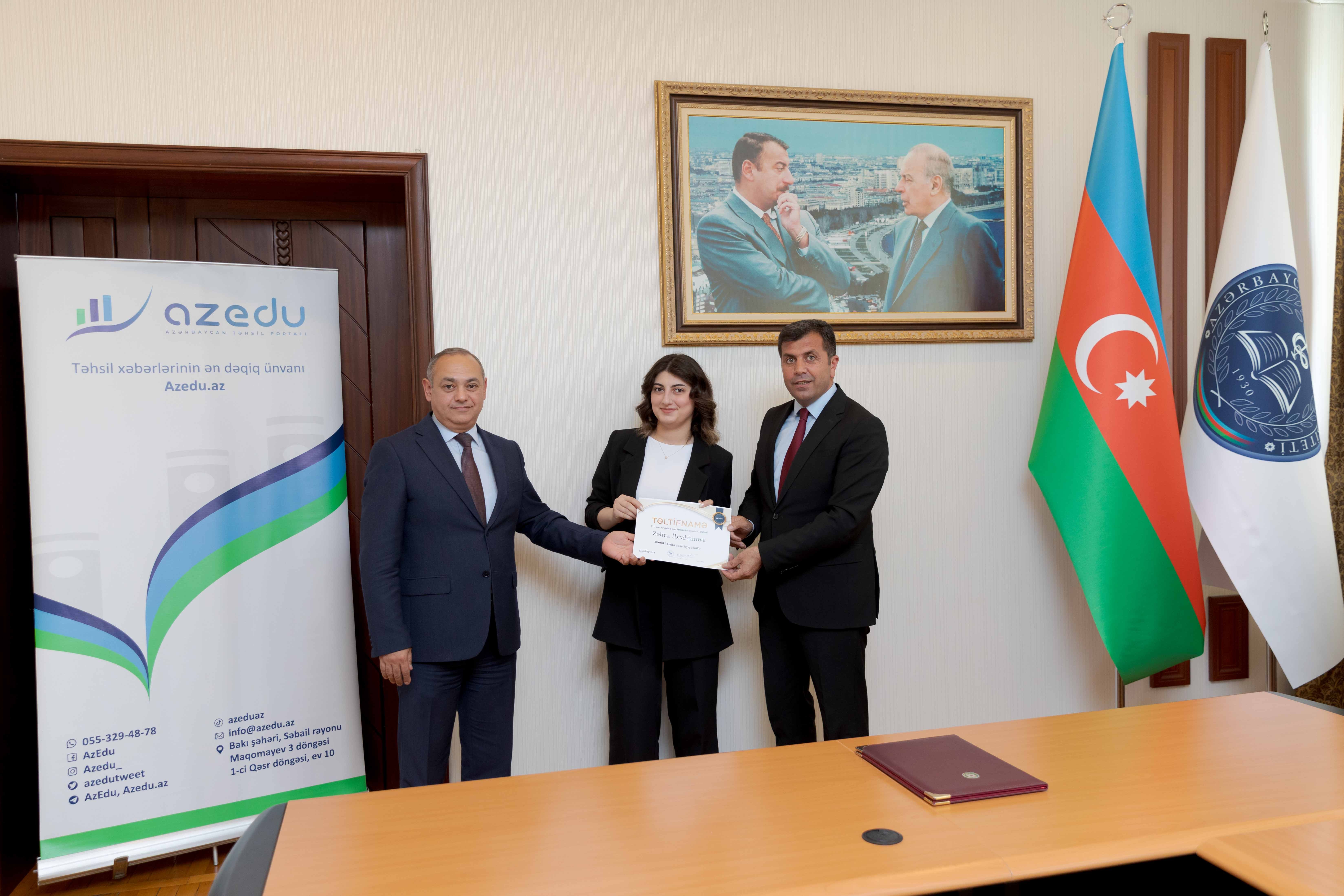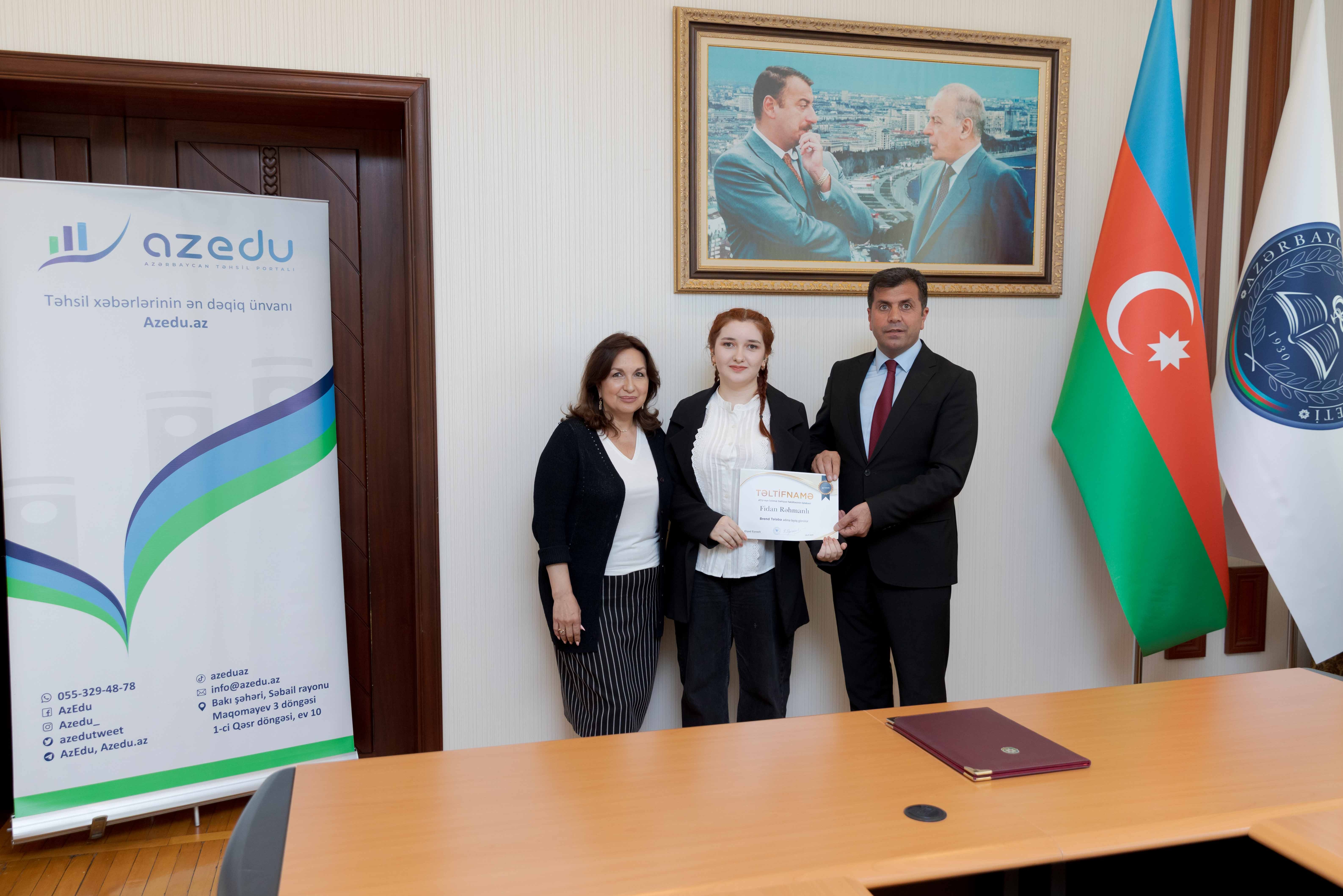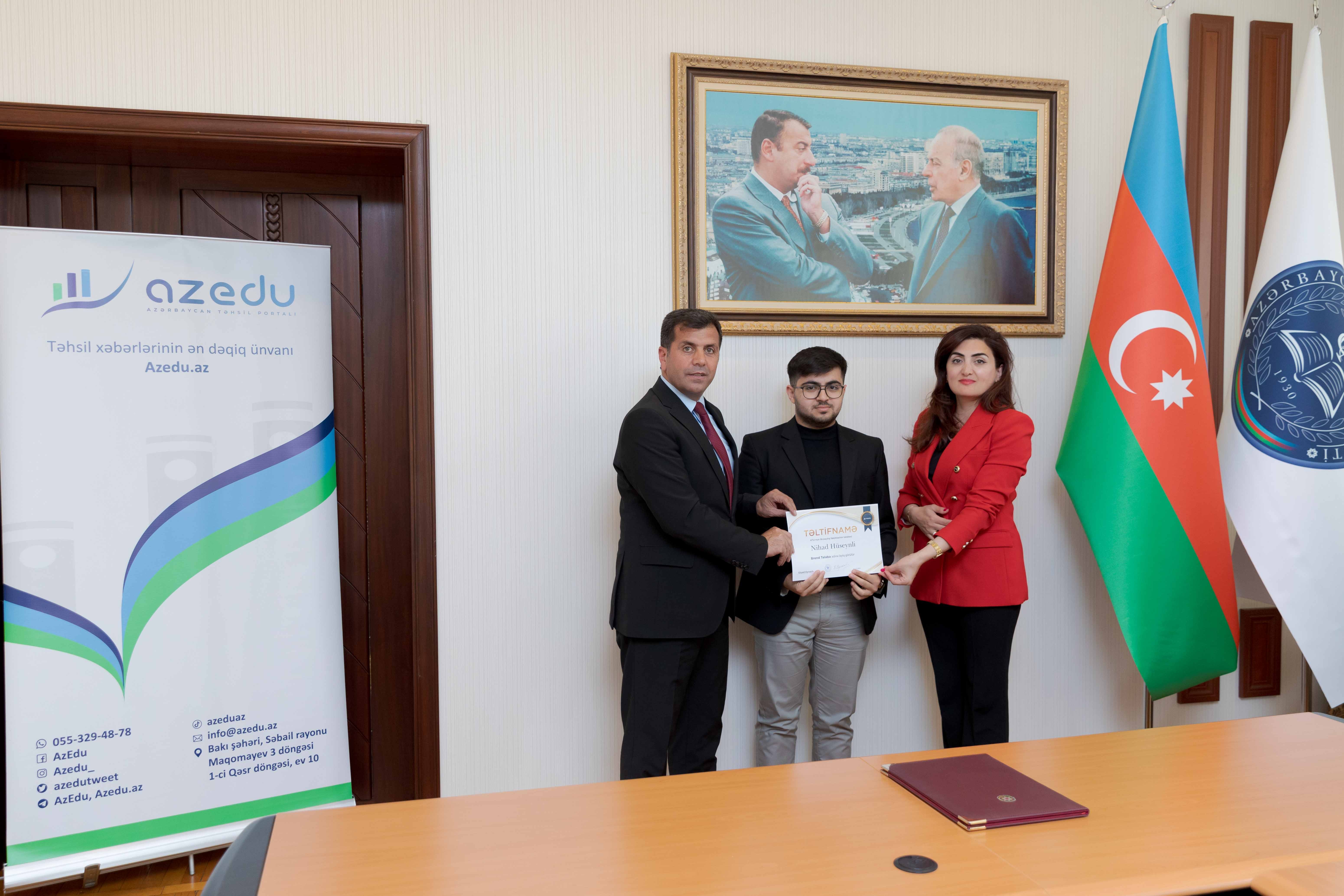Daha sonra Elşad Eyvazlı “Brend tələbə” adına layiq görülən tələbələrə gələcək fəaliyyətlərində uğurlar arzu edib.