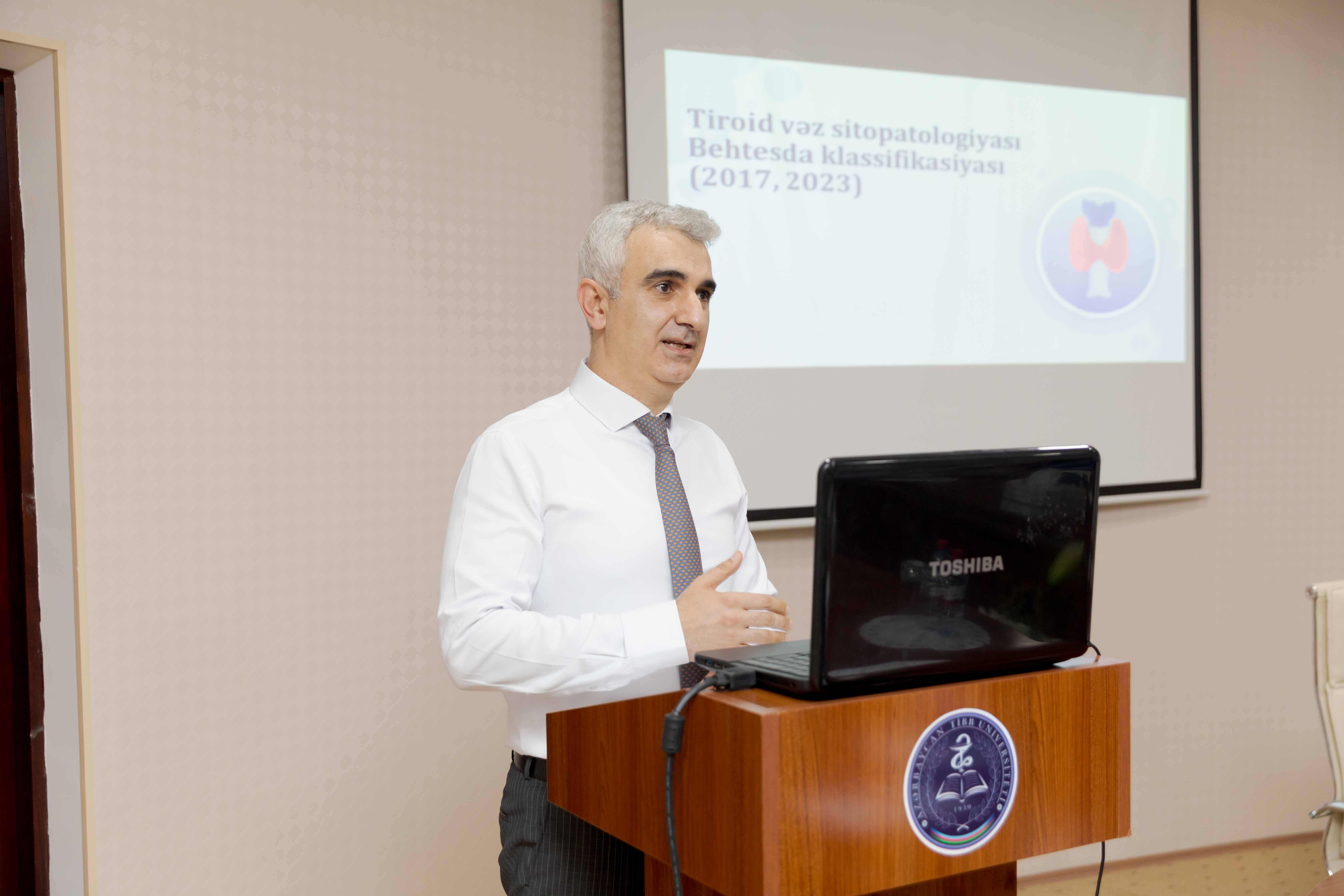 Azərbaycan Tibb Universitetinin (ATU) Tədris Cərrahiyyə Klinikasında “Qalxanabənzər vəzin Follikulyar düyünlərinin diaqnostika və müalicəsinə müasir yanaşma” adlı elmi-praktik seminarı keçirilib.