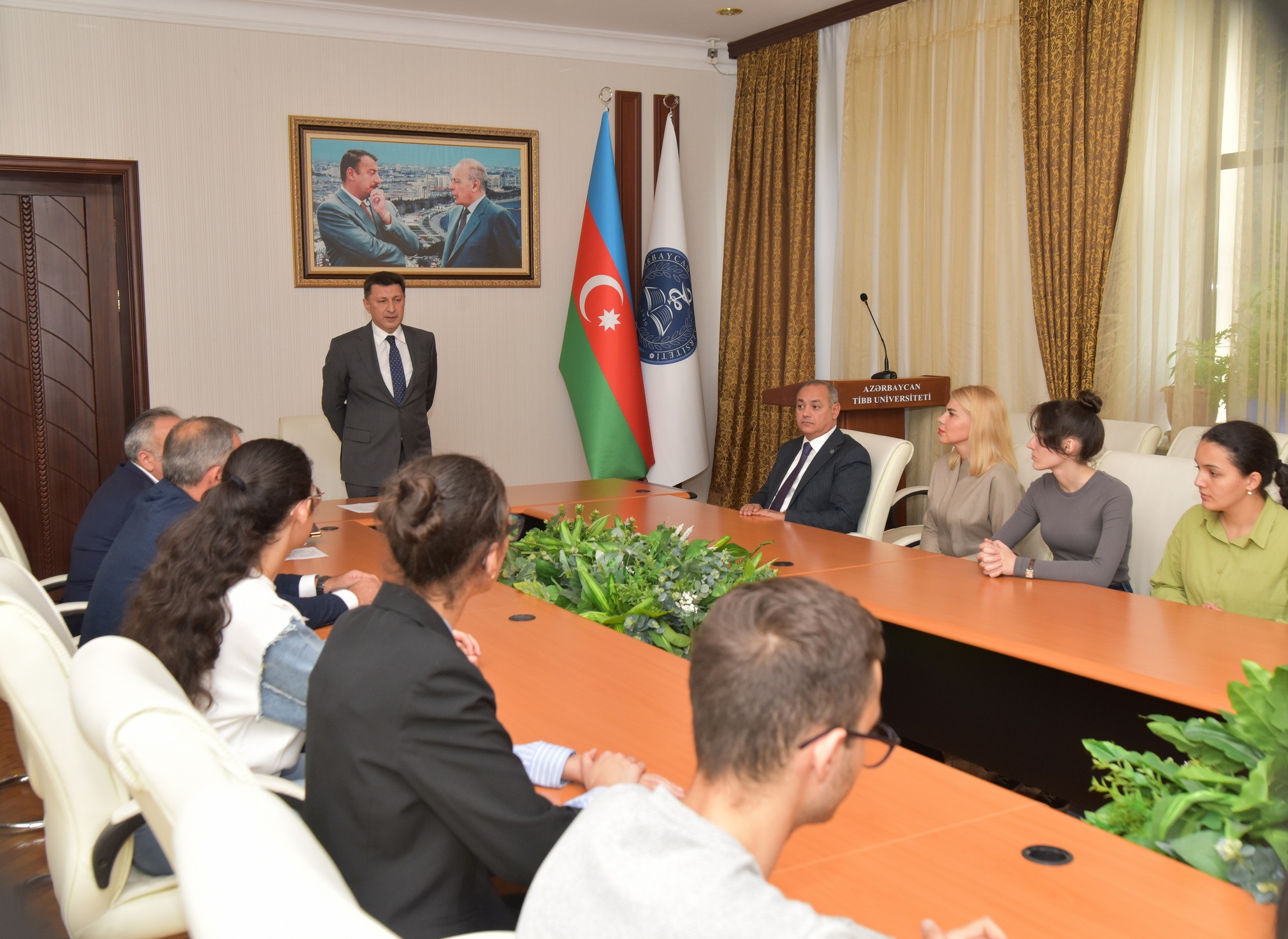 Professor G.Gəraybəyli 25 nəfərin əksəriyyətinin Müalicə-profilaktika fakültəsinin, bir nəfərin isə Stomatologiya fakültəsinin tələbələri olduğunu diqqətə çatdırıb. Dərslərin artıq yeni proqramla aparıldığını vurğulayan rektor, tələbələrə tövsiyələr də verib: “Çox istərdim ki, təhsil müddətində sayınız azalmasın. Biz universitetin Böyük Elmi Şurasında imtahan sessiyaları barədə məlumatları müzakirəyə çıxarır, Prezident təqaüdçülərinin göstəricilərini də təhlil edir, kimlərin bu adı qoruyub saxladığını, eləcə də sayın azalması səbəblərini araşdırırıq. Təbiidir ki, universitet təhsili kifayət qədər çətindir. Xüsusilə də Tibb Universitetində fənlər, dərsliklər və proqramlar çoxdur. Üstəlik də, proqramlar ilbəil təkmilləşir və dəyişir. Bu, zamanın tələbidir. Onları mənimsəmək xüsusi bir zəhmət və istedad tələb edir. Amma əminəm ki, hər birinizdə o bilik, o intellekt və o məsuliyyət hissi var. Arzu edirəm ki, Prezident təqaüdçüsü adını 6-cı kursun sonunadək qoruyub saxlaya biləsiniz”.