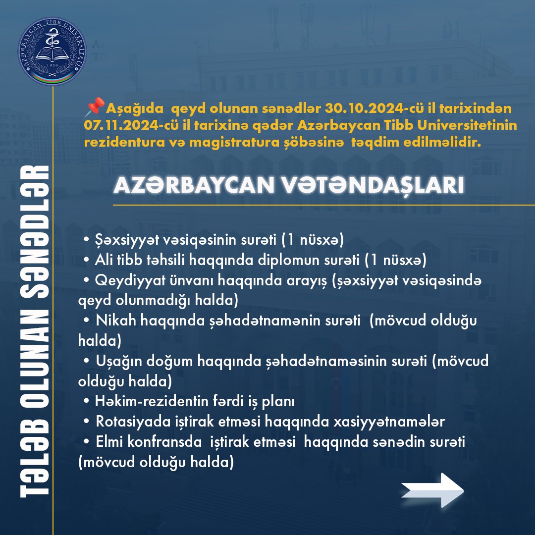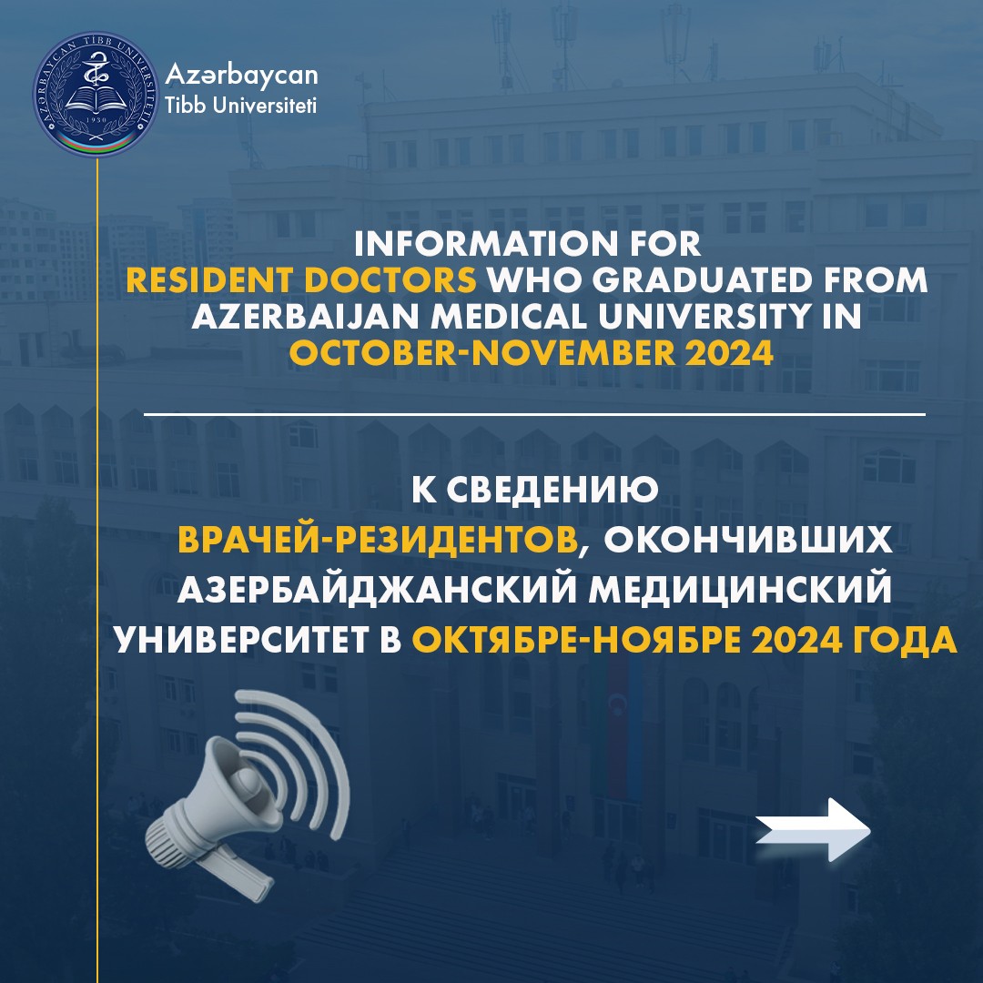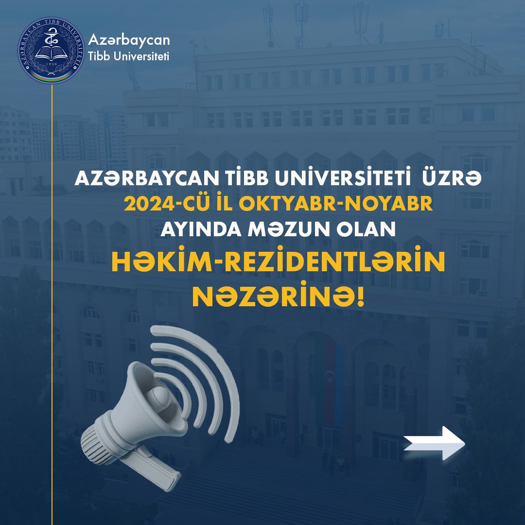 Azərbaycan Tibb Universiteti üzrə 2024-cü il oktyabr-noyabr ayında məzun olan həkim-rezidentlərin nəzərinə: