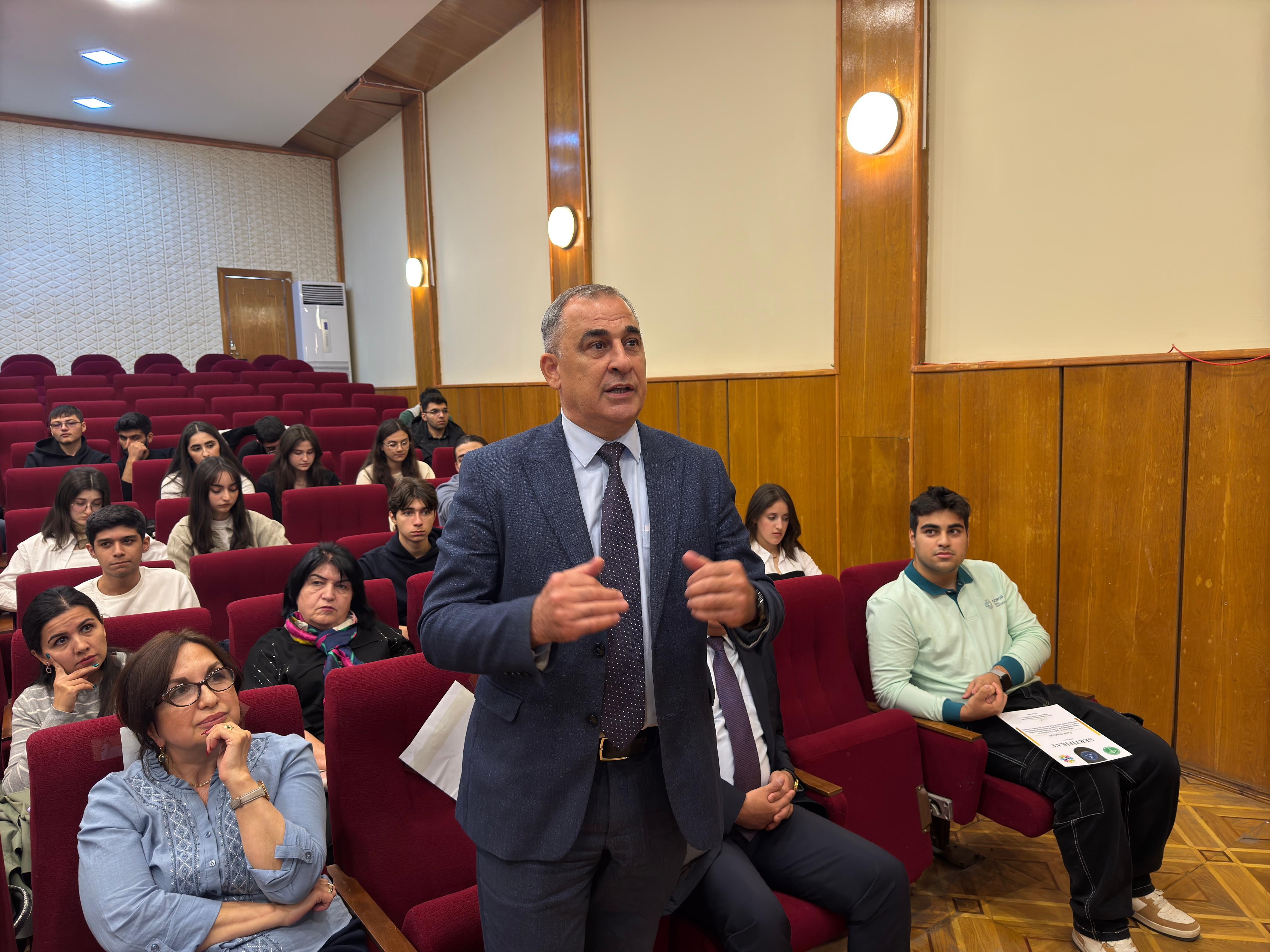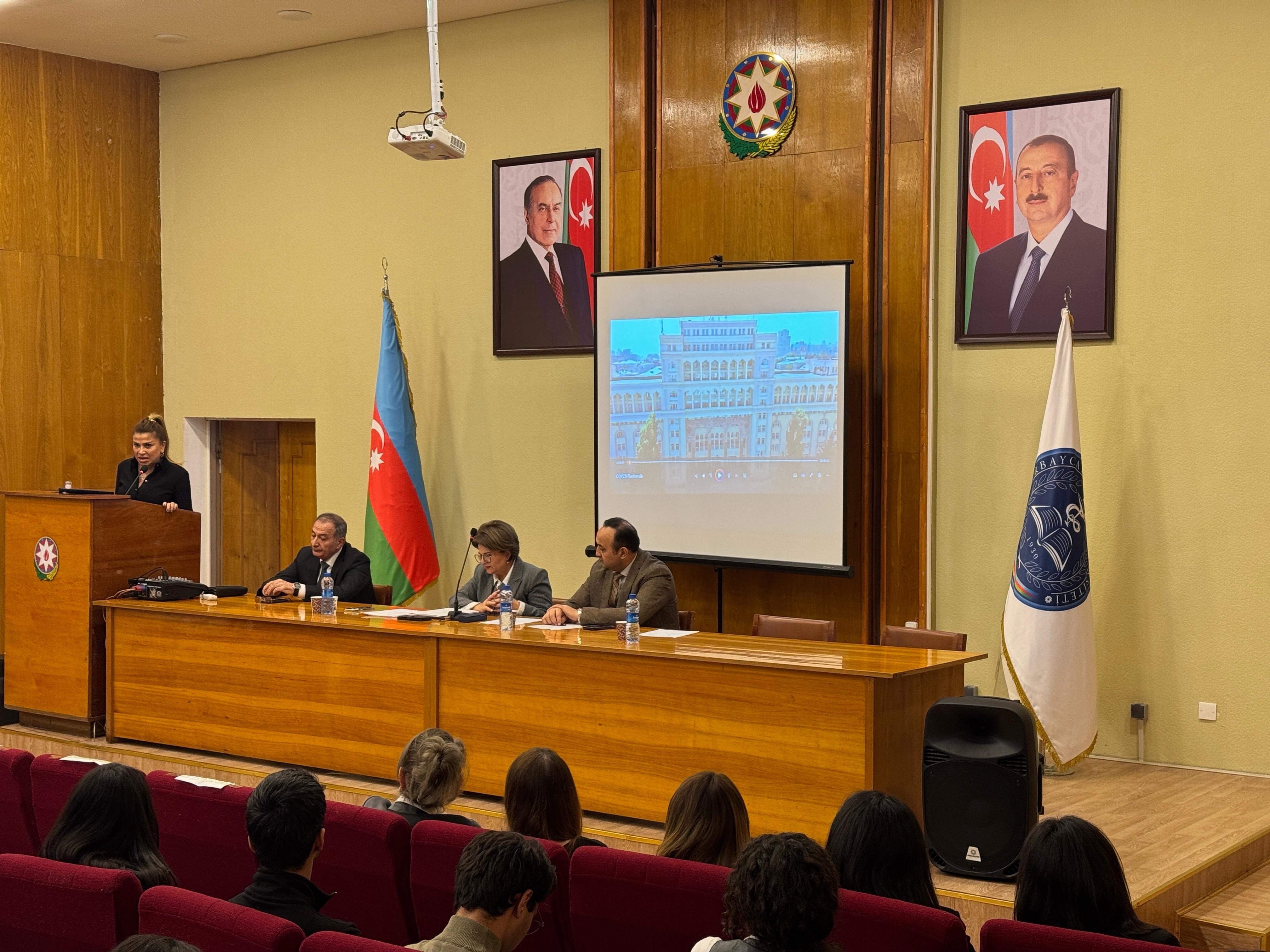 Elmi işlər üzrə prorektor, professor Məlahət Sultanova öz çıxışında iqlim dəyişikliklərinin bütün dünyada, o cümlədən də Azərbaycanda ətraf mühitə və insan orqanizminə göstərdiyi təsirlərə diqqət çəkib. Bu cür həyati əhəmiyyətli mövzuya həsr olunmuş dünyanın ən ali tədbirinin ölkəmizdə keçirilməsinin qürurverici olduğunu vurğulayıb. O, tələbələrin hazırladığı layihənin əhəmiyyətini qeyd edib.