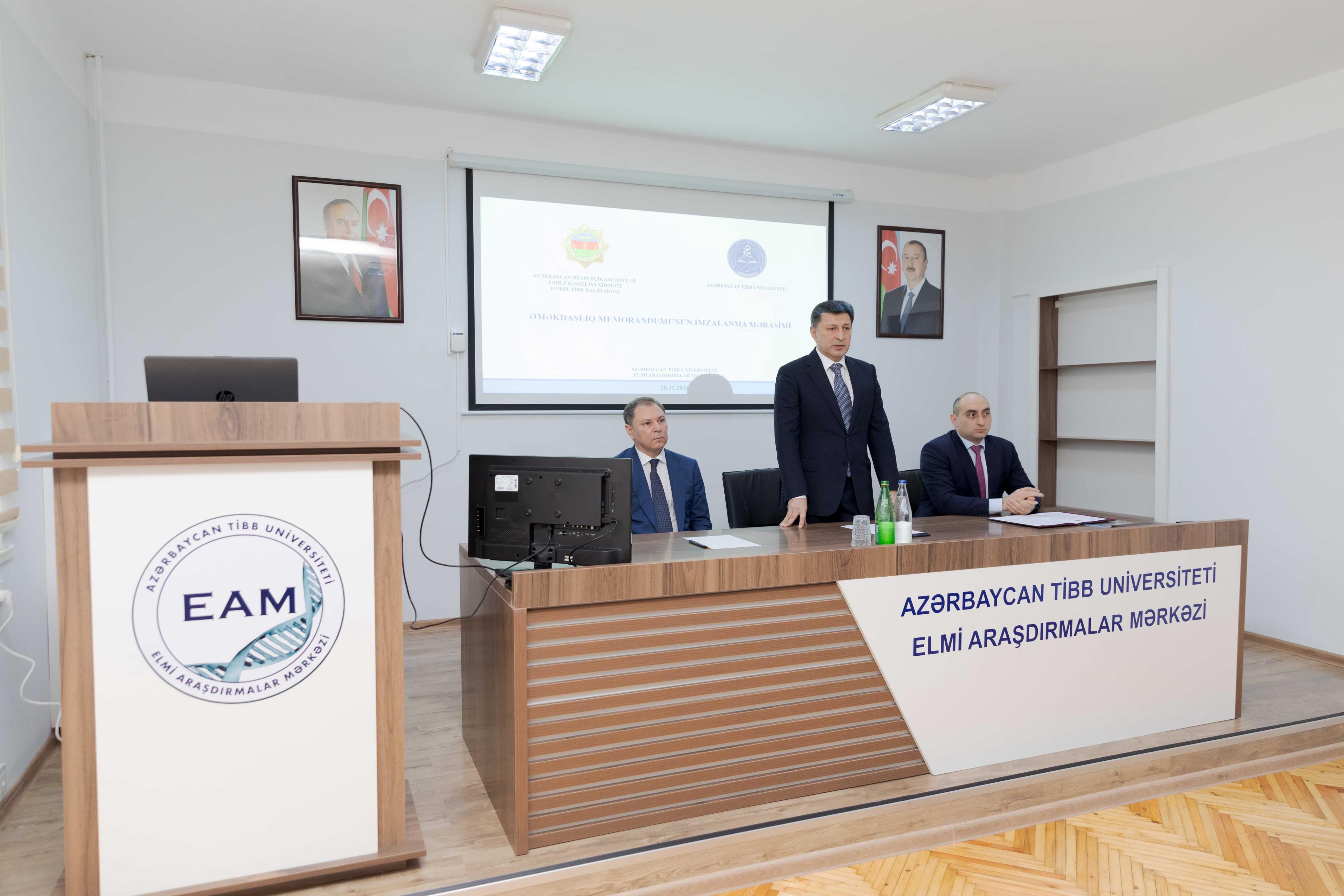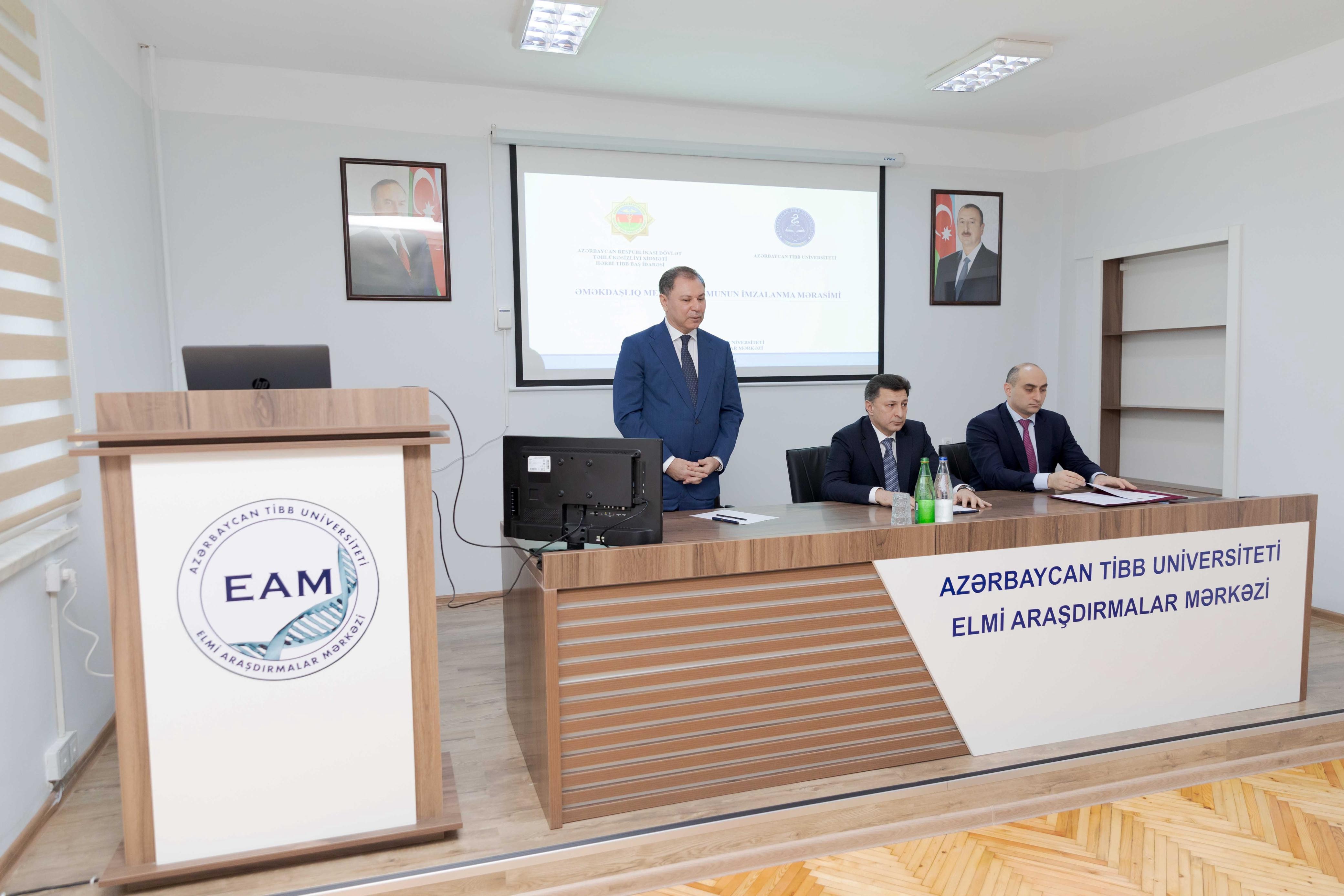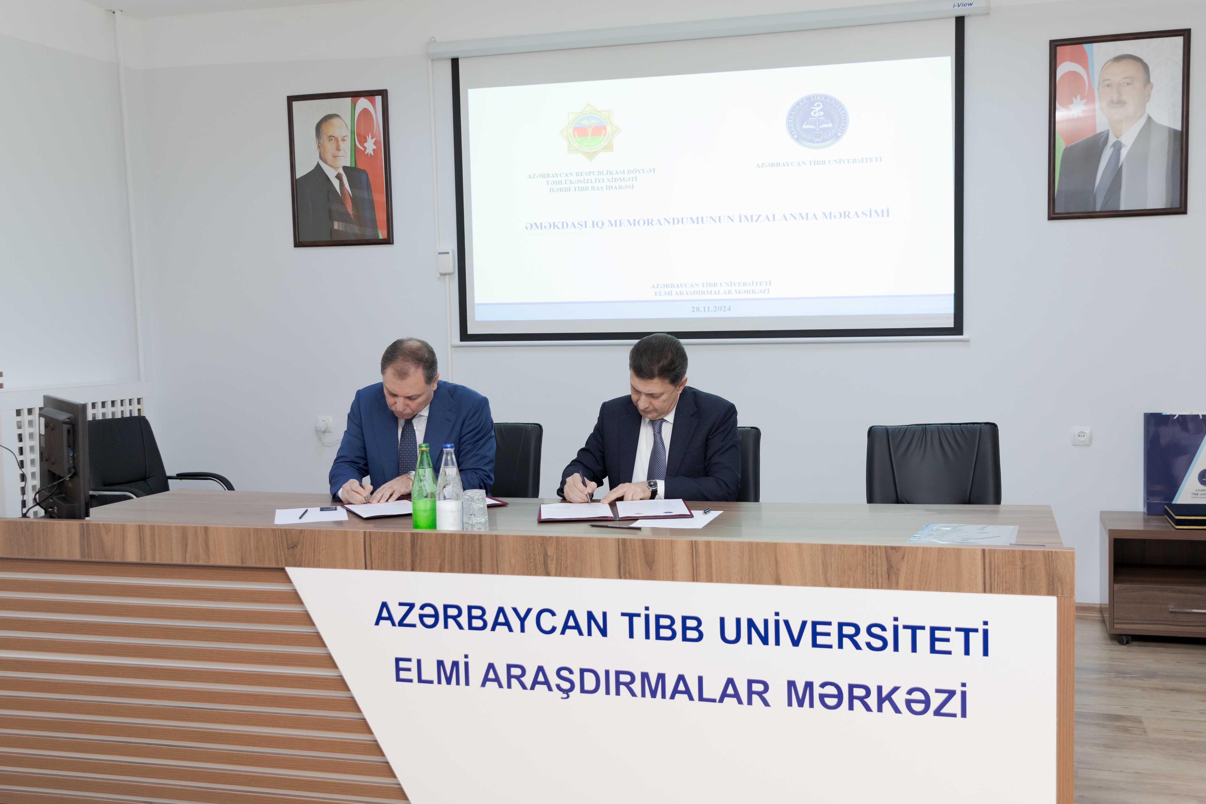 Noyabrın 28-də Azərbaycan Tibb Universiteti ilə Dövlət Təhlükəsizliyi Xidmətinin Hərbi Tibb Baş İdarəsi (HTBİ) arasında müştərək elmi tədqiqatların aparılması, təcrübə mübadiləsi və digər sahələrdə əməkdaşlıqla bağlı memorandum imzalanıb. İmzalanma mərasimində çıxış edənlər iki qurum arasında çoxtərəfli əməkdaşlığın əhəmiyyətini vurğulayıblar.