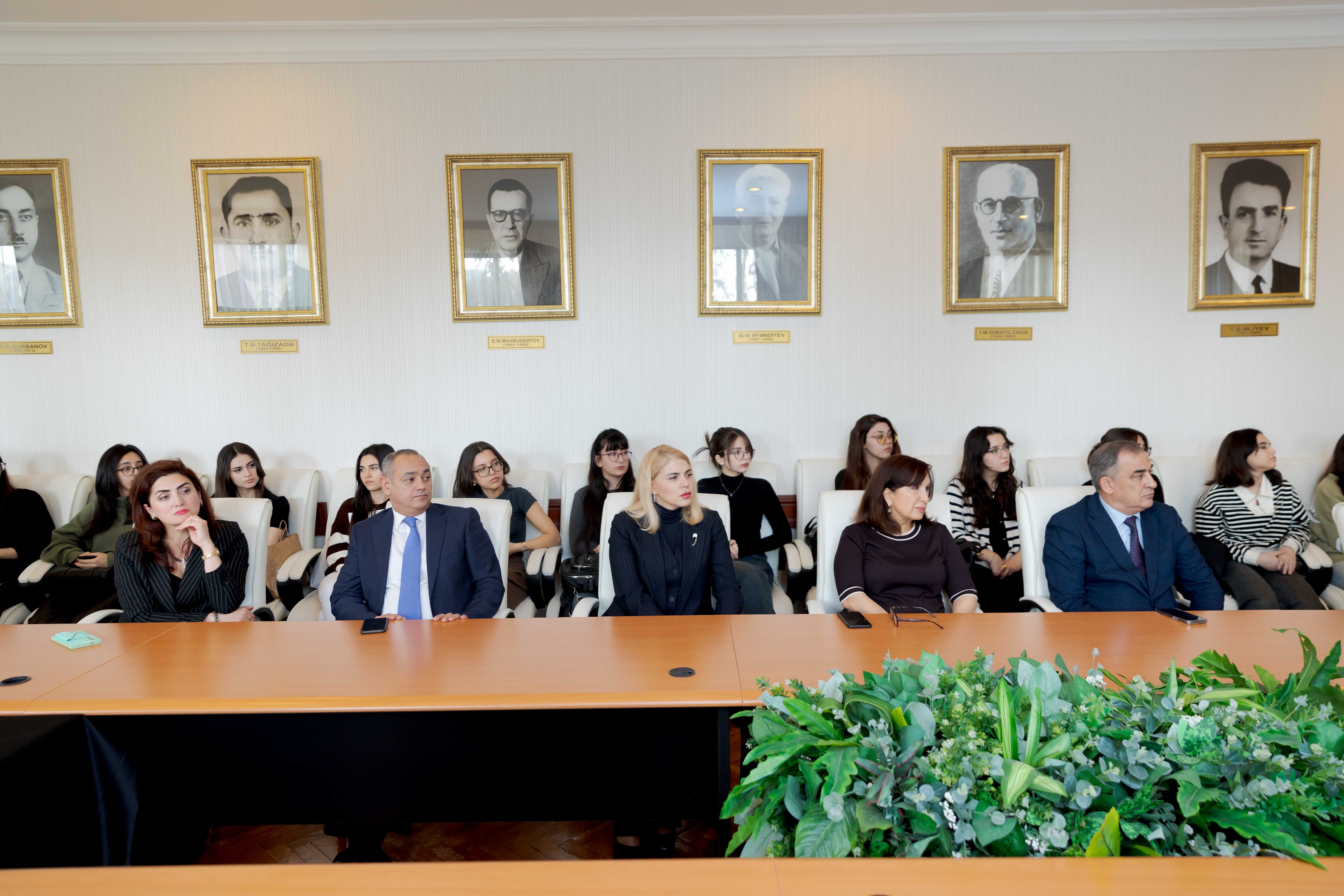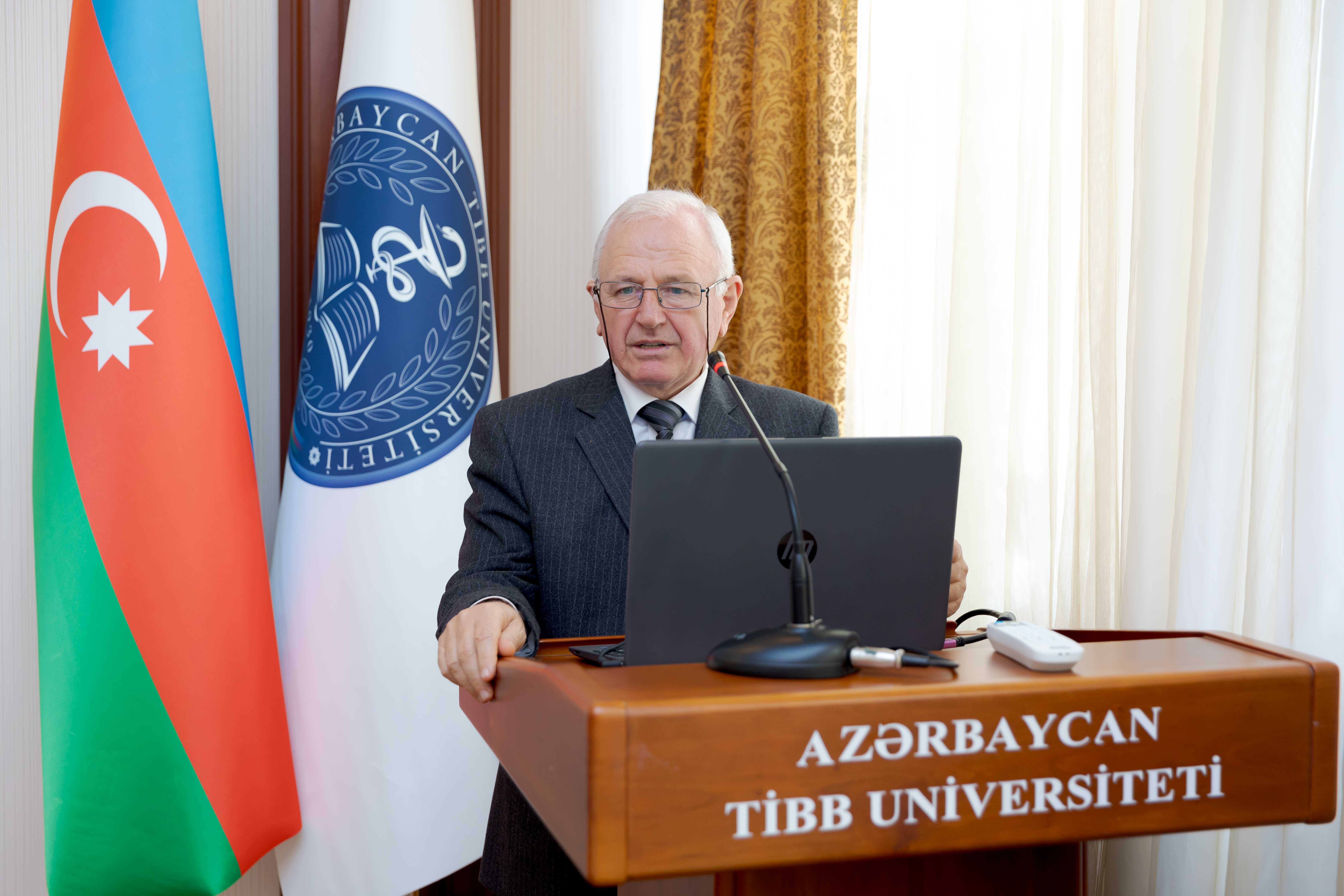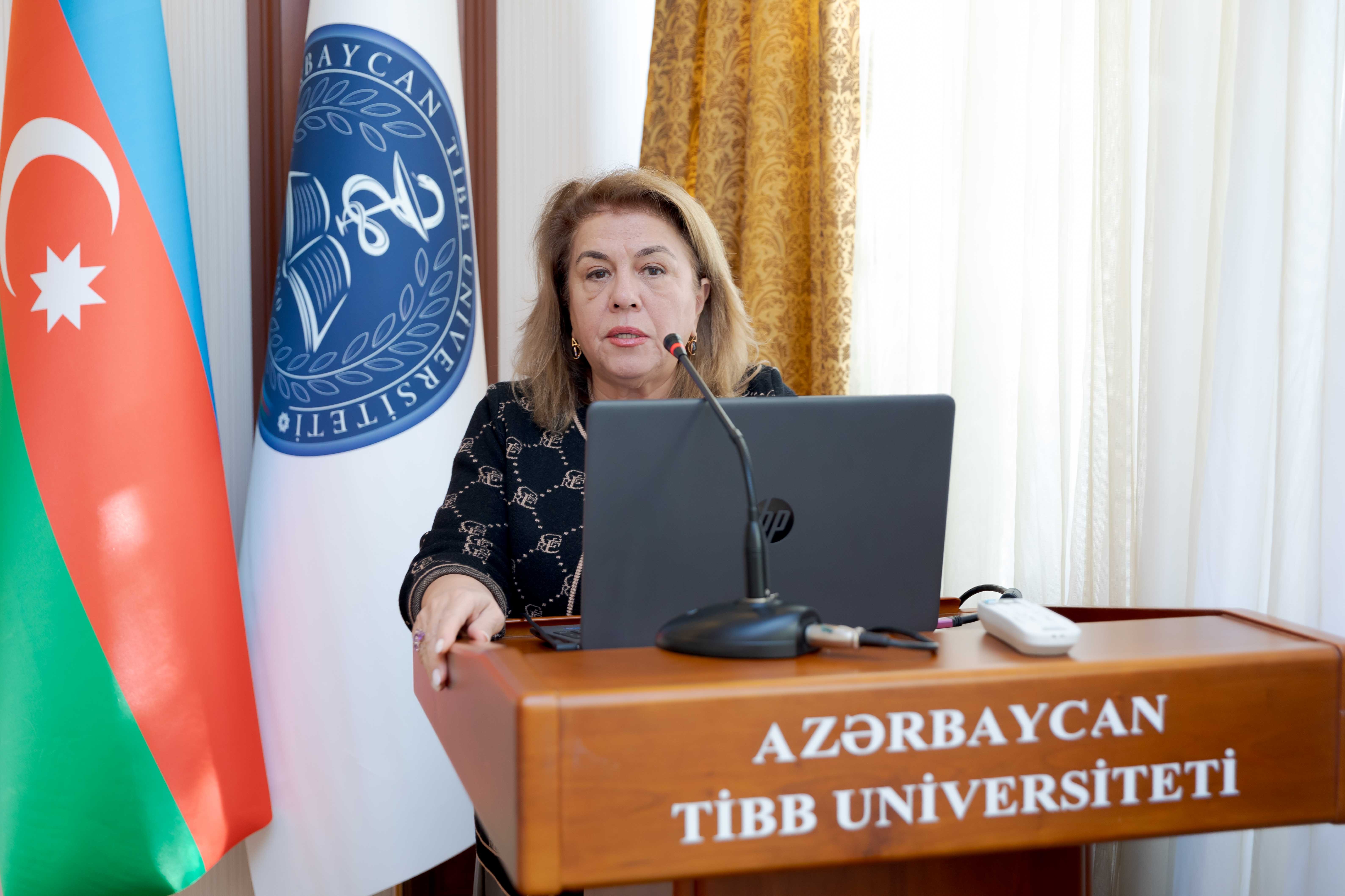 Mikrobiologiya və immunologiya kafedrasının müdiri, professor Həqiqət Qədirova qeyd edib ki, hələ sağlığında əfsanəyə çevrilən Heydər Əliyevin həyatı xalqına və Vətənənə misilsiz xidmət nümunəsidir. Müasir Azərbaycan tarixinin 30 ildən artıq bir dövrü Heydər Əliyevin şəxsiyyəti, fəaliyyəti ilə bağlıdır. Nadir tarixi hadisədir ki, Heydər Əliyev iki fərqli ictimai-siyasi qurululuşda Azərbaycana rəhbərlik edib və onu bütün dünyaya tanıdıb. Təhsilimizin və səhiyyəmizin inkişafında Heydər Əliyevin misilsiz xidmətlərindən də danışan natiq bu böyük tarixi şəxsiyyətin işıqlı xatirəsinin Azərbaycan xalqının yaddaşında əbədi yaşayacağını söyləyib.