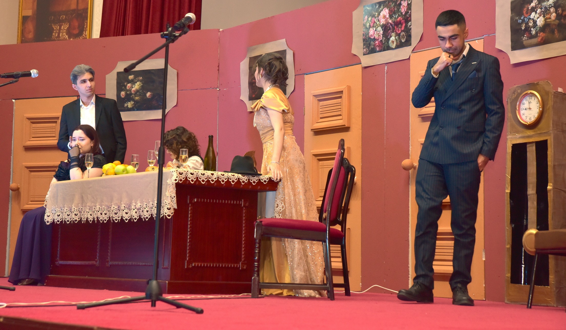 Əvvəllər olduğu kimi, XII teatr mövsümündə də öz rollarını məharətlə oynayan tələbə aktyorlar Dilbər Rahim Əliyeva (müfəttiş Grace), Hüseyn Qarayev (Arthur Birling), İlahə Əliyeva (Sible Birling), Fidan Rəhmanlı (Sheila Birling), Mirhəsən Cəfərov (Eric Birling), Günel Bəşirova (Edna) və Aydın Çələbi (Gerald Croft) tamaşaçılar tərəfindən alqışlarla qarşılanıb.