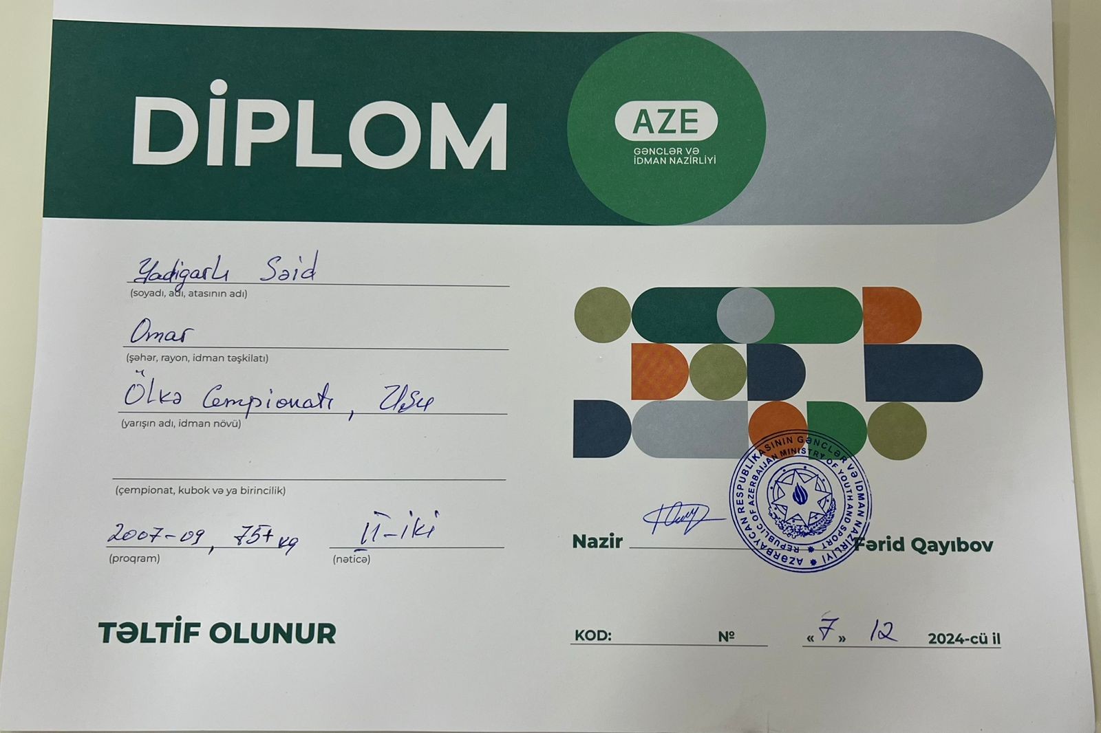 Sevindirici haldır ki, yarışa qatılan ATU-nun II Müalicə-profilaktika fakültəsinin ingilis dili bölməsinin I kurs tələbəsi Səid Yadigarlı 75+ çəki dərəcəsində respublika 2-cisi olub. Bu münasibətlə idmançı tələbəmizi təbrik edir, ona təhsilində və idman karyerasında uğurlar arzulayırıq.