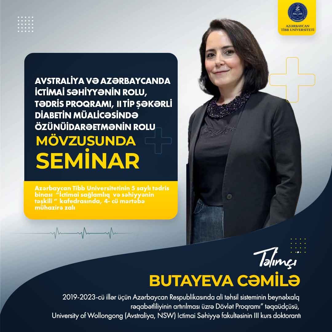 Seminar “2019-2023-cü illər üçün Azərbaycan Respublikasında ali təhsil sisteminin beynəlxalq rəqabətliliyinin artırılması üzrə Dövlət Proqramı” təqaüdçüsü, University of Wollongong (Avstraliya, NSW) İctimai Səhiyyə fakültəsinin III kurs doktorantı Cəmilə Butayeva tərəfindən aparılacaq.