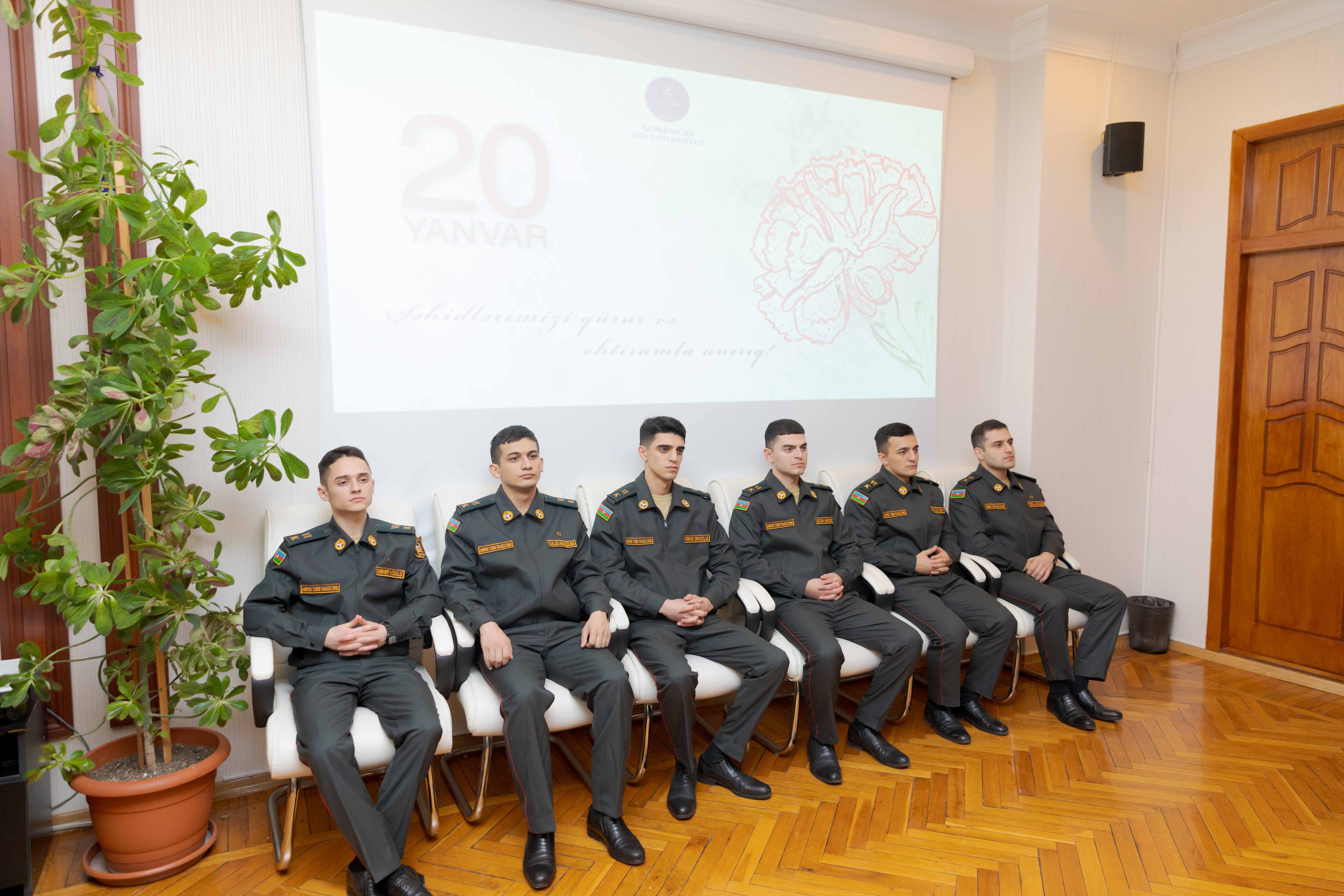 20 Yanvar hadisələrinin 35-ci ildönümü münasibətilə Azərbaycan Tibb Universitetində anım tədbiri keçirilib. Əvvəlcə 20 Yanvar şəhidlərinin və sonrakı illərdə torpaqlarımızın azadlığı və suverenliyimizin bərpası uğrunda öz həyatlarını qurban verən şəhidlərimizin ruhu bir dəqiqəlik sükutla yad edilib. Anım mərasimində çıxış edən ATU-nun Tədris işləri üzrə prorektoru, professor Nazim Pənahov 1990-cı ilin 20 Yanvar gününün Azərbaycanın müasir tarixinə ən faciəli və ən şərəfli səhifələrdən biri kimi daxil olduğunu vurğulayıb. Bildirib ki, 35 il əvvəl baş verən bu qanlı faciə bizləri dərindən sarsıtsa da, bir xalq olaraq sınmadıq,