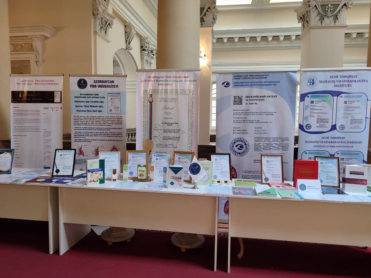 Eyni zamanda bu bölməyə daxil olan hər bir universitet və institutun 2024-cü ildə əldə etdiyi mühüm elmi nailiyyətləri əks etdirən sərgi təşkil olunmuşdu. Azərbaycan Tibb Universiteti sərgidə aşağıdakı elmi nailiyyətlərini nümayiş etdirib: 1.Avrasiya patenti № 046579 (İcraçılar: A.F.Hümmətov, D.B.Tağıyev, E.Z.Balayeva); 2. Avrasiya patenti № 048306 (İcraçılar: A. Hummətov, E.Qasımov, N.Bayramov); 3. Avrasiya patenti № 046345 (İcraçılar: Y.İ.Bayramov); 4. Avrasiya patenti № 047471 (İcraçılar: C.Hüseynova, M.Vəliyeva, S.Əlizadə, S.Hüseynova); 5. Avrasiya patenti № 047525 (İcraçılar: C.Hüseynova, M.Vəliyeva, S.Əlizadə, S.Hüseynova); 6. Avrasiya patenti № 047018 (İcraçılar: S. Mehralıyeva, B.Məmmədov); 7. Avrasiya patenti № 048190 (İcraçılar: E.Ağayev, Z.İsmayılova); 8. Şəhadətnamə: Qeydiyyat nömrəsi. 04/C-13118-23 və 04/C-13119-23 (İcraçı: C.Ə.Nəsirli).