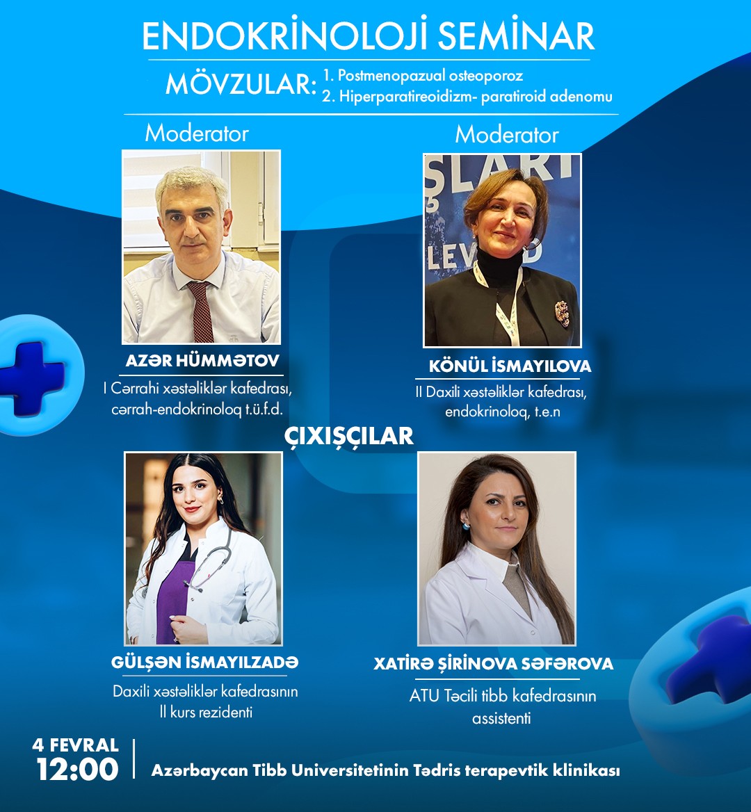 4 fevral saat 12:00-da Azərbaycan Tibb Universitetinin Tədris Terapevtik Klinikasında Endokrinologiya seminarı keçiriləcək.