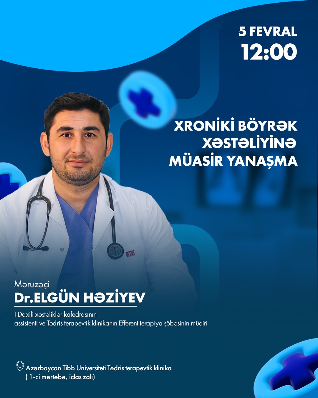 5 fevral 12:00-da ATU-nun Tədris Terapevtik Klinikasında “Xroniki böyrək xəstəliyinə müasir yanaşma” mövzusunda seminar keçiriləcək
