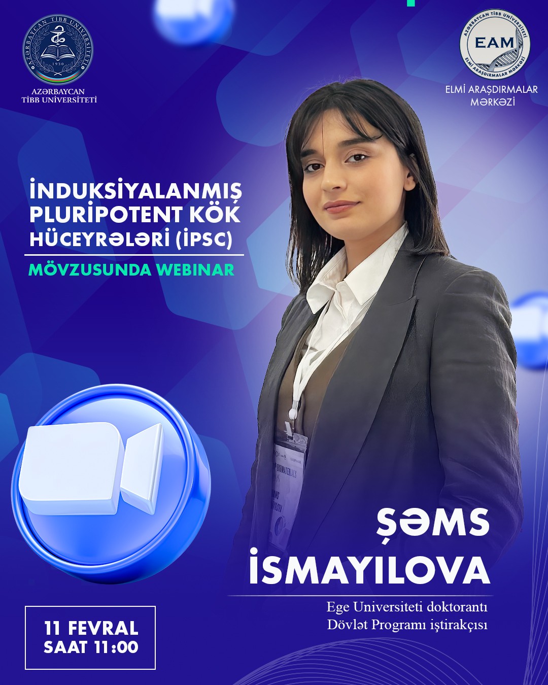 Ege Universiteti doktorantı Dövlət Programı iştirakçısı Şəms İsmayılova tərəfindən “İnduksiyalanmış Pluripotent Kök Hüceyrələri (İPSC)”na həsr olunmuş vebinar keçiriləcək.