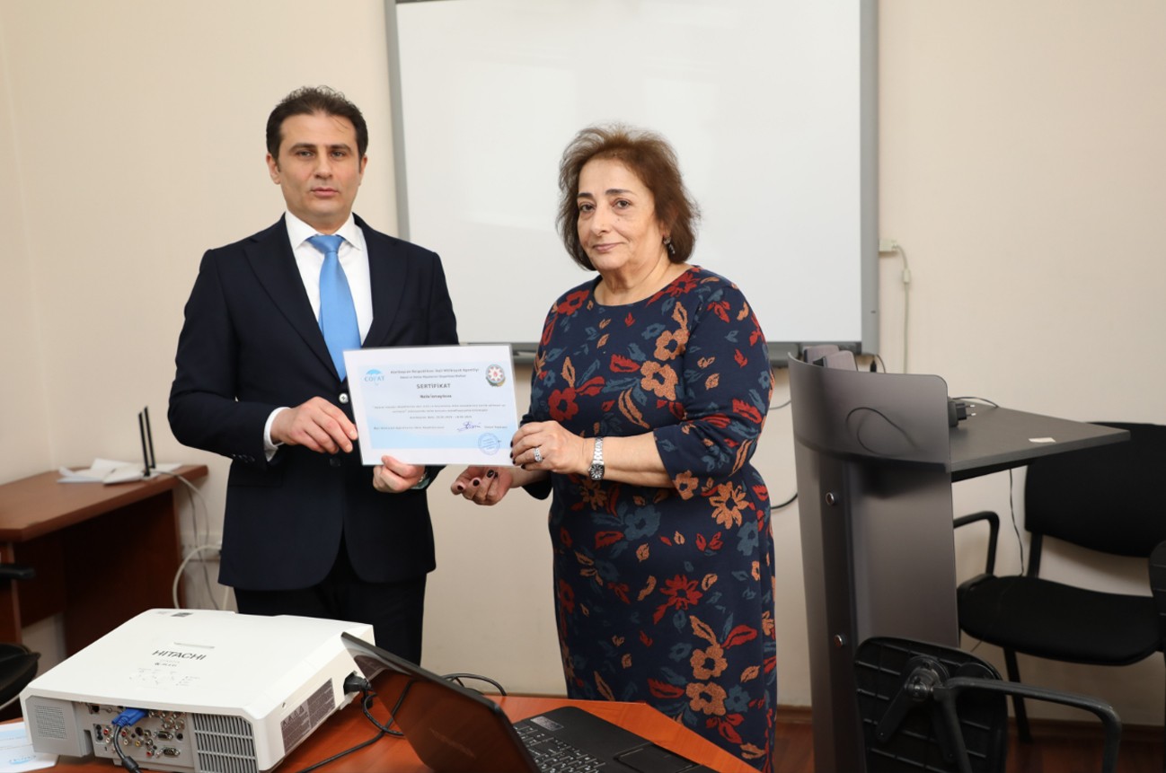 Sonda S.Tapdıqov tərəfindən təlimi müvəffəqiyyətlə bitirənlərə sertifikatlar təqdim olunub.