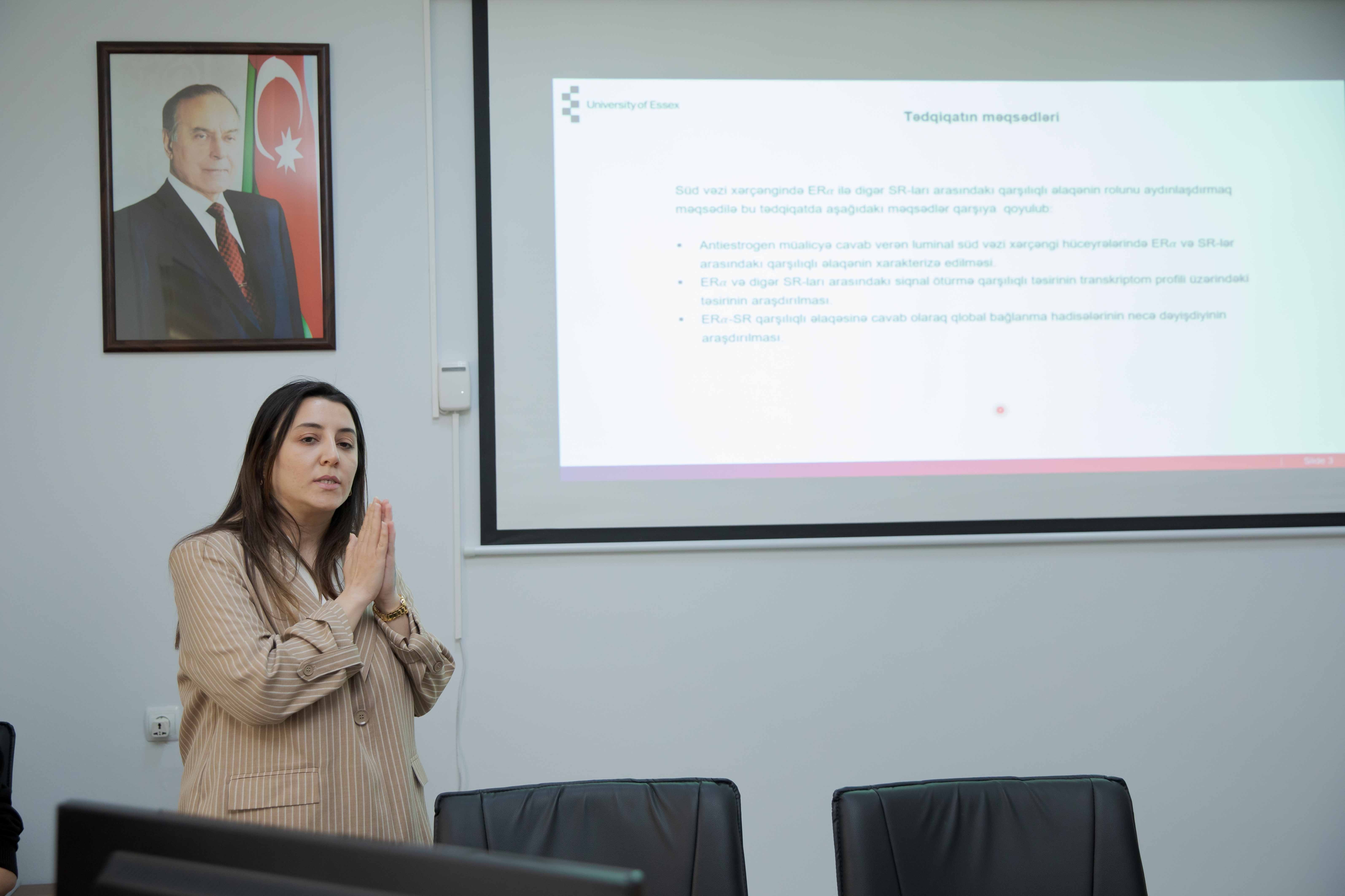 Aprelin 4-də ATU-nun Elmi Araşdırmalar Mərkəzində “Süd vəzi xərçəngində Estrogen Reseptor-𝛼 (ER𝛼) ilə digər steroid reseptorları arasındakı qarşılıqlı əlaqənin rolu” mövzusunda seminar keçirilib