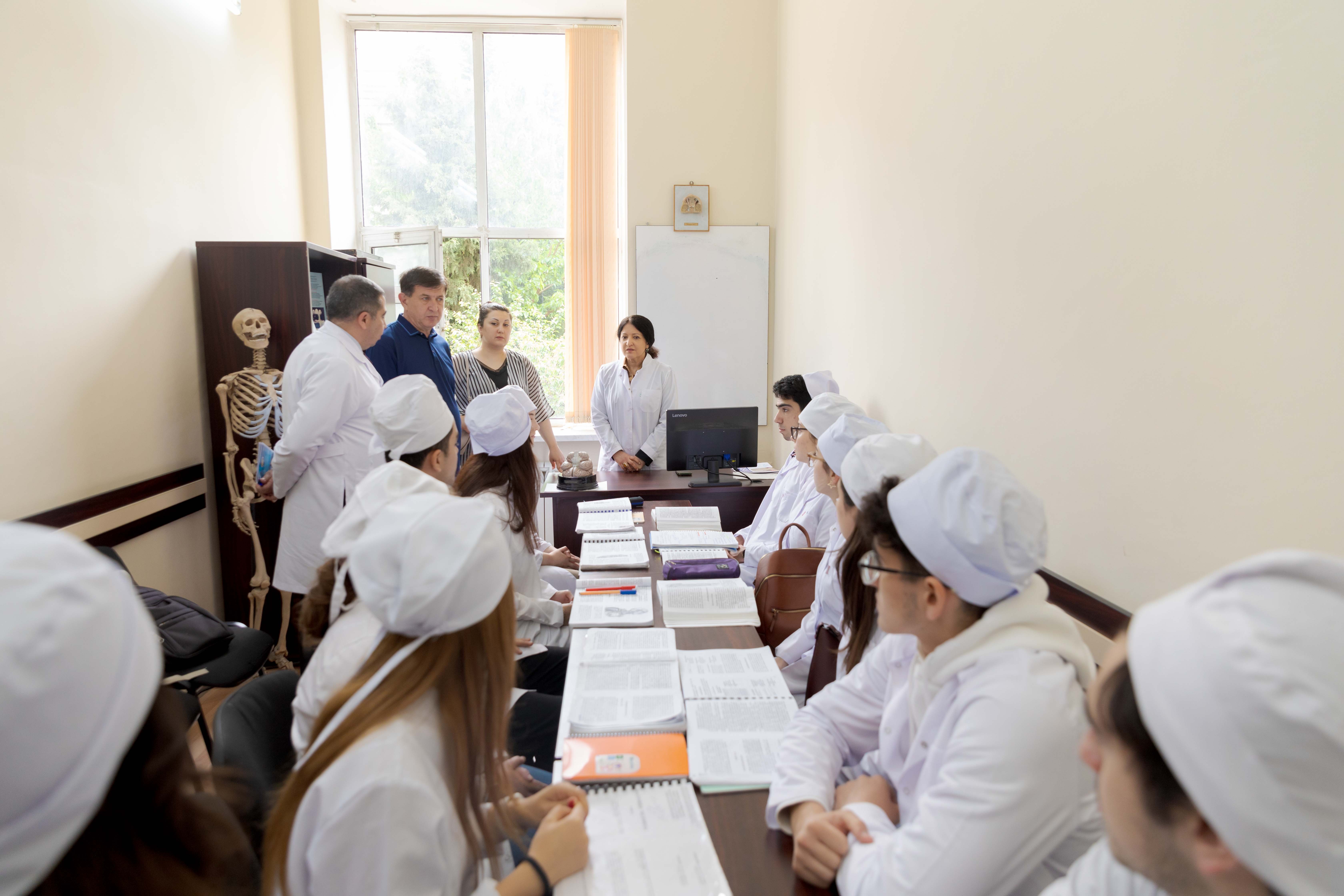 Muzeylə tanışlıqdan məmnun olduğunu bildirən professor Şuxrat Teşayev həmçinin İnsan anatomiyası və tibbi terminologiya kafedrasında keçirilən dərs prosesində iştirak edib, tələbələrin bilik səviyyəsini yüksək qiymətləndirib.