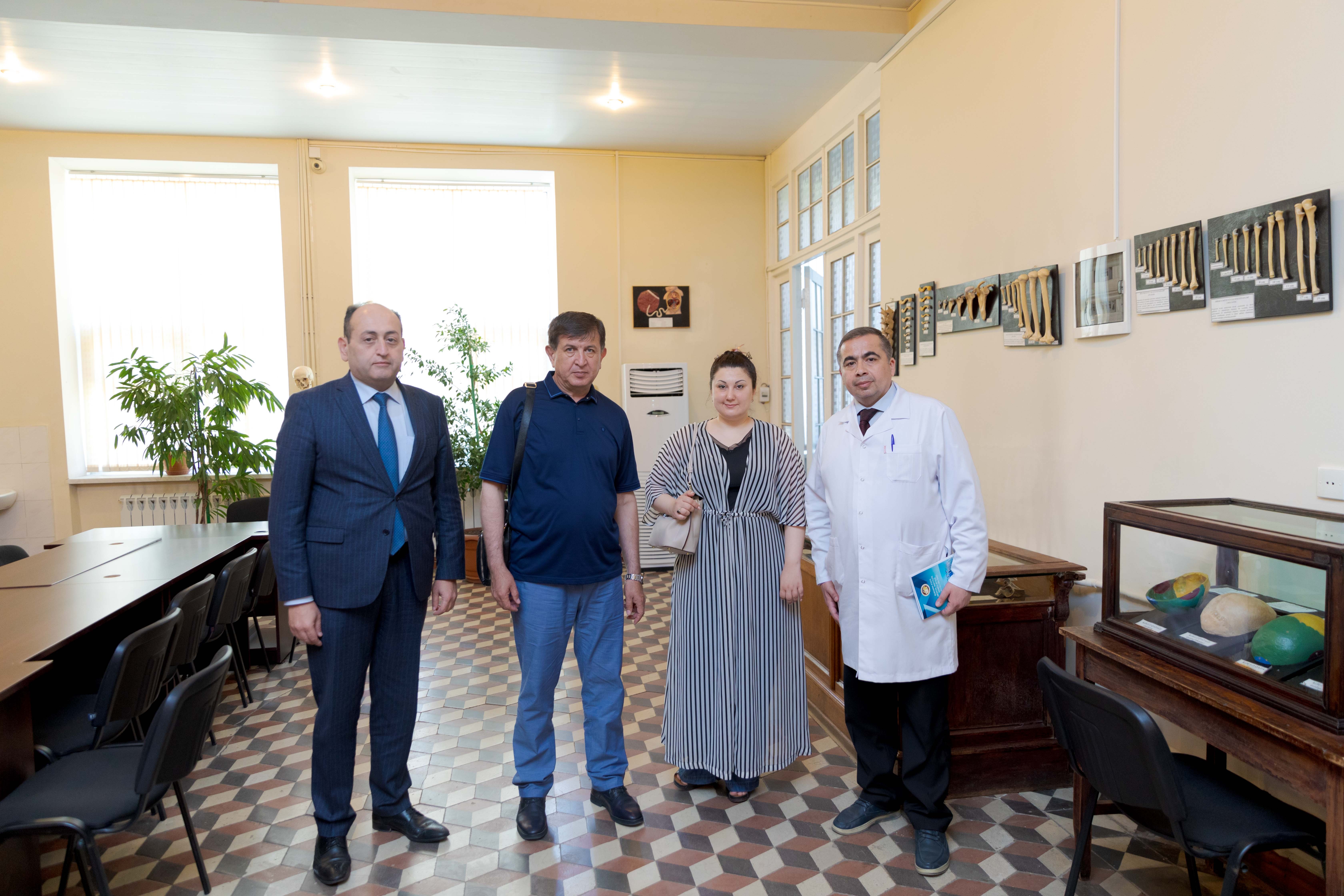 Səfər çərçivəsində Buxara Dövlət Tibb İnstitutunun rektoru, anatomiya kafedrasının professoru Şuxrat Teşayev Azərbaycan Tibb Universitetinin Anatomiya muzeyi ilə tanış olub. ATU-nun İnsan anatomiyası və tibbi terminologiya kafedrasının müdiri, t.ü.d.f., dosent Anar Abdullayev qonağa 1919-cu ildə prof. V.İ.Razumovski tərəfindən əsası qoyulan Muzeyin inkişaf tarixindən və zəngin kolleksiyası haqqında ətraflı məlumat verib.