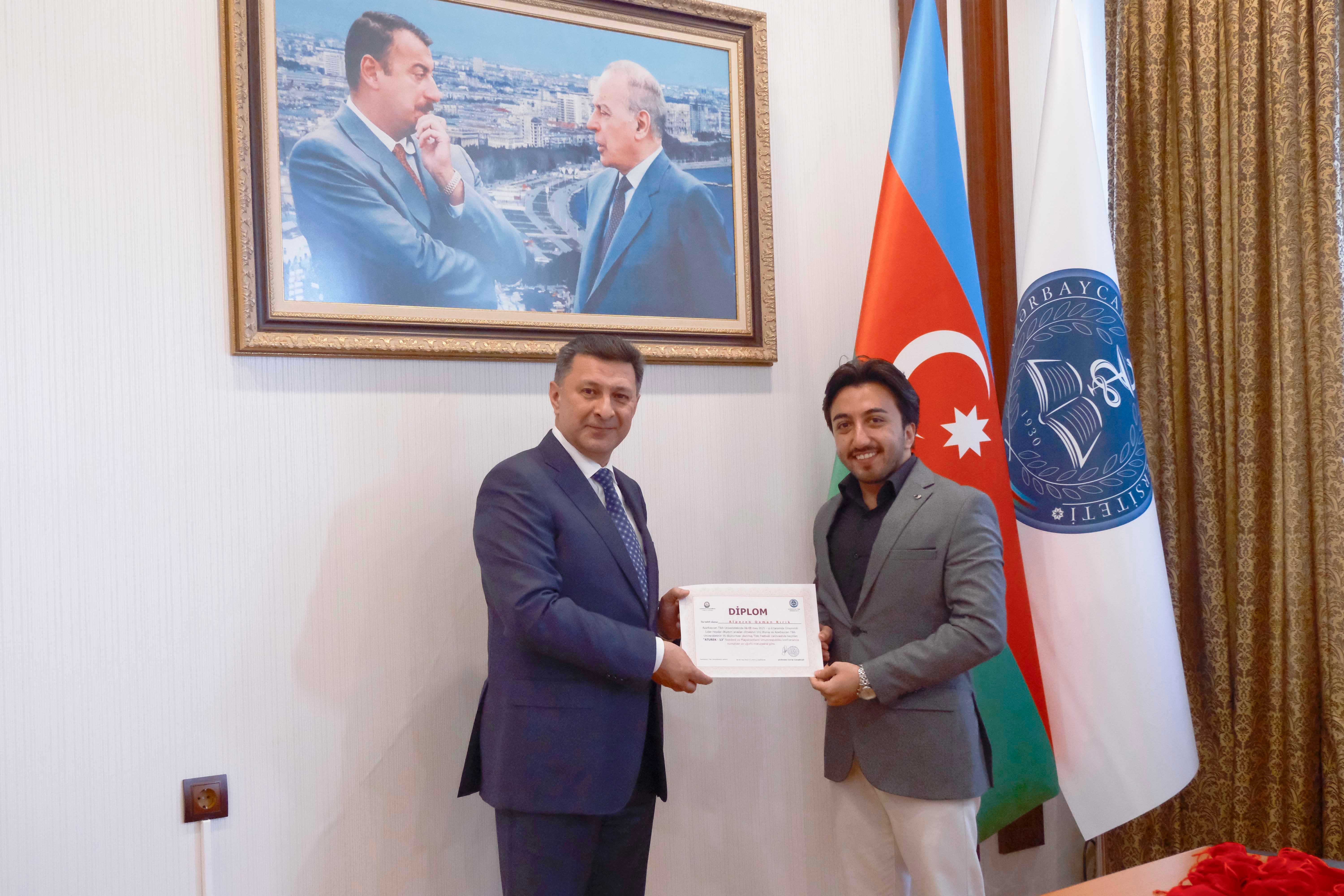 Xəbər verdiyimiz kimi, Azərbaycan Tibb Universitetinin 95 illik yubileyi və Ümummilli Lider Heydər Əliyevin anadan olmasının 102-ci ildönümünə həsr olunmuş Tibb Festivalı çərçivəsində “ATUREK 13” elmi-təcrübi konfransı keçirilib. İyunun 17-də isə universitetin rektoru, professor Gəray Gəraybəyli konfransda uğurlu çıxışları ilə fərqlənən rezident və magistrlərlə görüşüb.