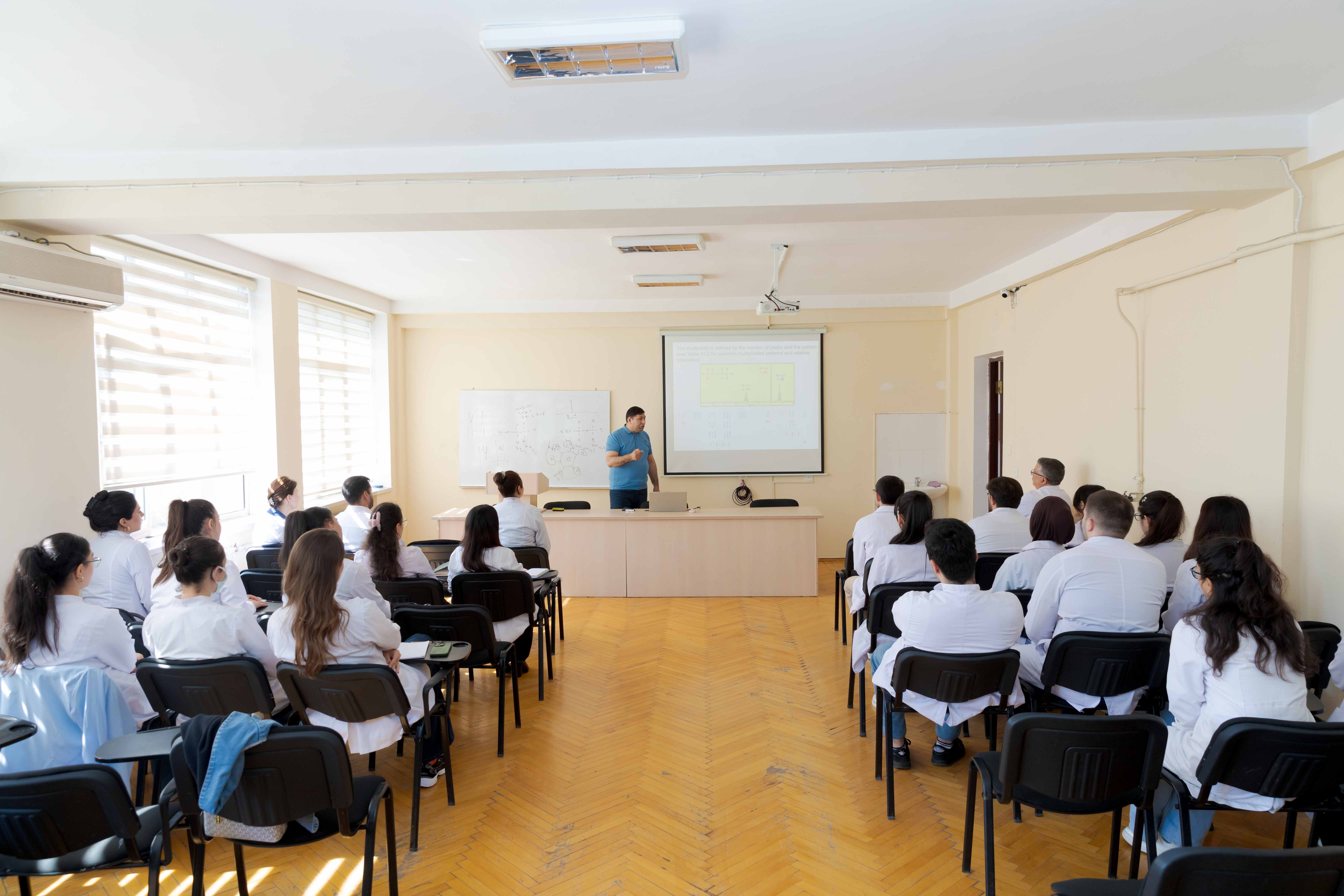 Bundan başqa, professor Abdur Rauf Əczaçılıq fakültəsinin tələbə və magistrantları üçün “Bioloji fəal maddələrin identifikasiyasında infraqırmızı və nüvə-maqnit rezonans spektroskopiyasının tətbiqi” mövzusunda mühazirə oxuyub. Təqdimatdan sonra o, tələbələrin suallarını cavablandıraraq mövzu ilə bağlı geniş izahlar verib.