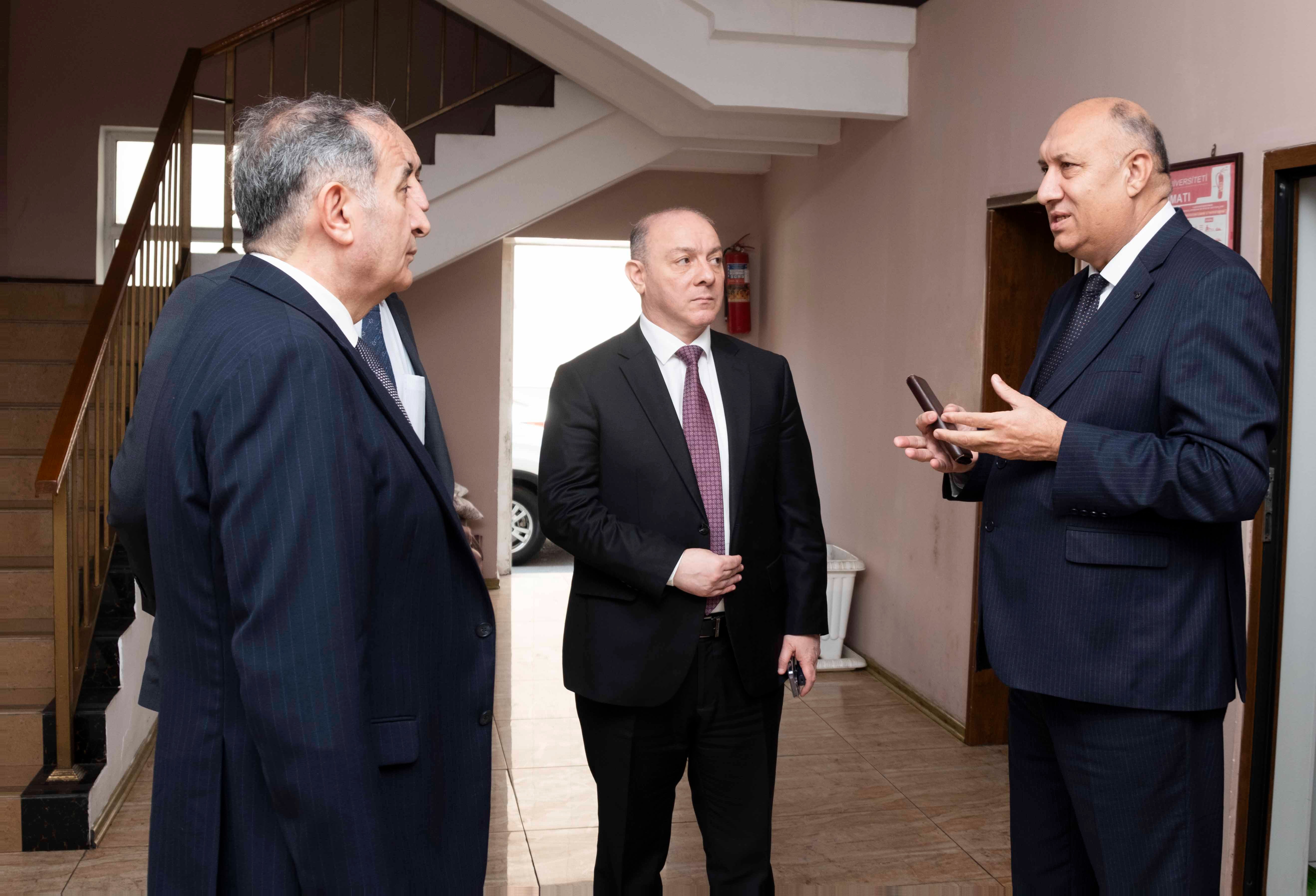 Yoxlamada universitetinTədris işləri üzrə prorektoru, professor Anar Ağayev, Həmkarlar İttifaqı Komitəsinin sədri dosent Cahangir Qasımov, Tərbiyə işləri üzrə prorektor, dosent Mahir Səfərov, Təsərrüfat işləri üzrə prorektor İlqar Mehrabov və təsərrüfat şöbəsinin nümayəndələri və digər aidiyyəti şəxslər iştirak ediblər.