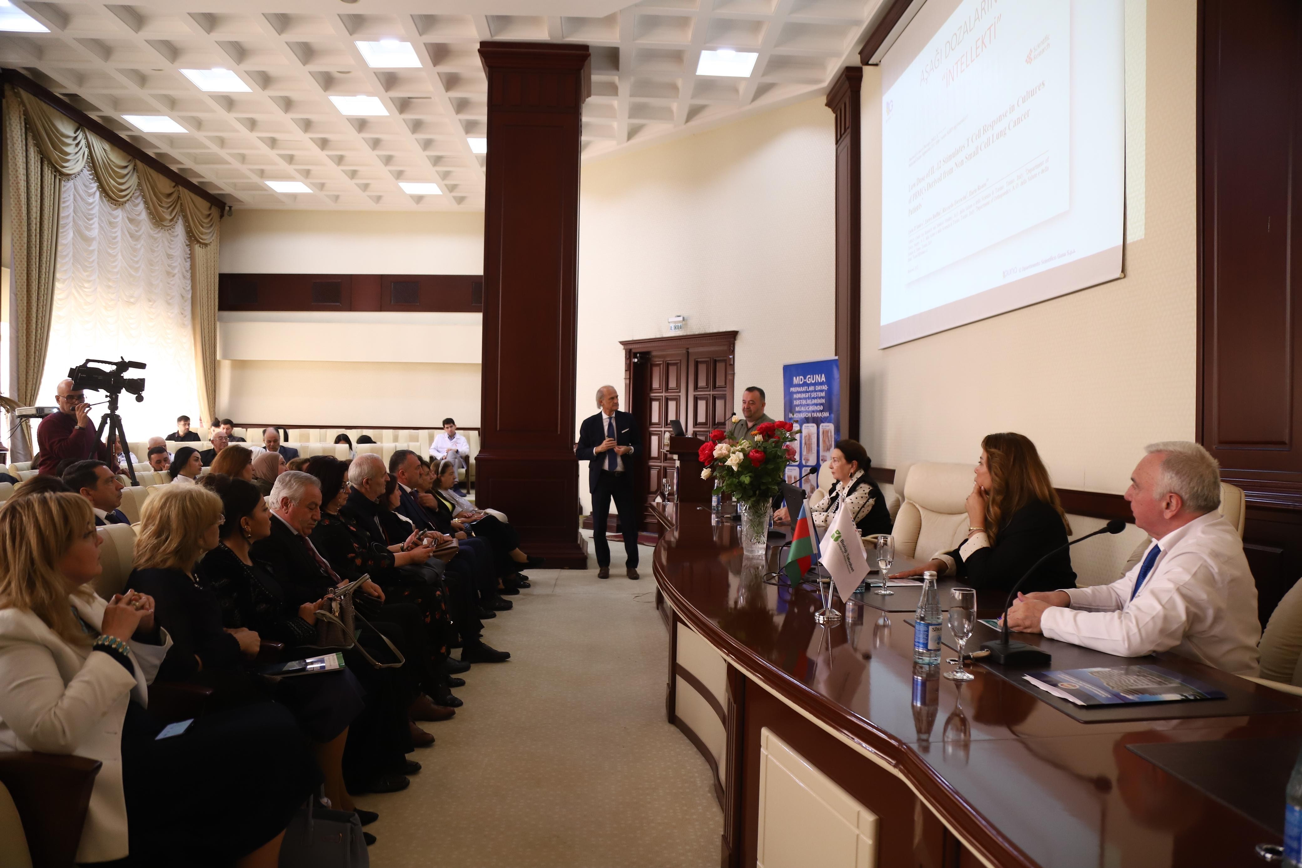 Azərbaycan Tibb Universitetinin Əczaçılıq fakültəsinin, "Bioloji təbabət" klinikasının və Əczaçılıq texnologiyası və idarəçiliyi kafedrasının təşkilatçılığı ilə baş tutan seminarlarda İtaliyanın tanınmış GUNA Pharmaceuticals şirkətinin Elmi Şöbəsinin direktoru, professor Alessandro Perra (Milan, İtaliya) iştirak edib.