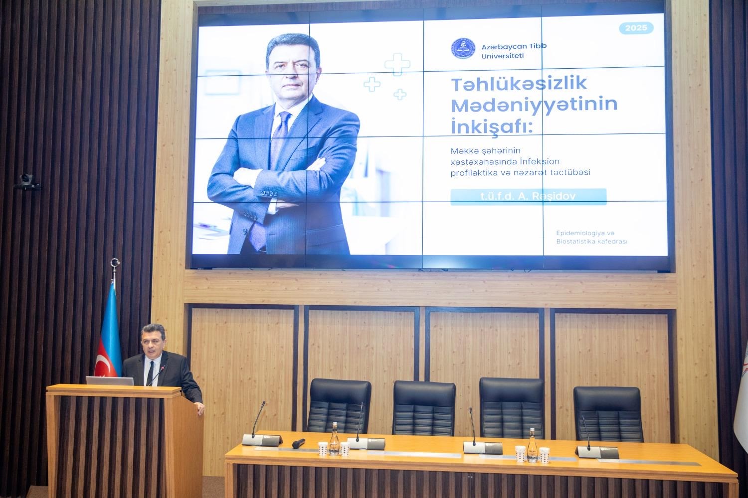 Məruzəçilər arasında çıxış edən t.ü.f.d. Azər Rəşidov “Təhlükəsizlik mədəniyyətinin inkişafı: Mükəmməl infeksion profilaktika və infeksiyalara nəzarət” mövzusunda təqdimatla çıxış edib. O, beynəlxalq İPN təcrübəsindən danışaraq, İPN xidmətinin təşkili, təlimlərin keçirilməsi, alovlanmaların idarə olunması, çoxdərmanlara rezistent mikroorqanizmlərlə mübarizə üsulları, rəqəmsal texnologiyaların tətbiqi və komanda işinin əhəmiyyətini vurğulayıb.