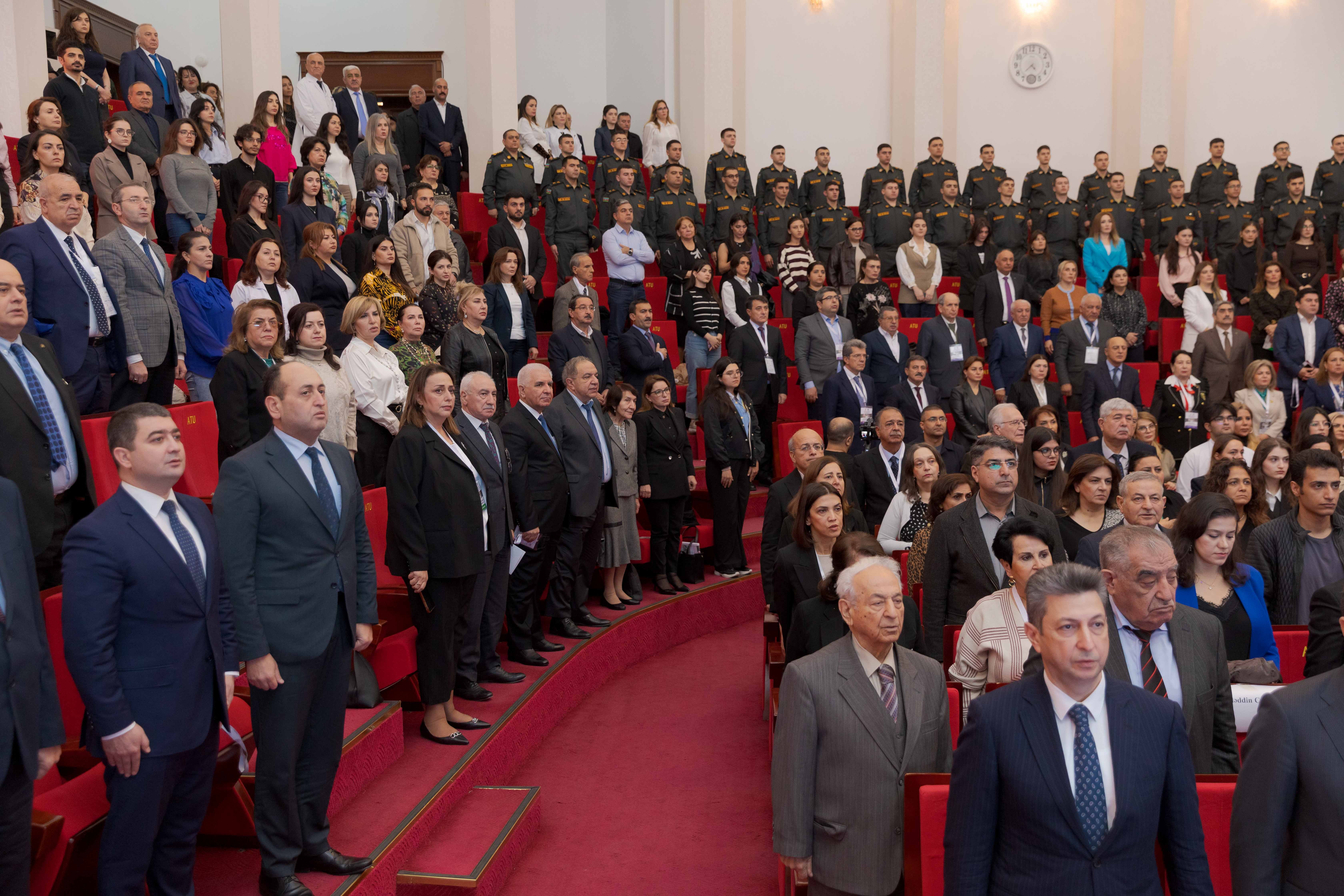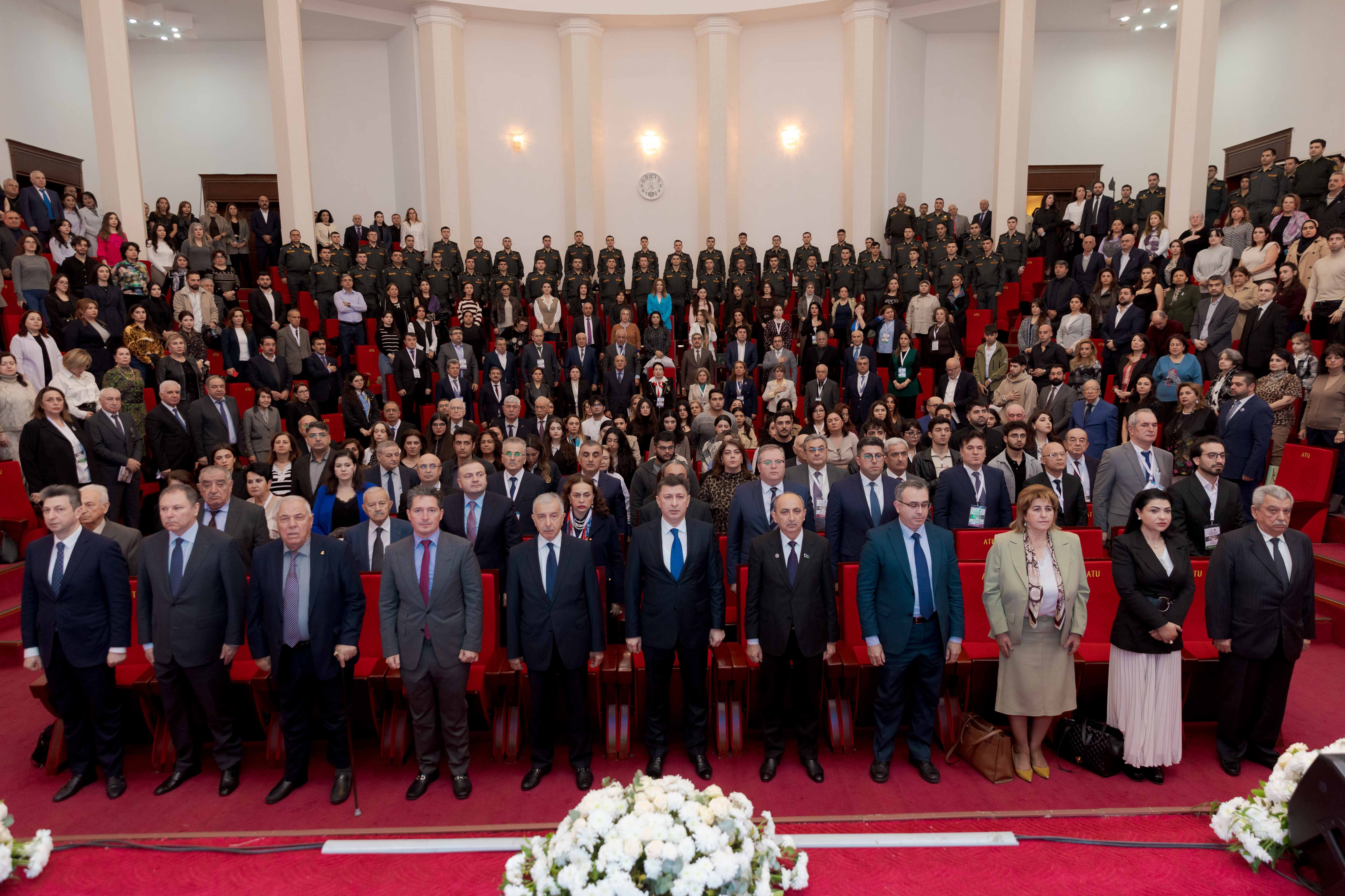 Konfransın açılış mərasimi Azərbaycan Respublikasının Dövlət Himninin səsləndirilməsi və Vətən uğrunda şəhid olmuş qəhrəmanların xatirəsinin anılması ilə başlayıb.