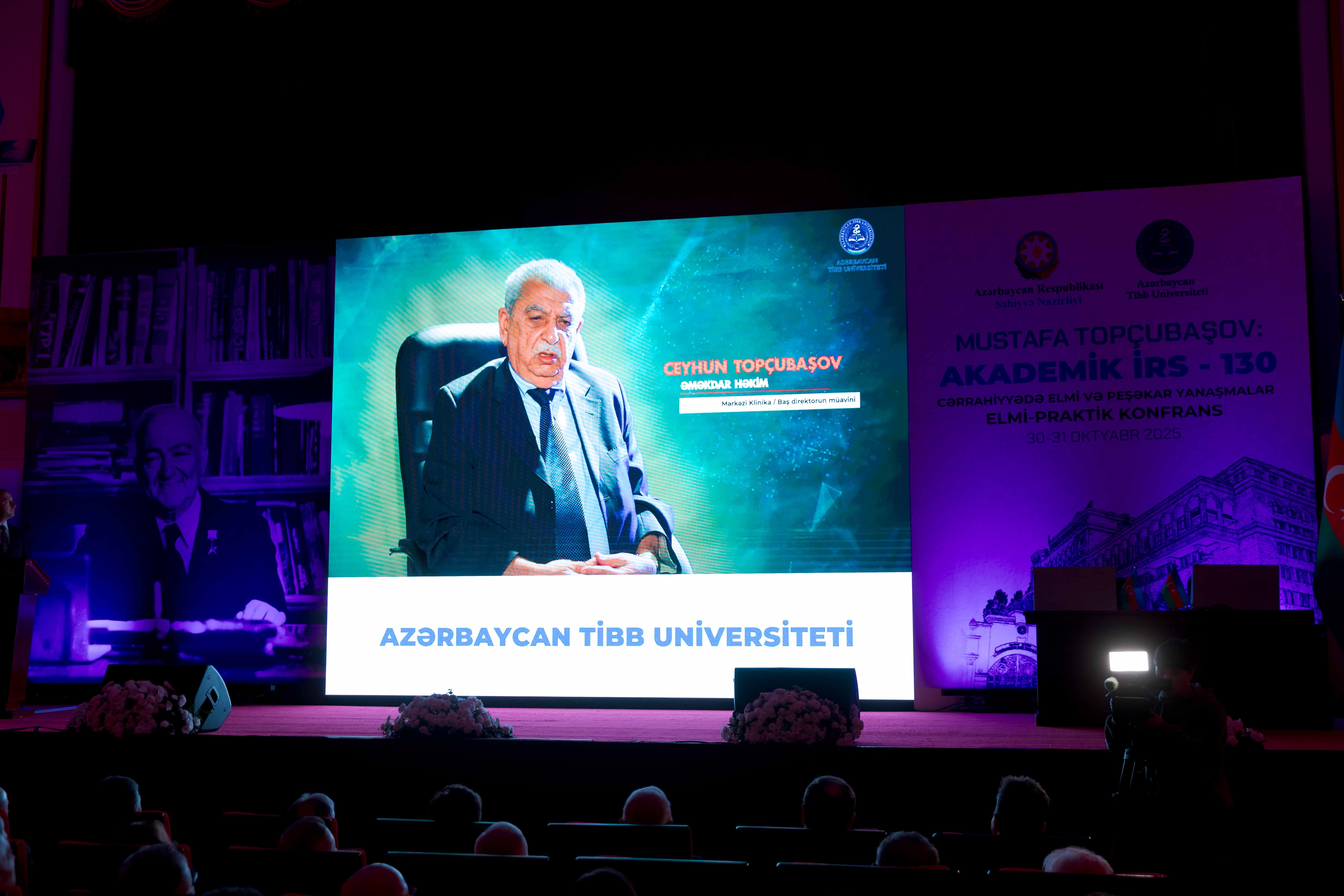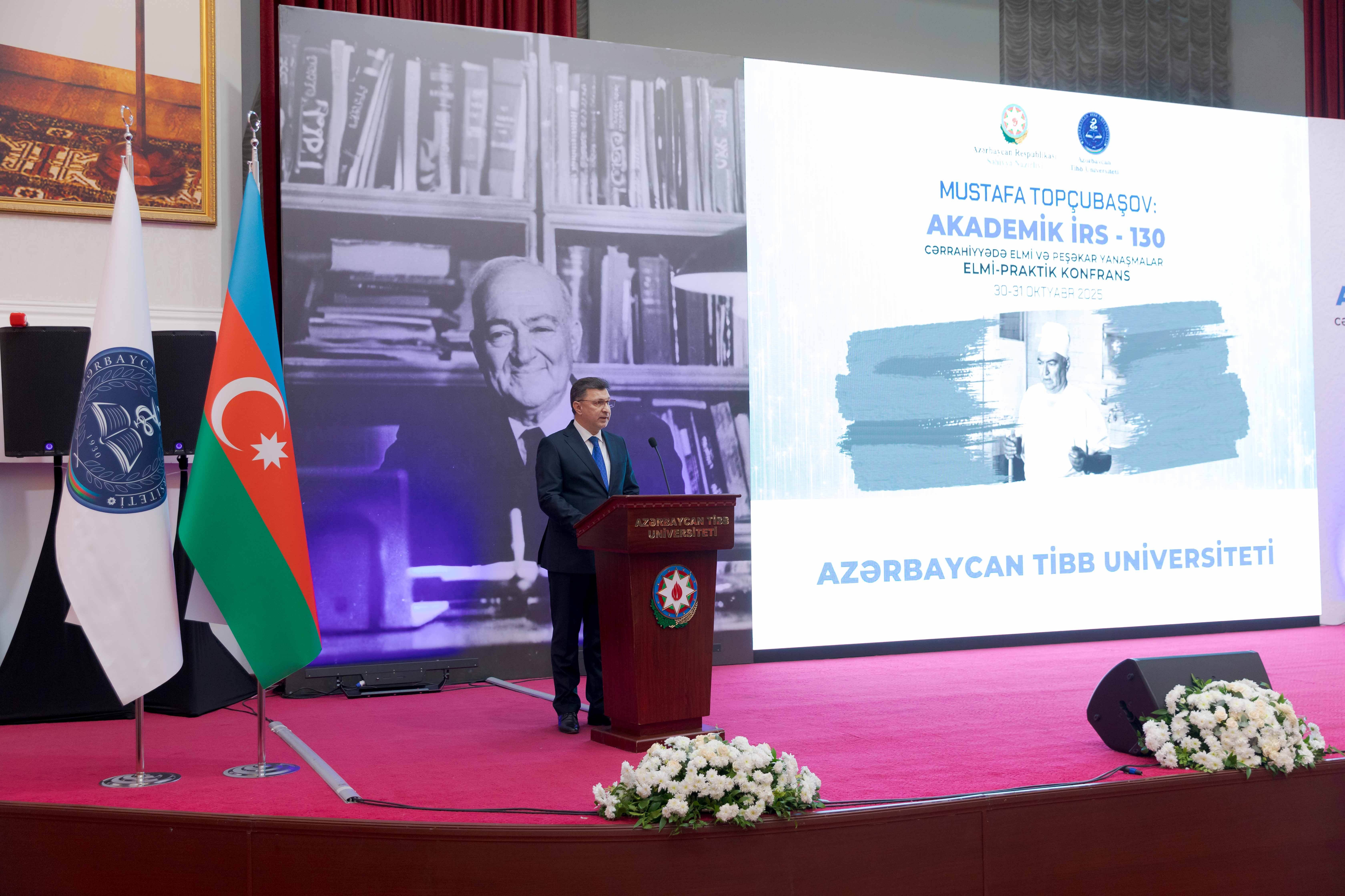 Azərbaycan Tibb Universitetinin rektoru, professor Gəray Gəraybəyli konfrans iştirakçılarını salamlayaraq qeyd edib ki, bu tədbir yalnız böyük alimin xatirəsinə ehtiram deyil, həm də Azərbaycan tibb elminin və təhsilinin inkişafına sadiqliyin təntənəsidir: “Azərbaycan Respublikasının Prezidenti cənab İlham Əliyevin Mustafa Topçubaşovun yubileyinin qeyd edilməsi ilə bağlı imzaladığı sərəncam bu tədbirə xüsusi simvolik məna qazandırır. Bu sərəncam bir tərəfdən ölkəmizdə elmə və alimə verilən qiymətin, digər tərəfdən isə milli yaddaşın, elmi irsin qorunmasına göstərilən dövlət qayğısının bariz nümunəsidir”.