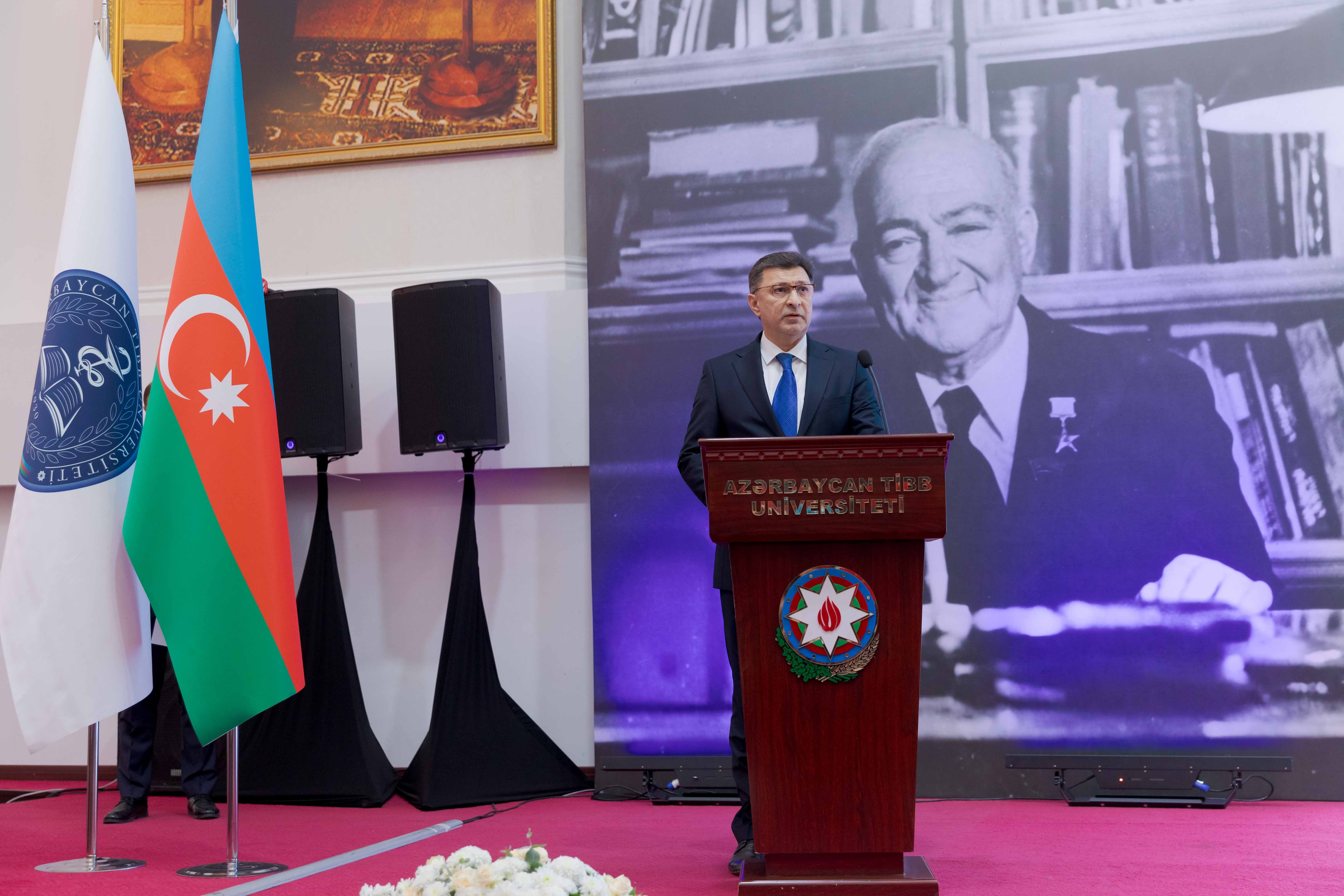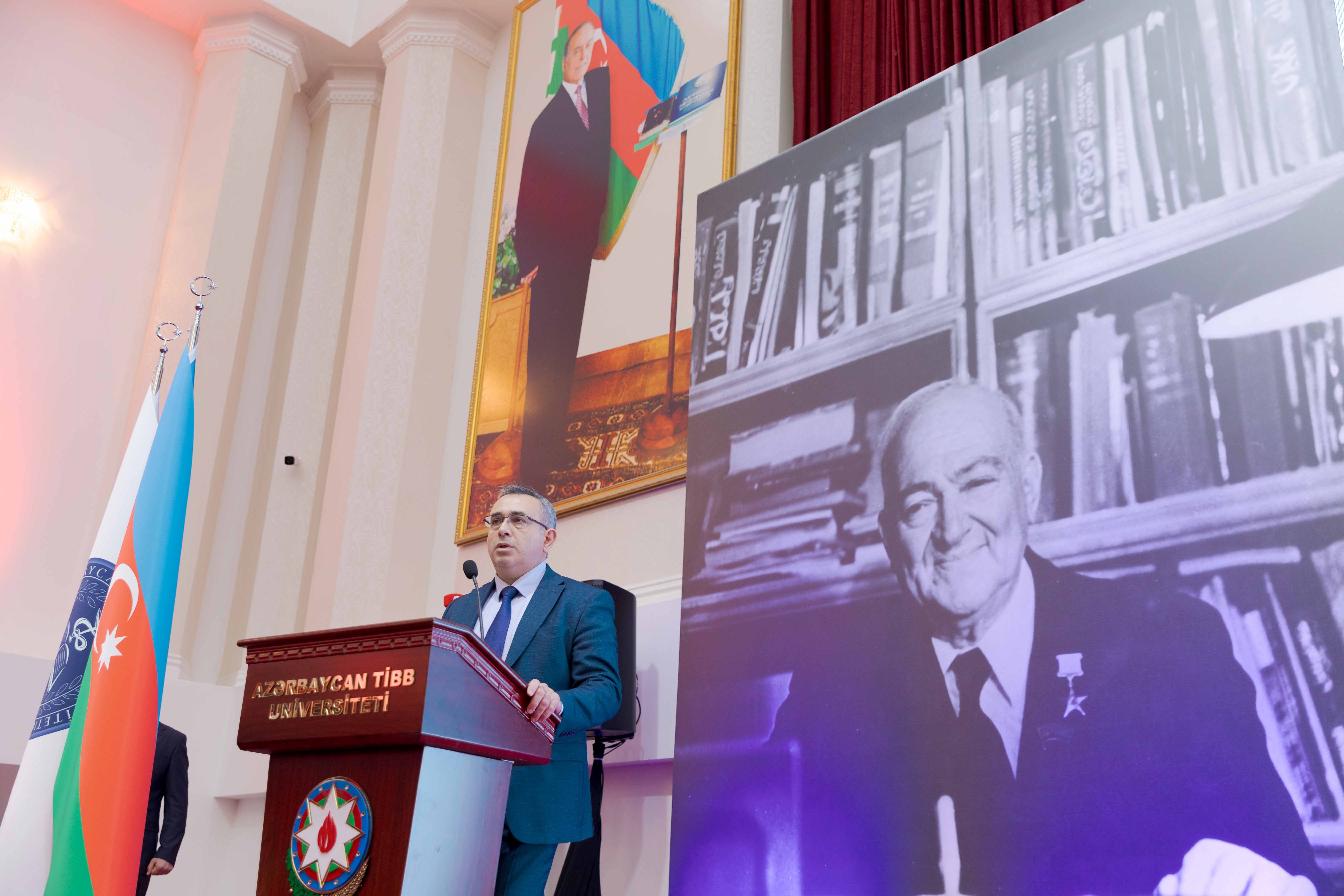 Rektor böyük alimin təşəbbüsü ilə tibb təhsilində həyata keçirilən islahatlar, praktik biliklərin önə çəkilməsi, innovativ tədris metodlarının tətbiqi istiqamətində görülən işlərin bu gün də Azərbaycan Tibb Universitetinin tədris sistemində mühüm yer tutduğunu vurğulayıb.