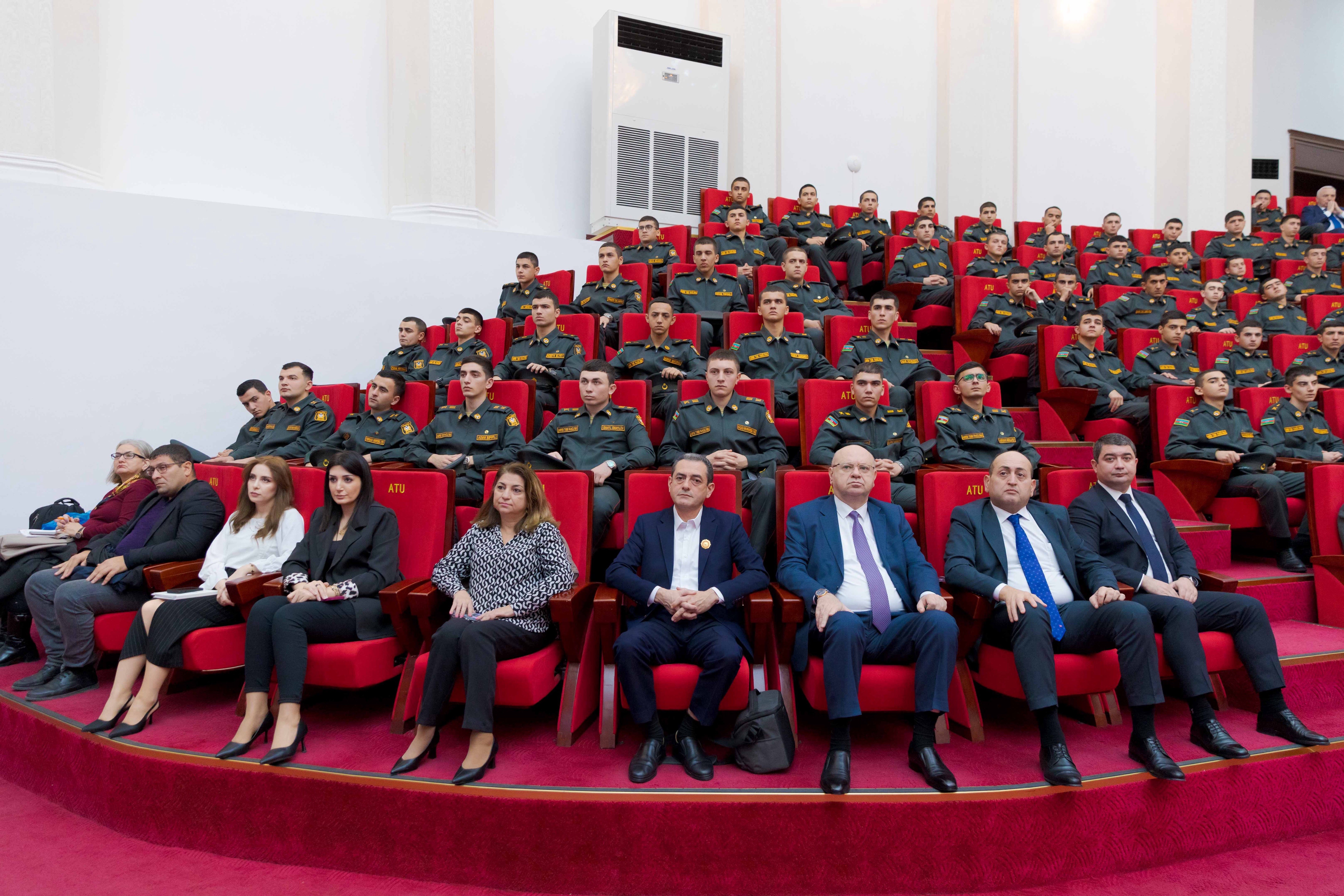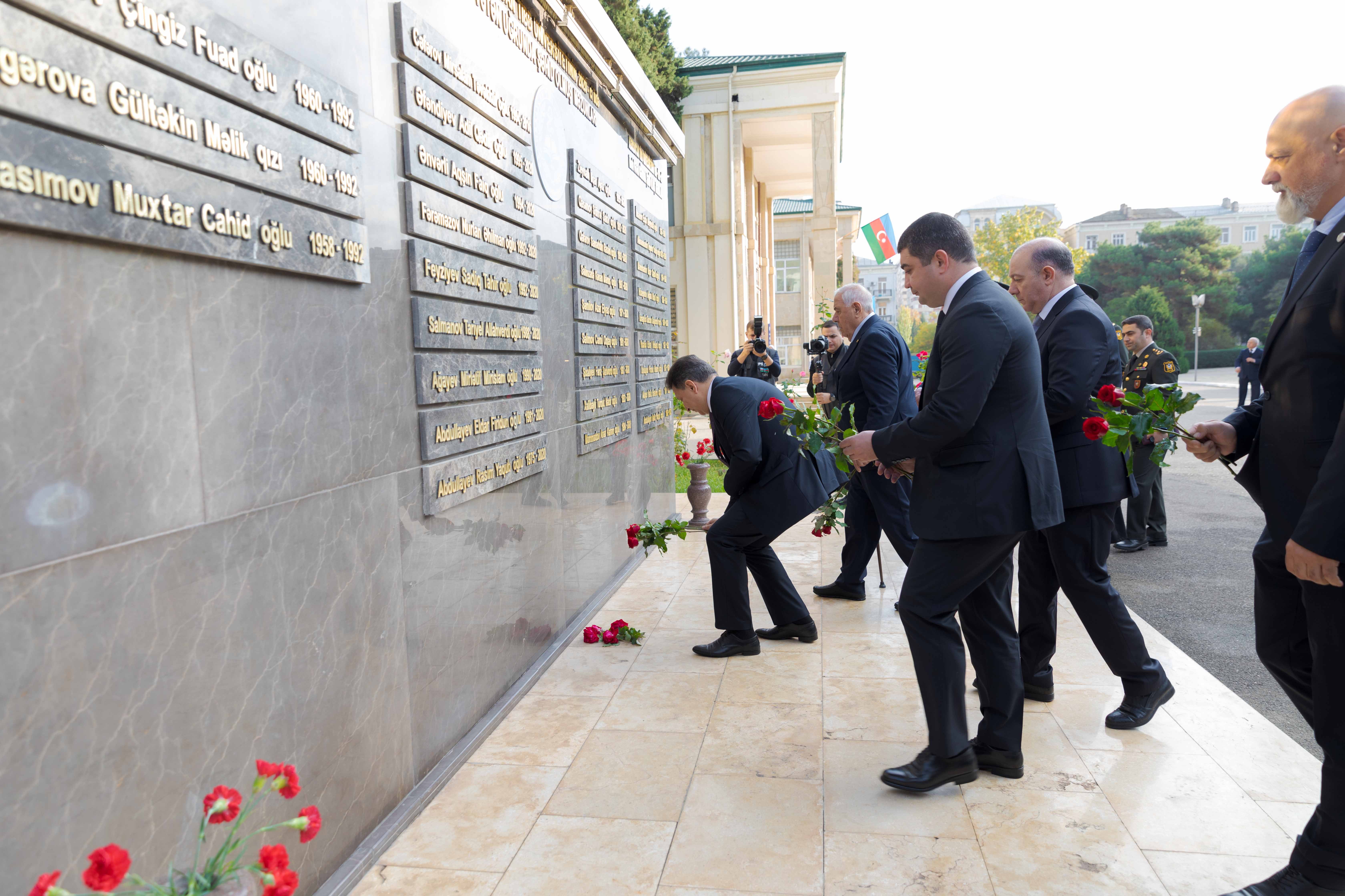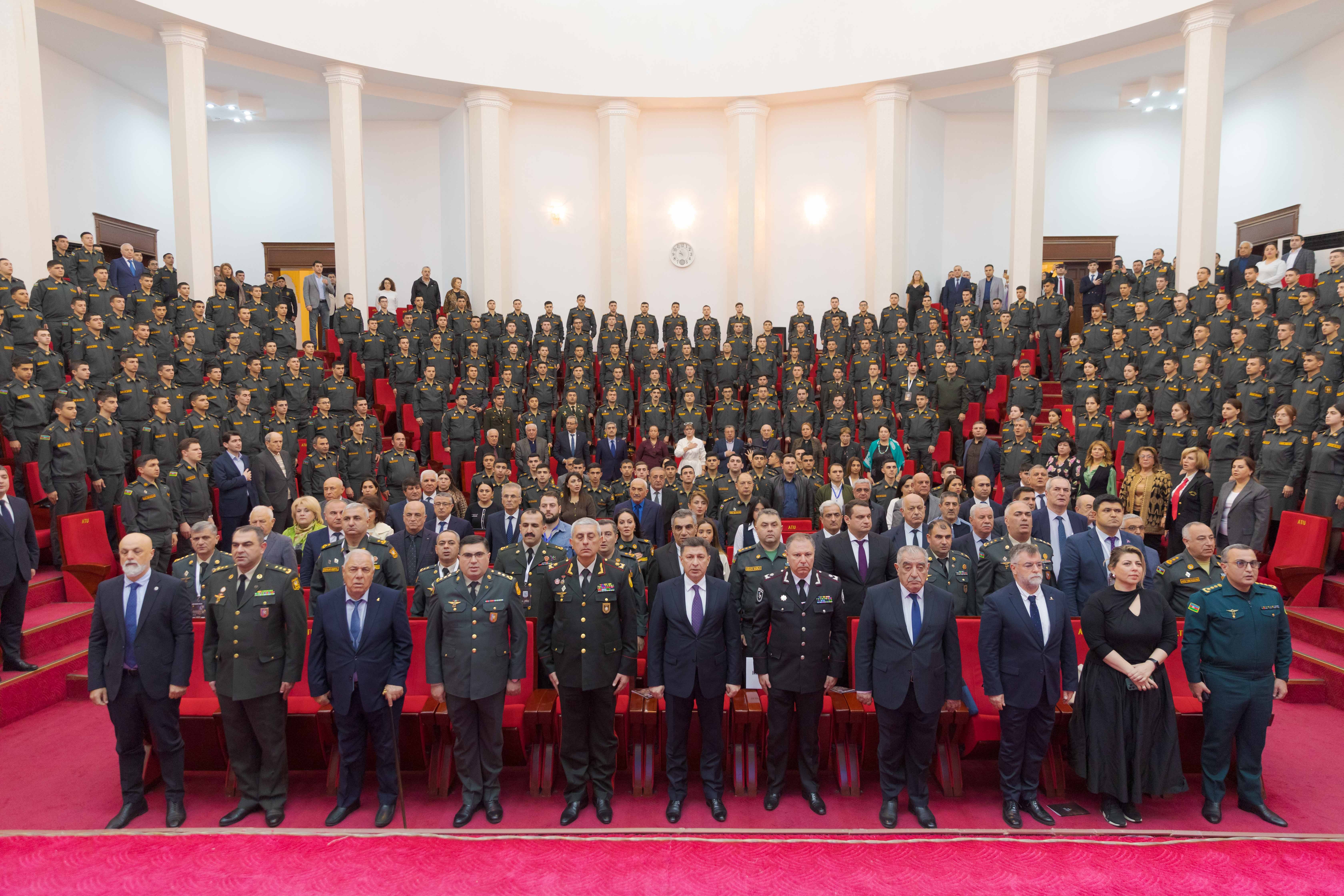 Tədbirdən əvvəl ATU-nun rektoru, professor Gəray Gəraybəyli, universitetin rəhbər şəxsləri, professor-müəllim heyəti, eləcə də Müdafiə Nazirliyinin məsul əməkdaşları universitetin həyətində şəhidlərin xatirəsinə ucaldılmış abidə kompleksini ziyarət edərək, önünə gül dəstələri düzüblər.