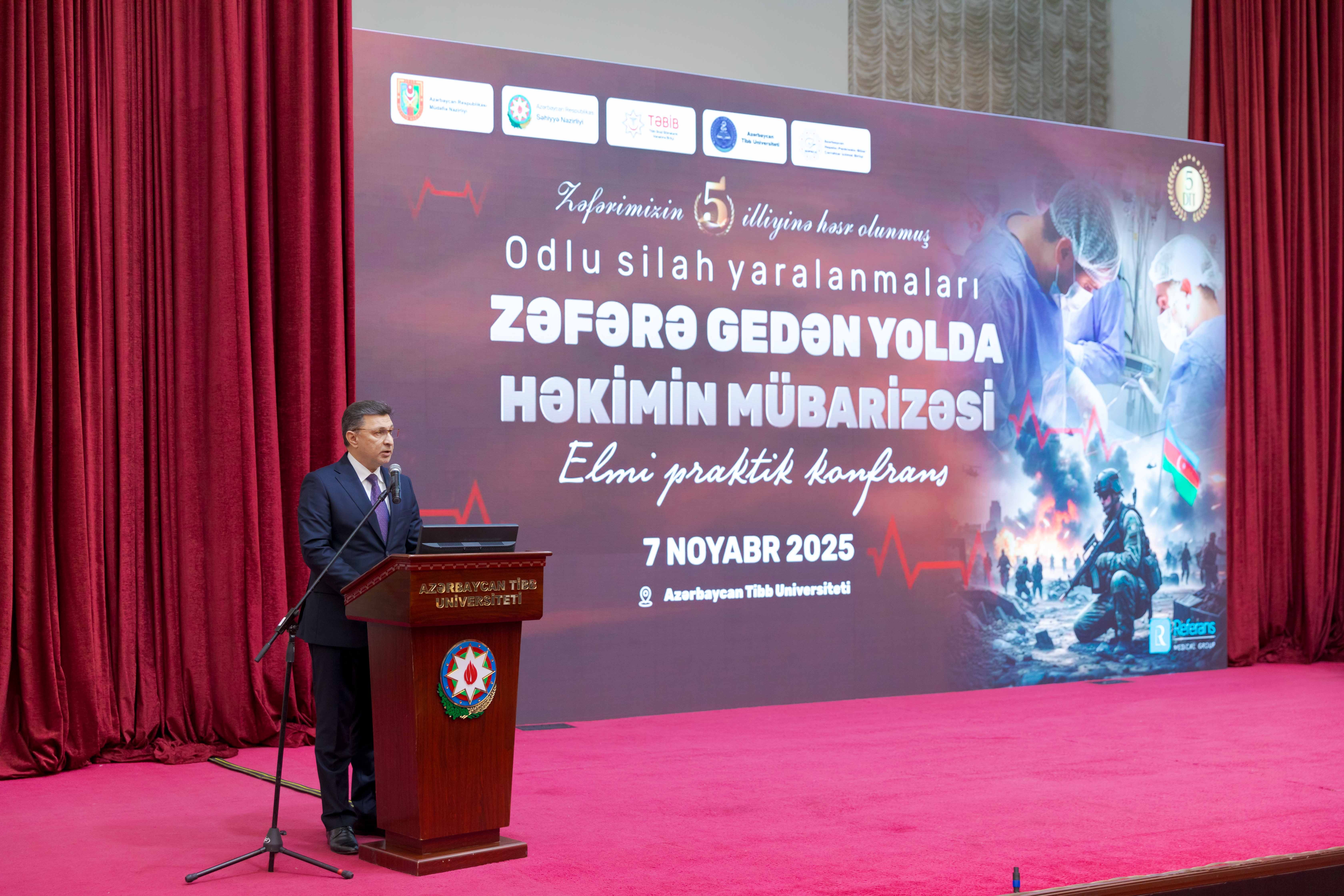 Müdafiə Nazirliyinin Milli Müdafiə Universiteti və Azərbaycan Tibb Universitetinin təşkilatçılığı ilə ATU-da 44 günlük Vətən müharibəsində qələbəmizin 5-ci ildönümünə həsr olunmuş “Zəfərə gedən yolda həkimin mübarizəsi” adlı elmi-praktik konfrans keçirilib.
