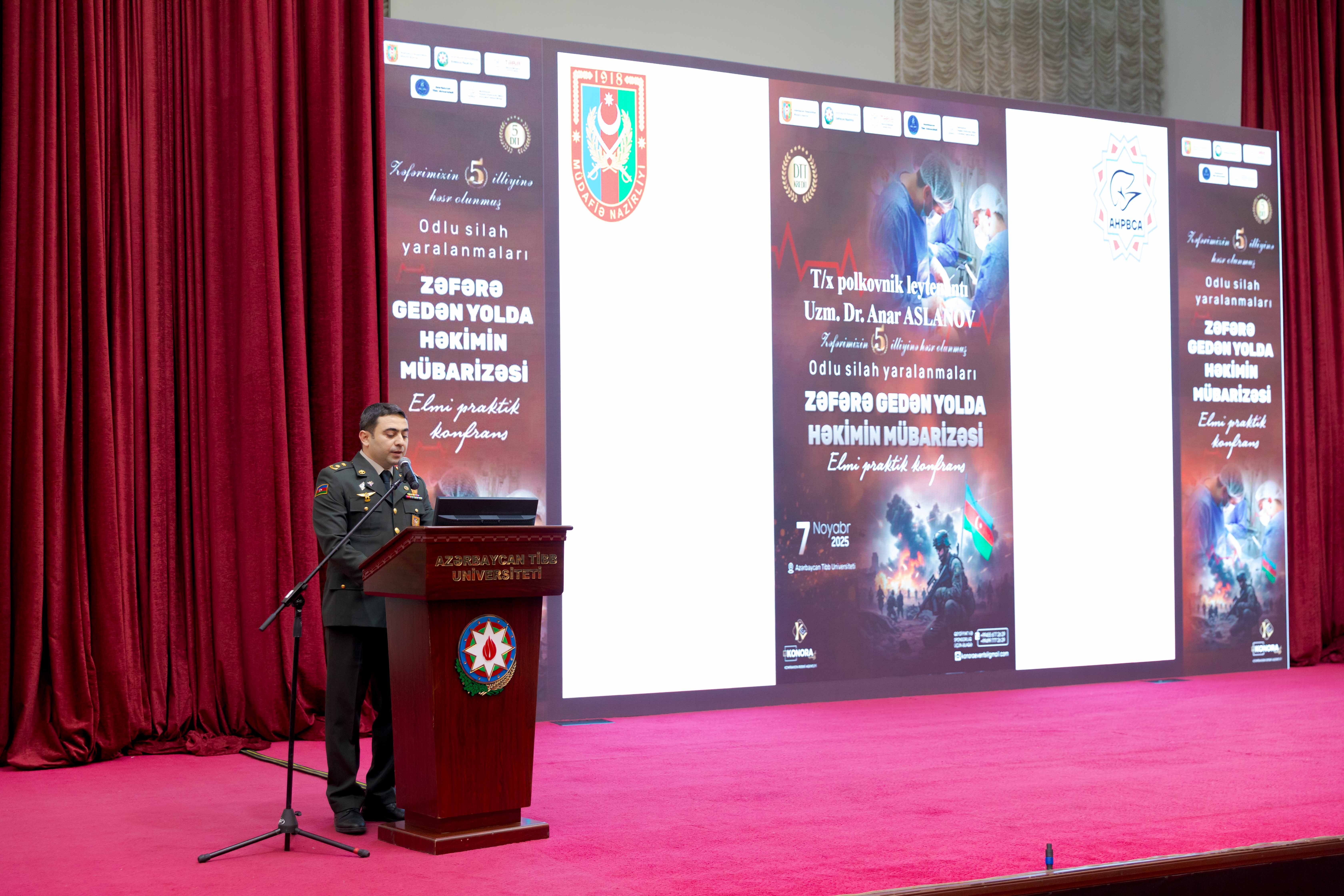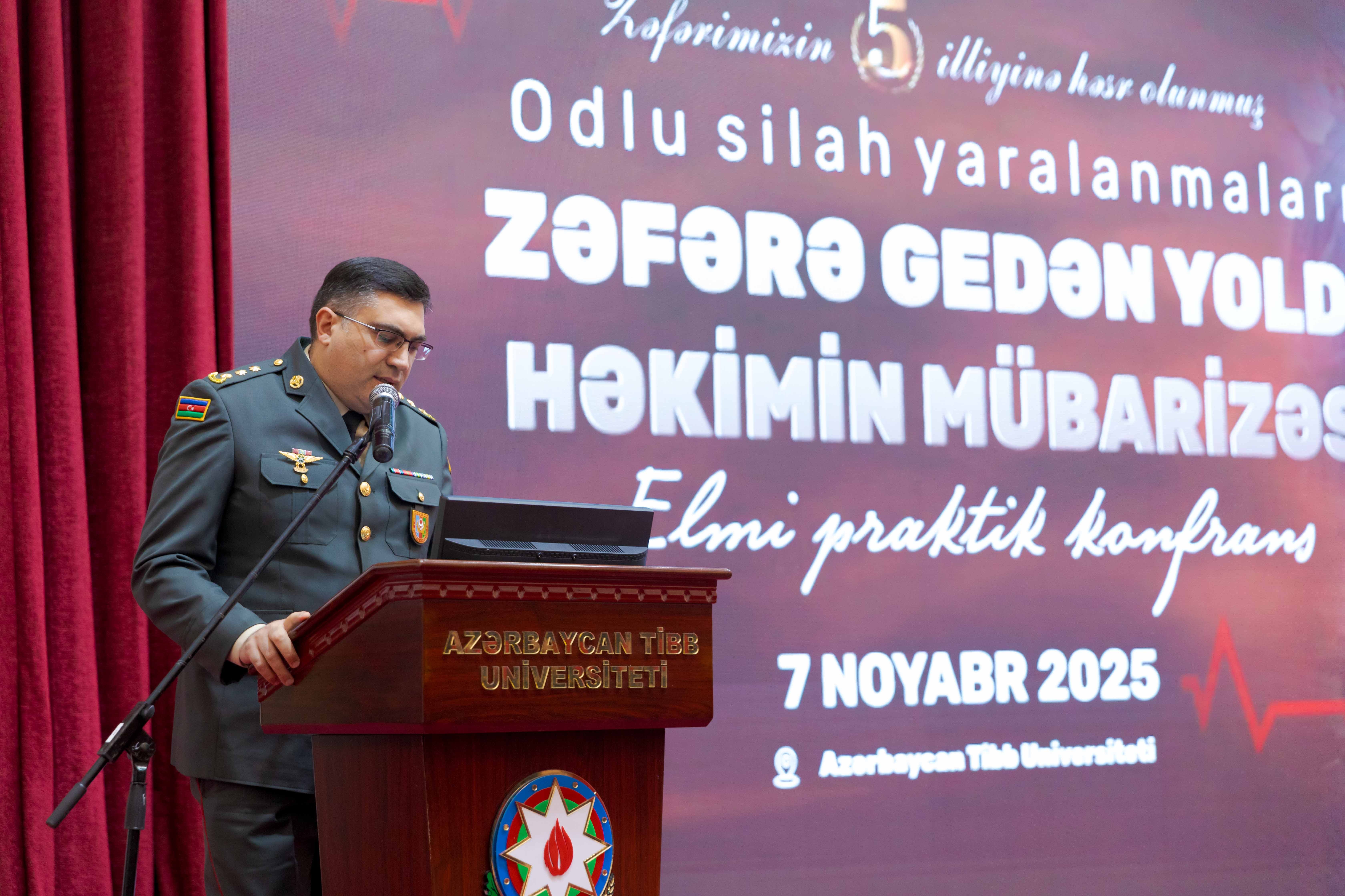Konfransın sədri, tibb xidməti polkovnik-leytenantı Anar Aslanov həkimlərimizin şərəfli döyüş yoluna toxunub, nümunələr səsləndirib. Bildirib ki, Vətən müharibəsində şəhidlərin sayı digər müharibələrlə müqayisədə daha az olub. Bunun səbəbi isə həkimlərimizin birbaşa döyüş meydanında yaralılara ilkin tibbi yardım göstərməsi və onları təxliyə etməsi olub. Onun Zəfərlə bağlı təqdimatı və sonda səsləndirdiyi “Mənim Şuşam” şeiri alqışlarla qarşılanıb.