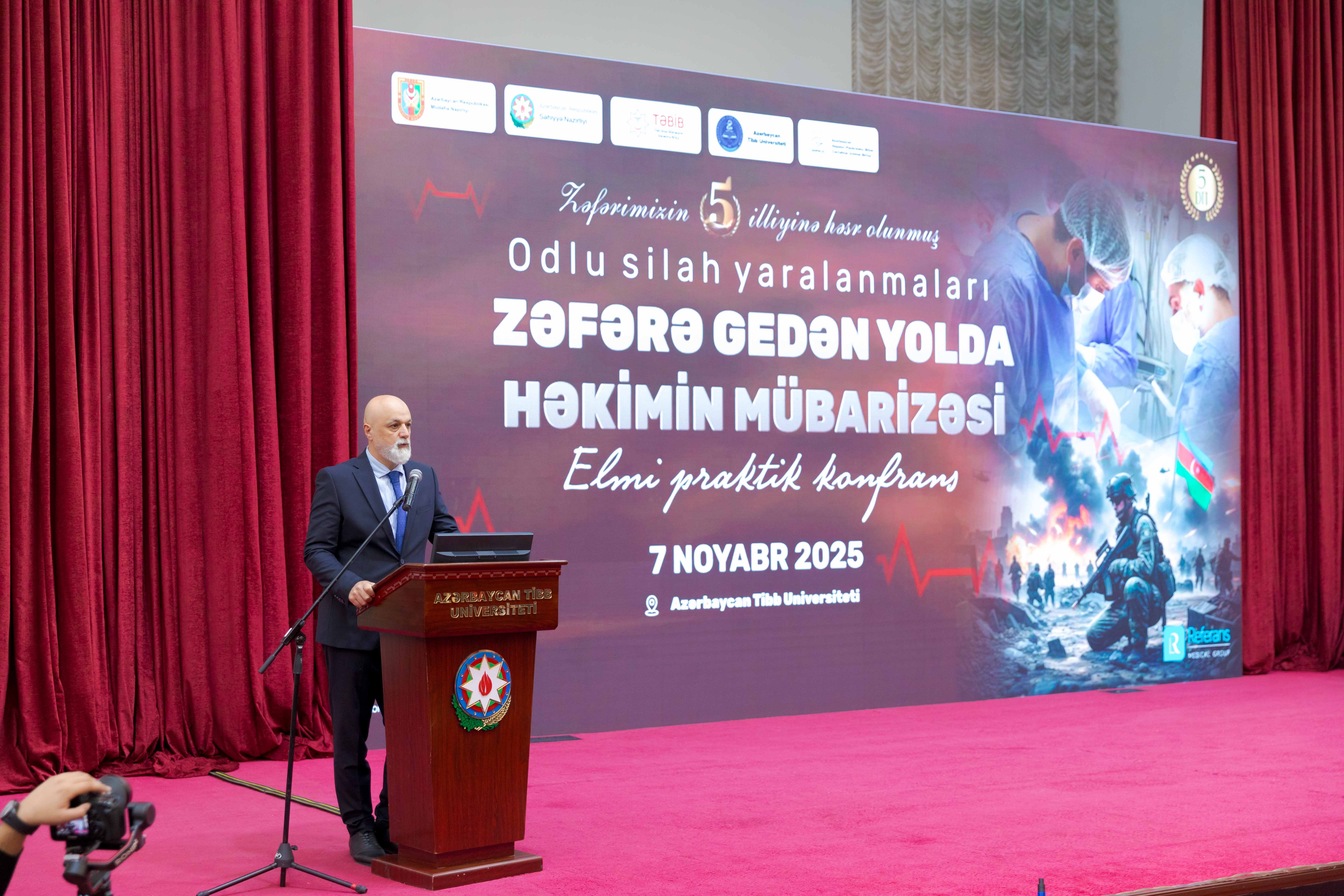 Oftalmoloq-cərrah, tibb xidməti kapitanı Rəhman Hüseynzadənin aparıcılığı ilə konfrans öz işinə Dövlət Himninin səsləndirilməsi və vətənimizin ərazi bütövlüyü uğrunda canlarını fəda etmiş şəhidlərin ruhunun ehtiramla yad edilməsi ilə başlayıb. Tədbirin məqsədi odlu silah yaralanmaları zamanı həkimlərin multidisiplinar yanaşmasını gücləndirmək, ilkin tibbi yardım və ixtisaslaşmış cərrahi müdaxilə üzrə müasir protokolları müzakirə etmək, real döyüş şəraitində qazanılmış təcrübələri paylaşmaq idi.