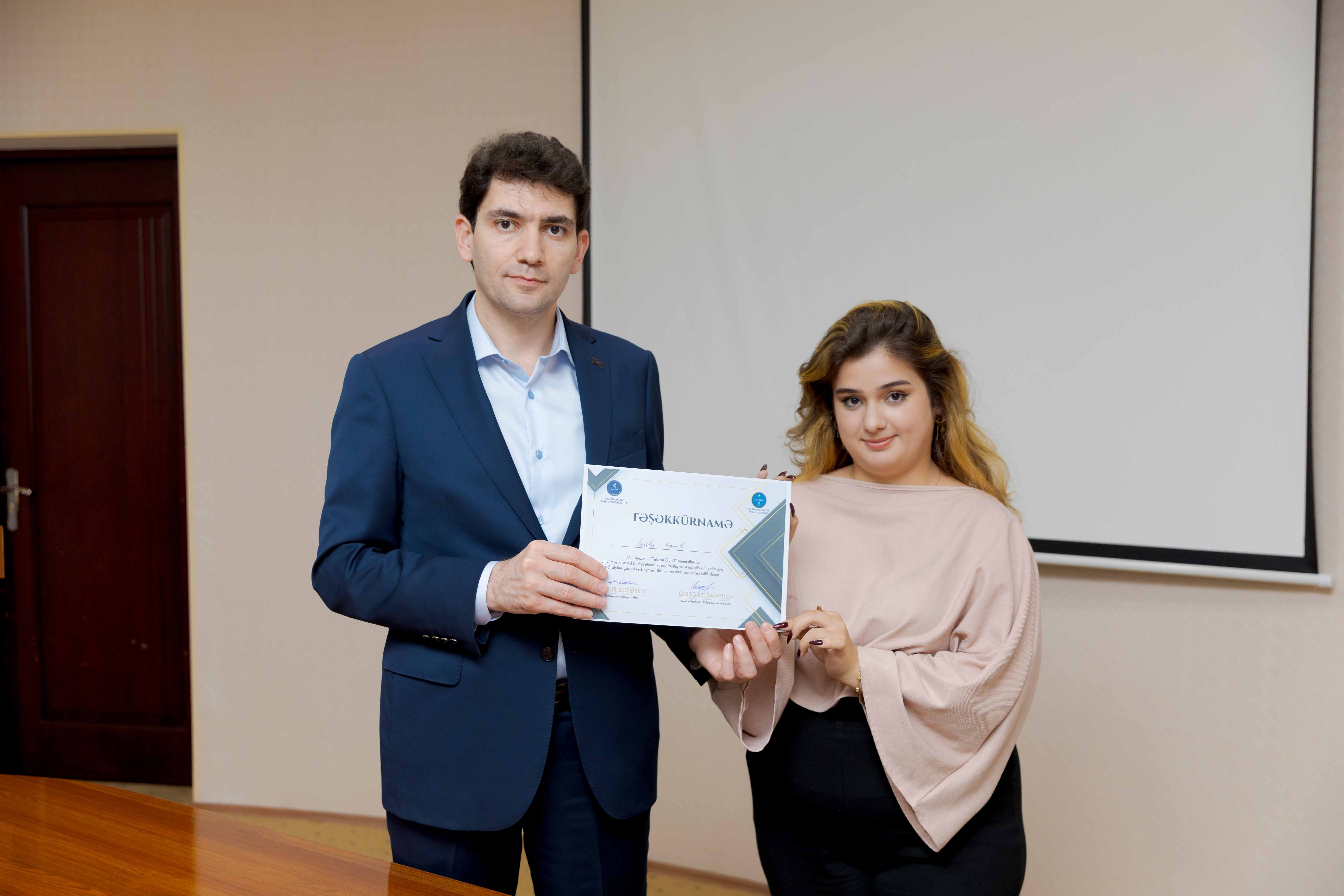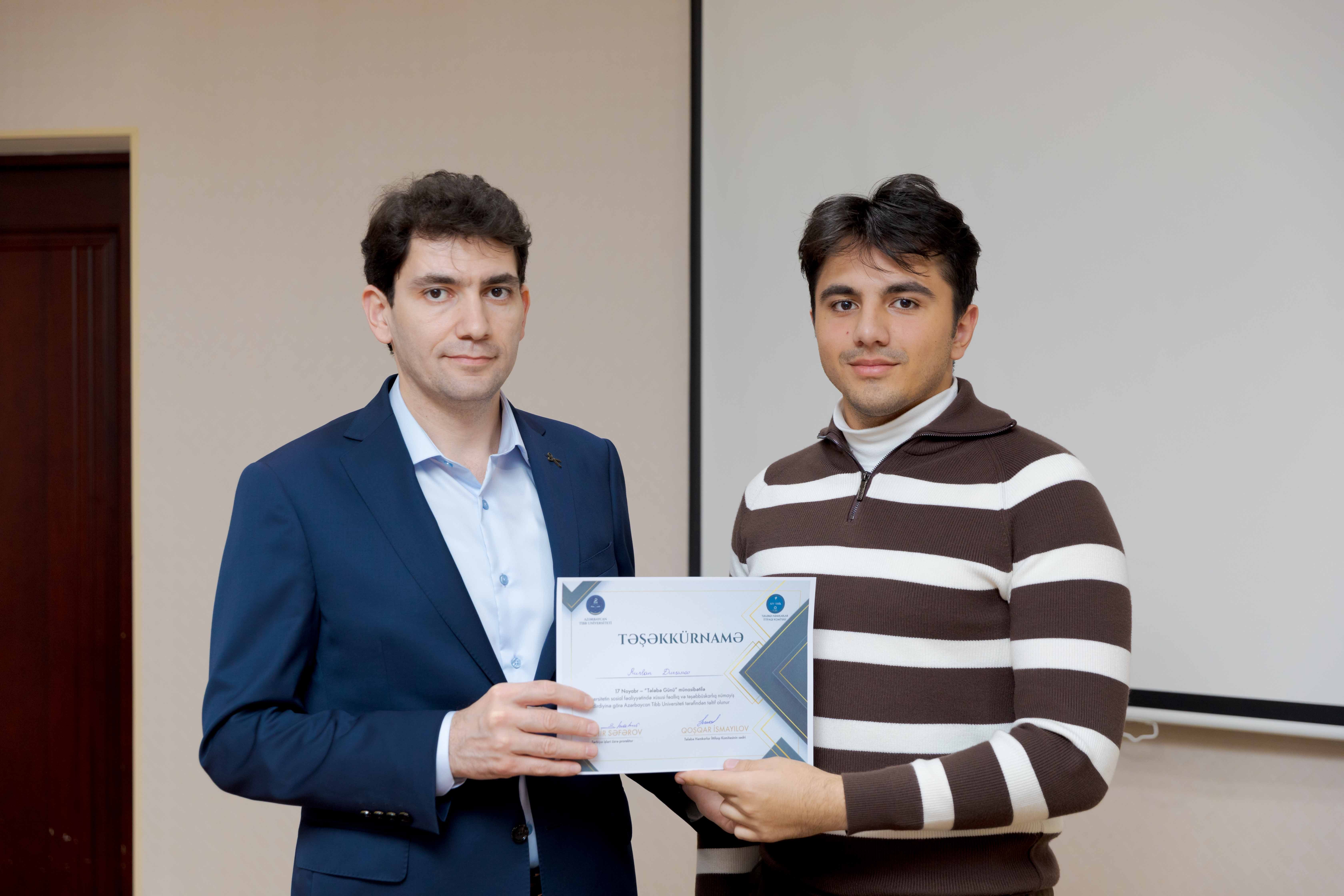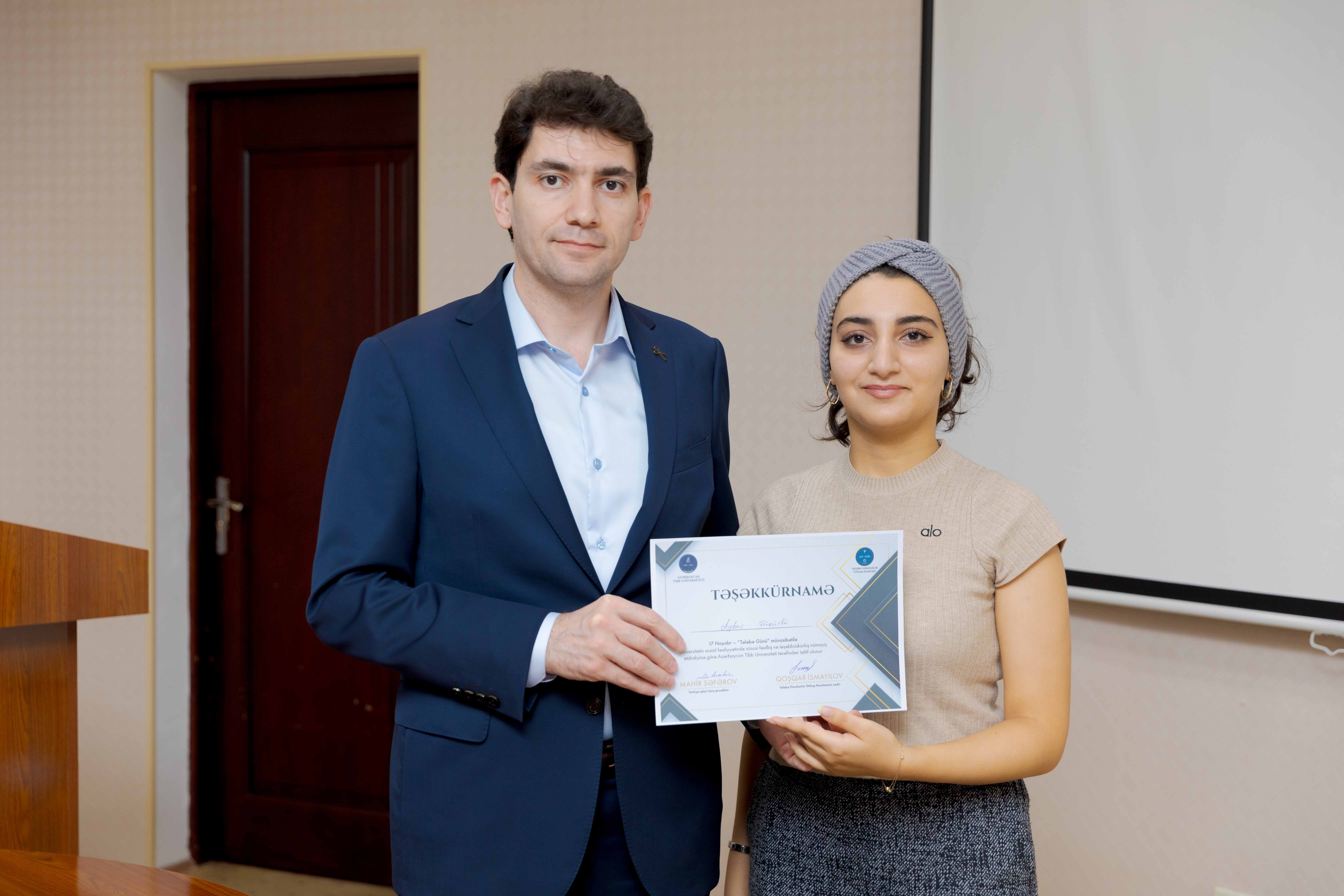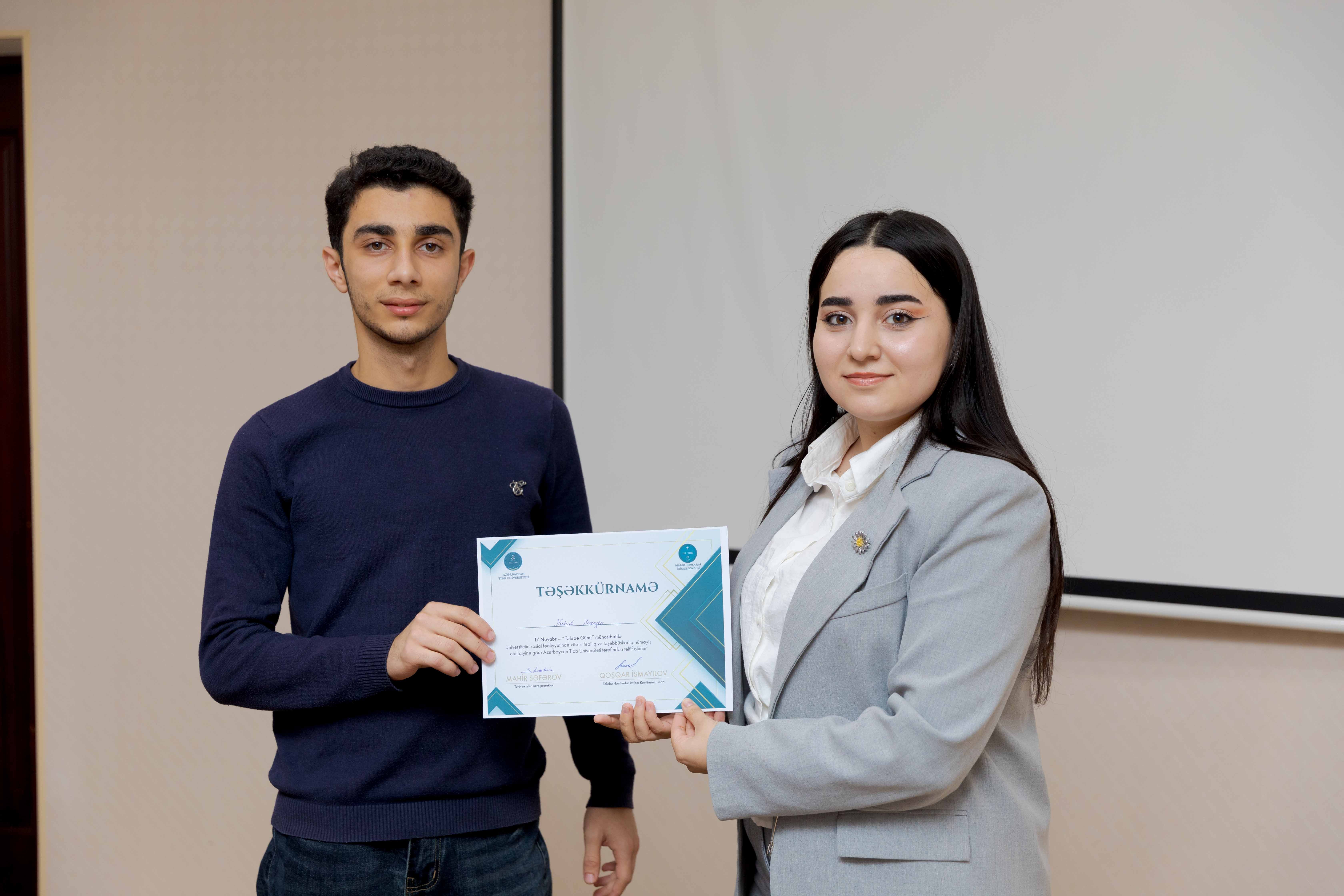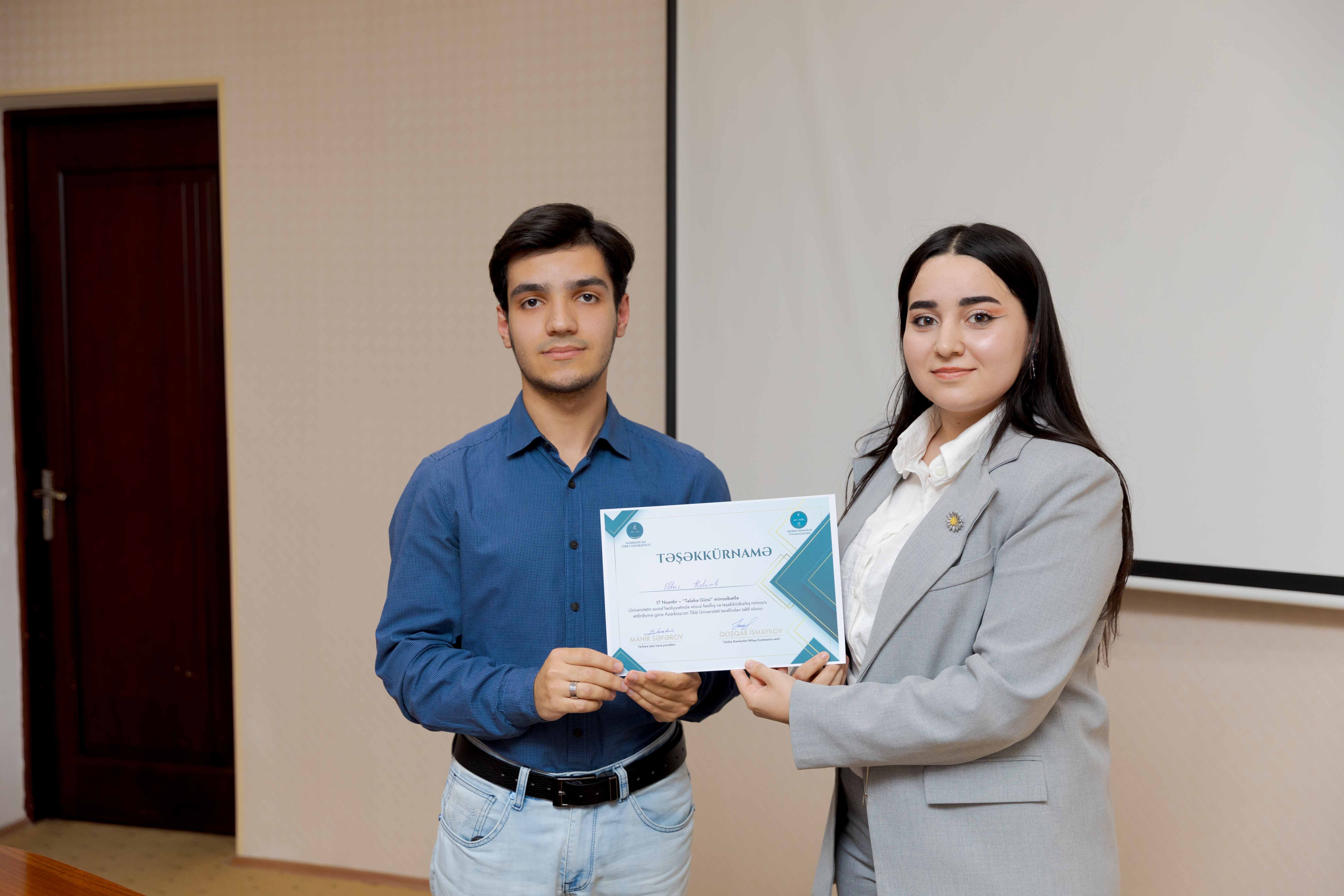 Tədbirin sonunda universitetin sosial-ictimai həyatında fərqlənən 30 tələbə Təşəkkürnamə ilə təltif olunub.