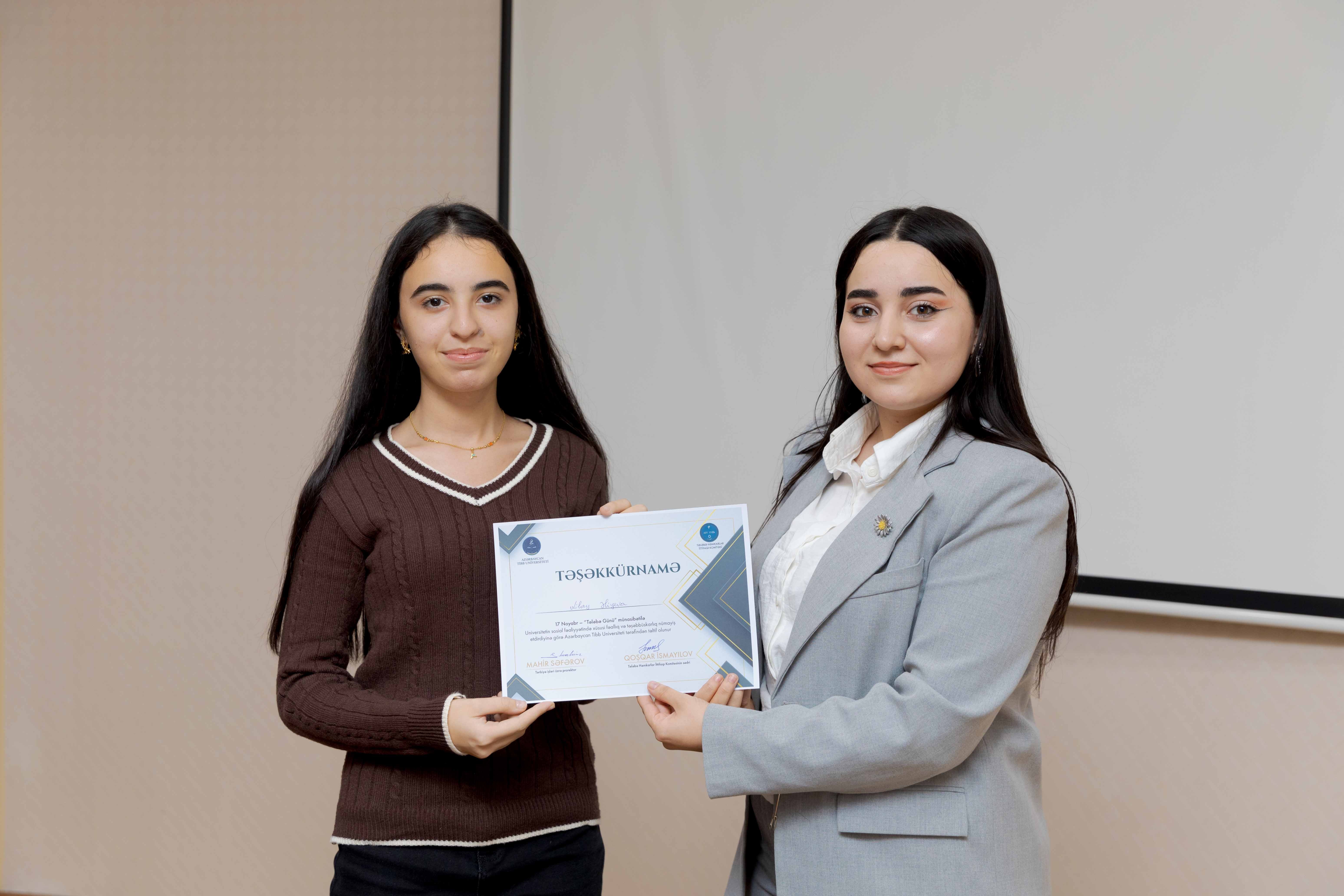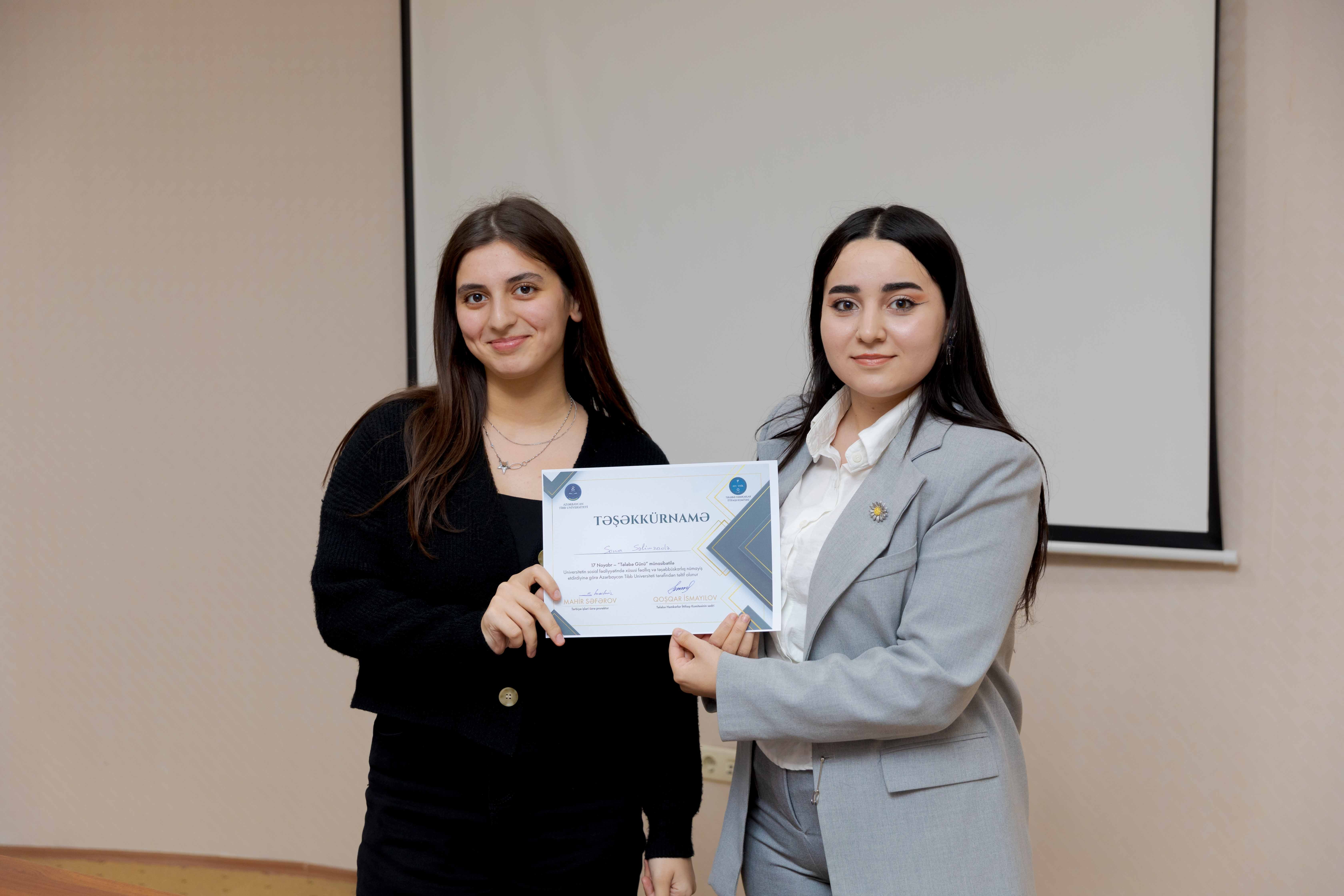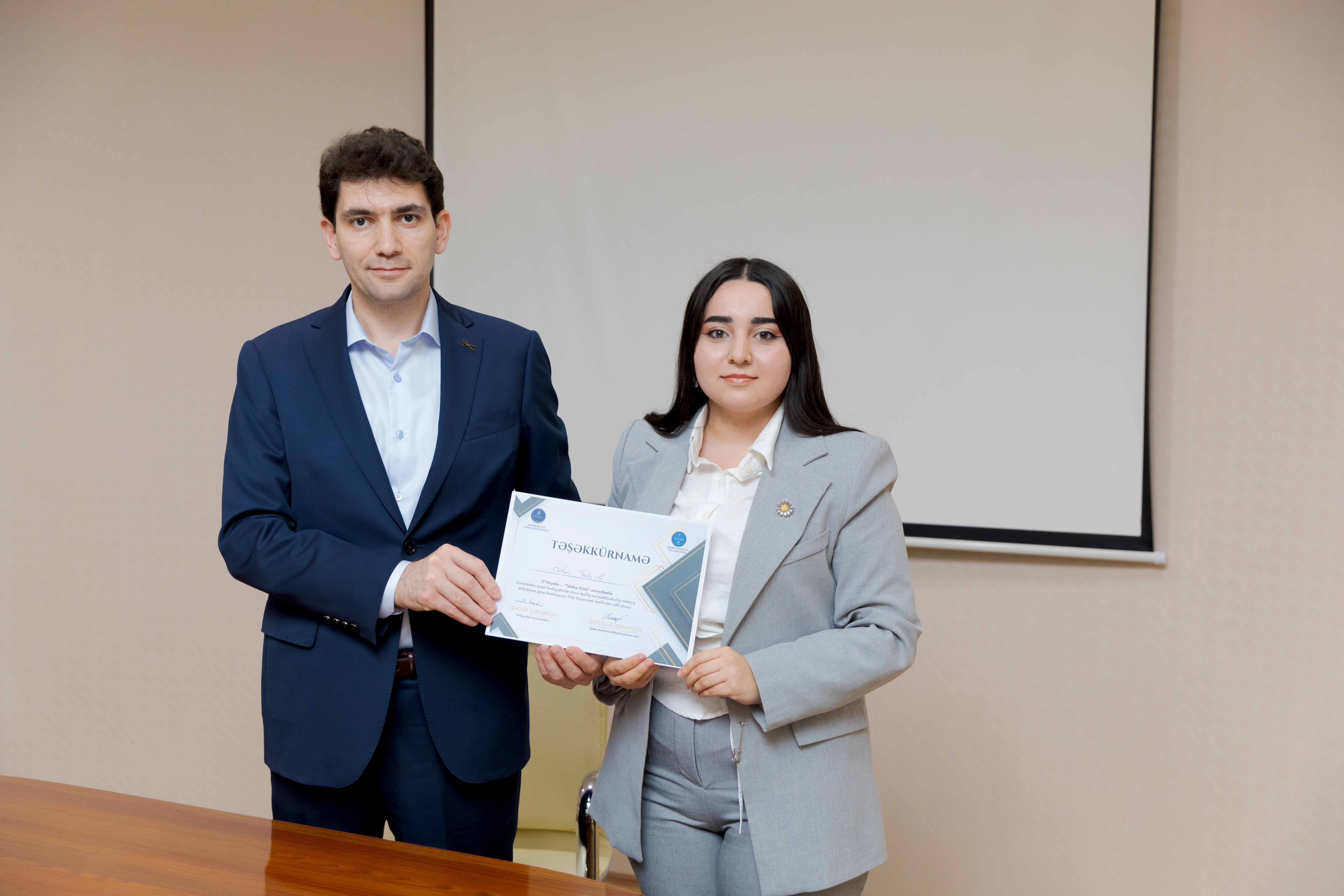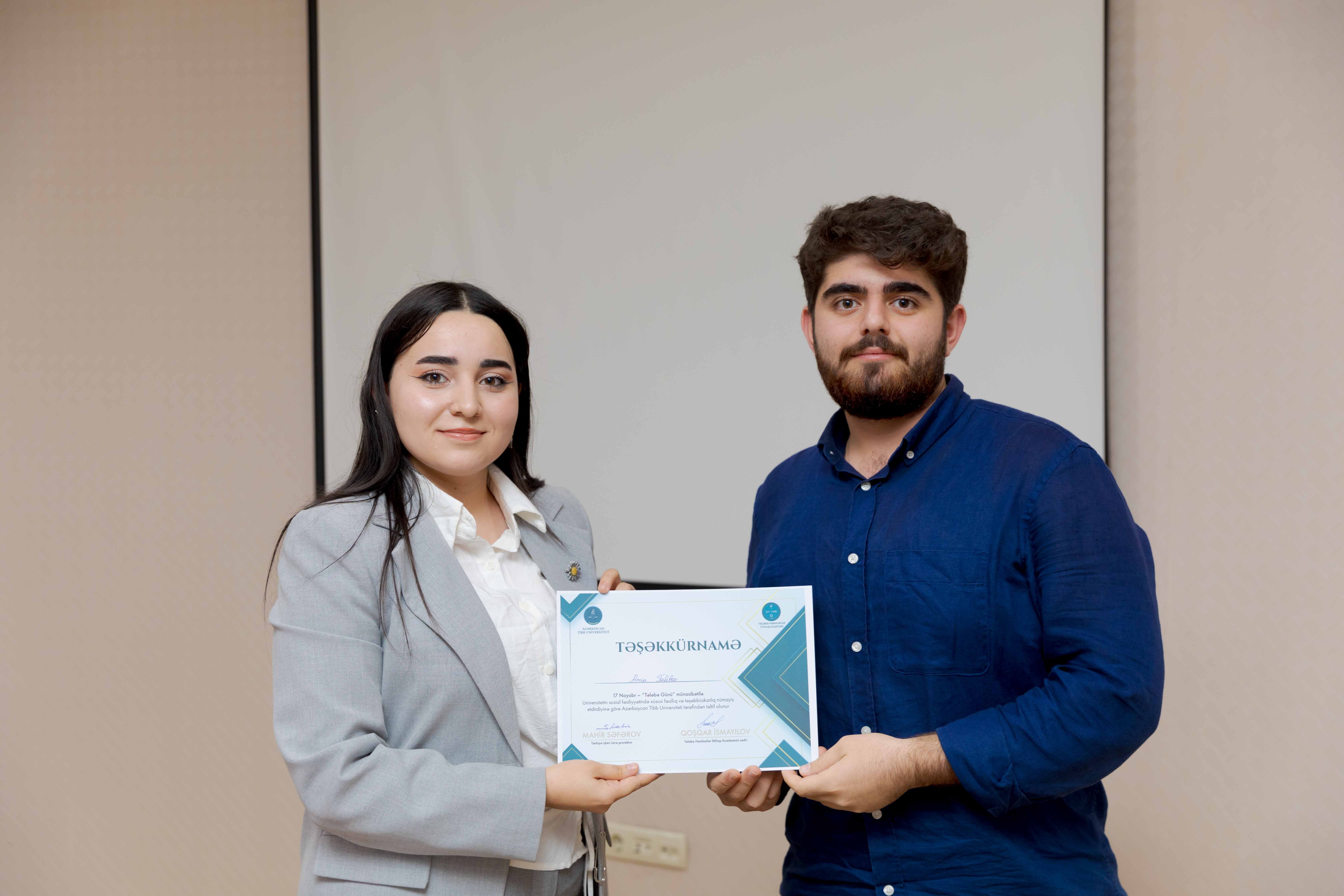 Tədbirin sonunda universitetin sosial-ictimai həyatında fərqlənən 30 tələbə Təşəkkürnamə ilə təltif olunub.