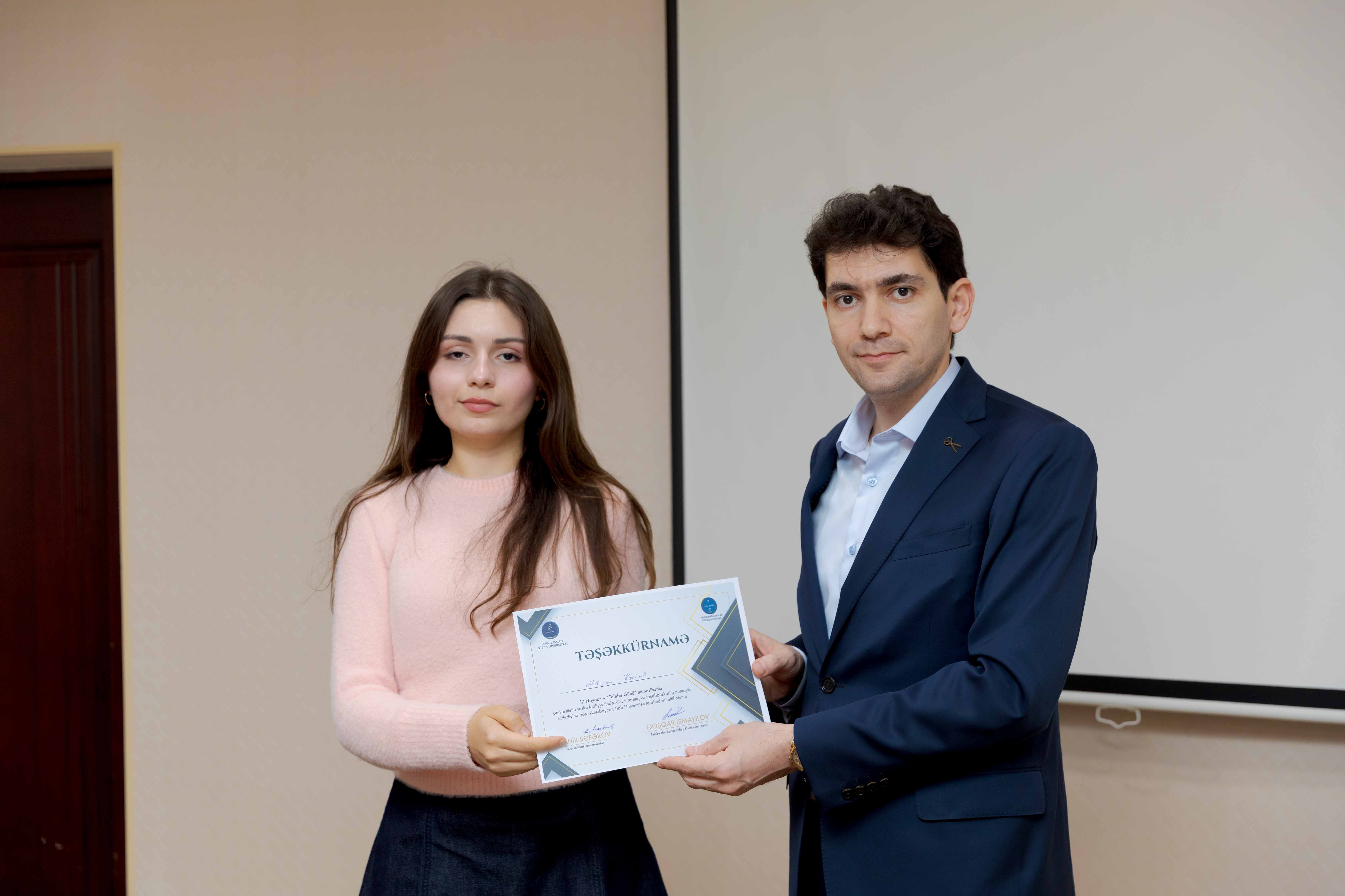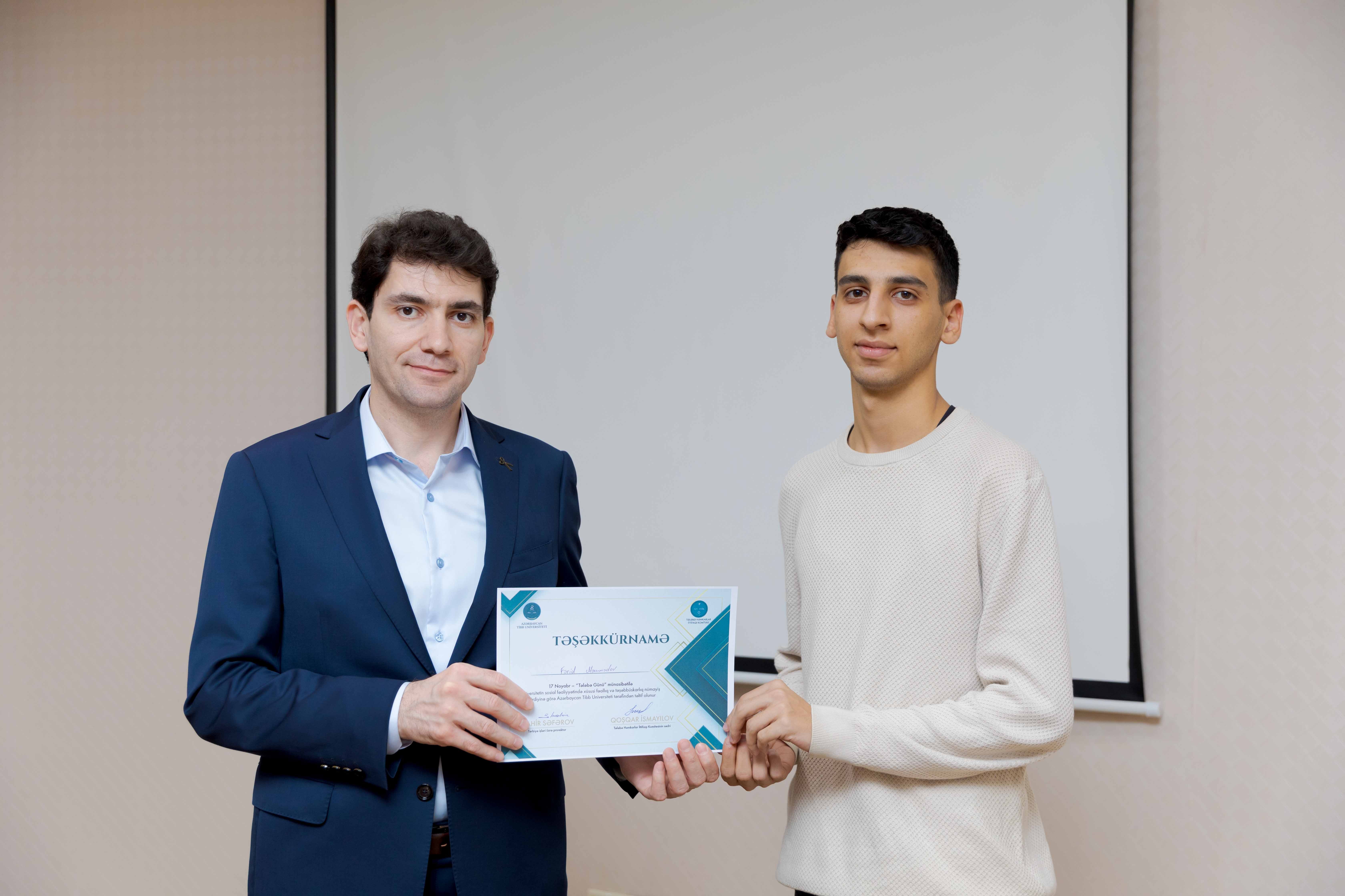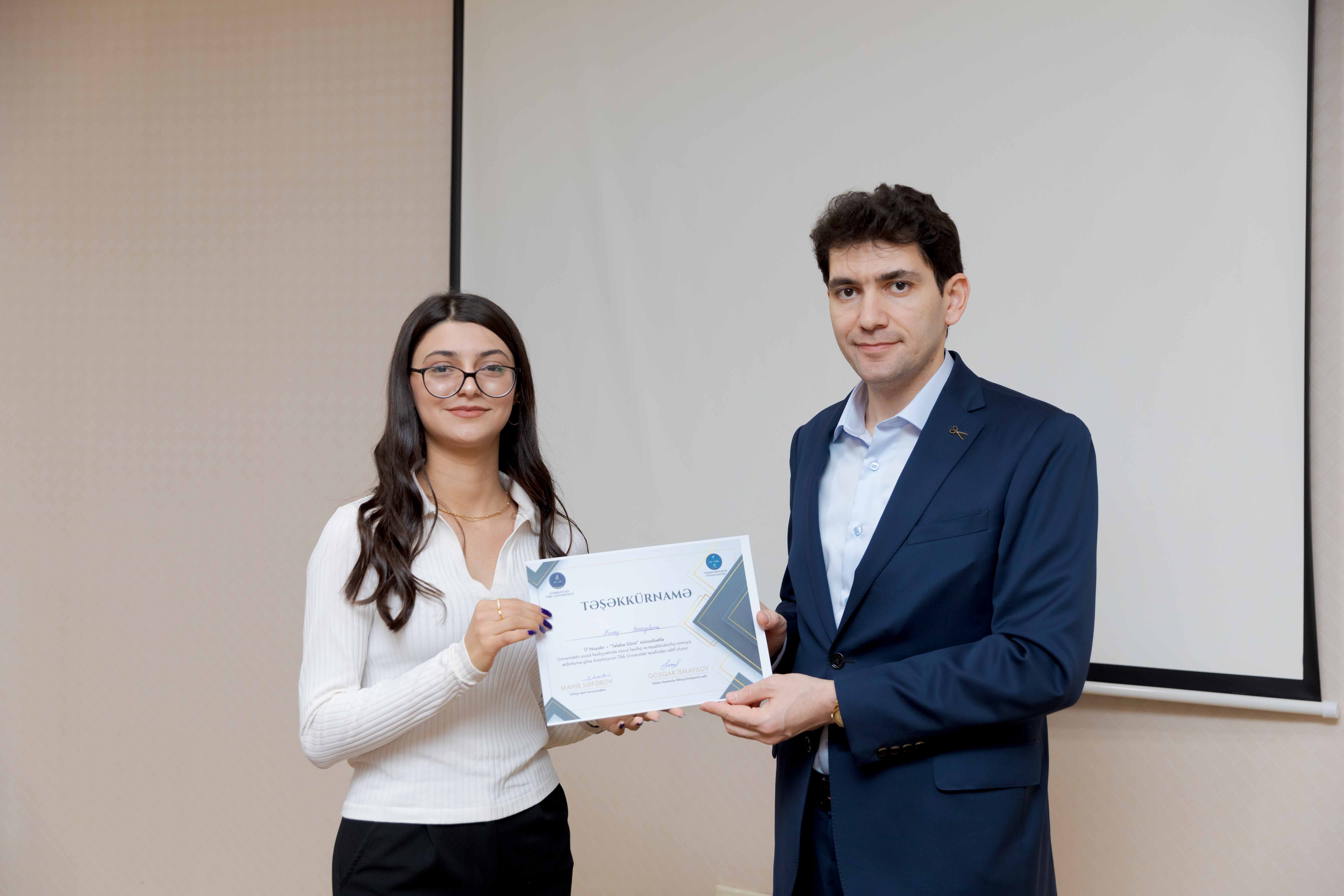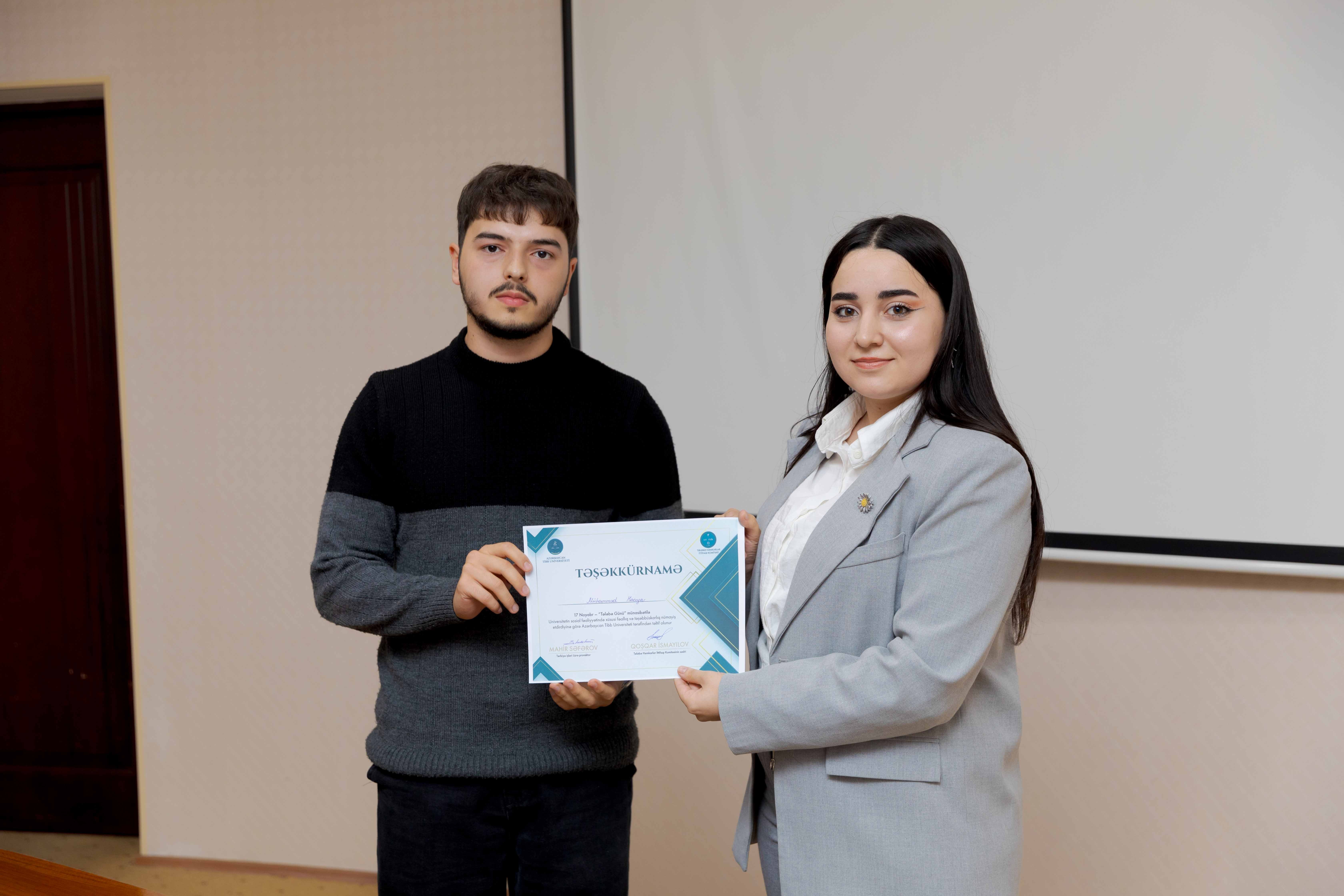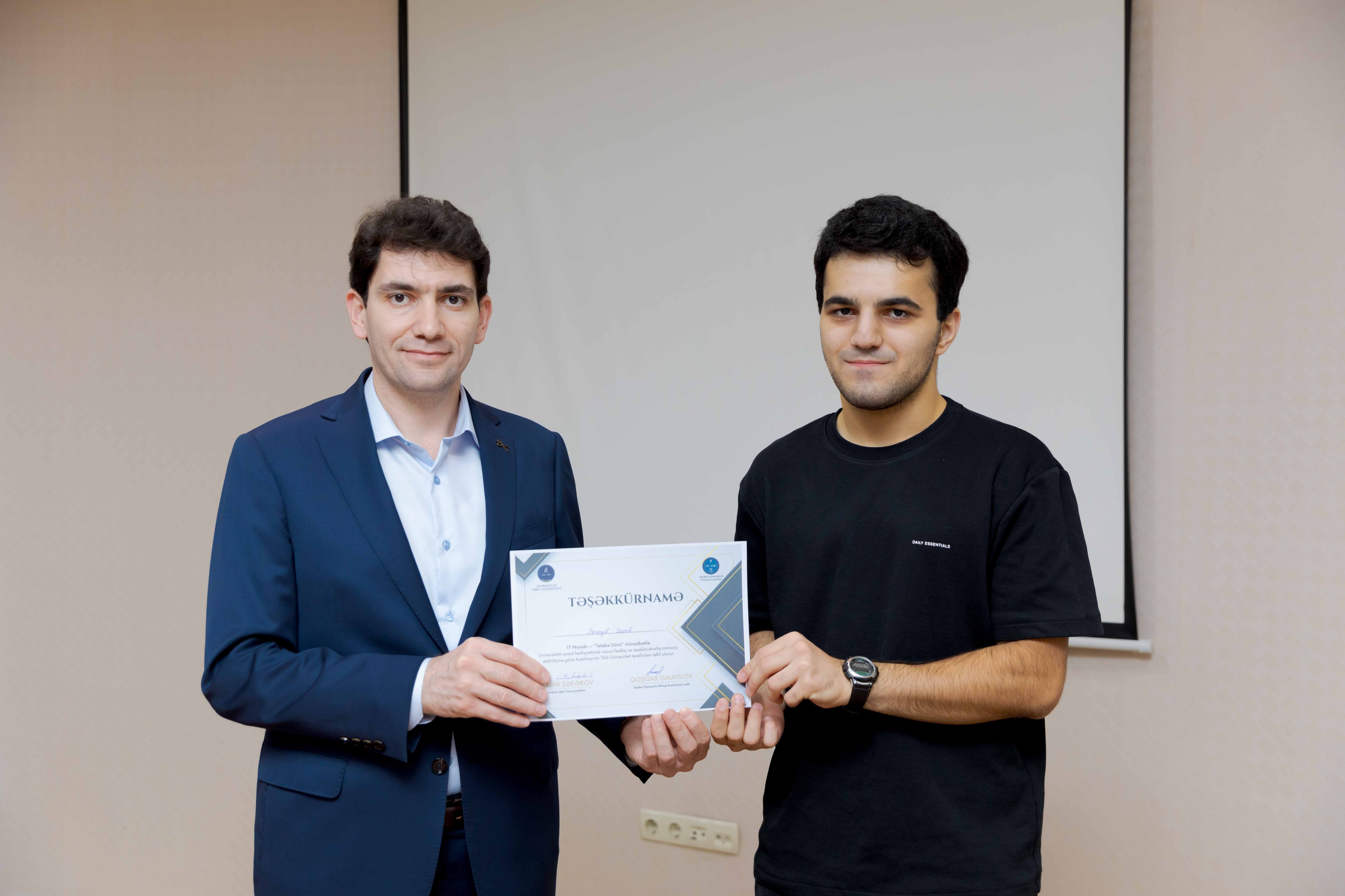 Tədbirin sonunda universitetin sosial-ictimai həyatında fərqlənən 30 tələbə Təşəkkürnamə ilə təltif olunub.