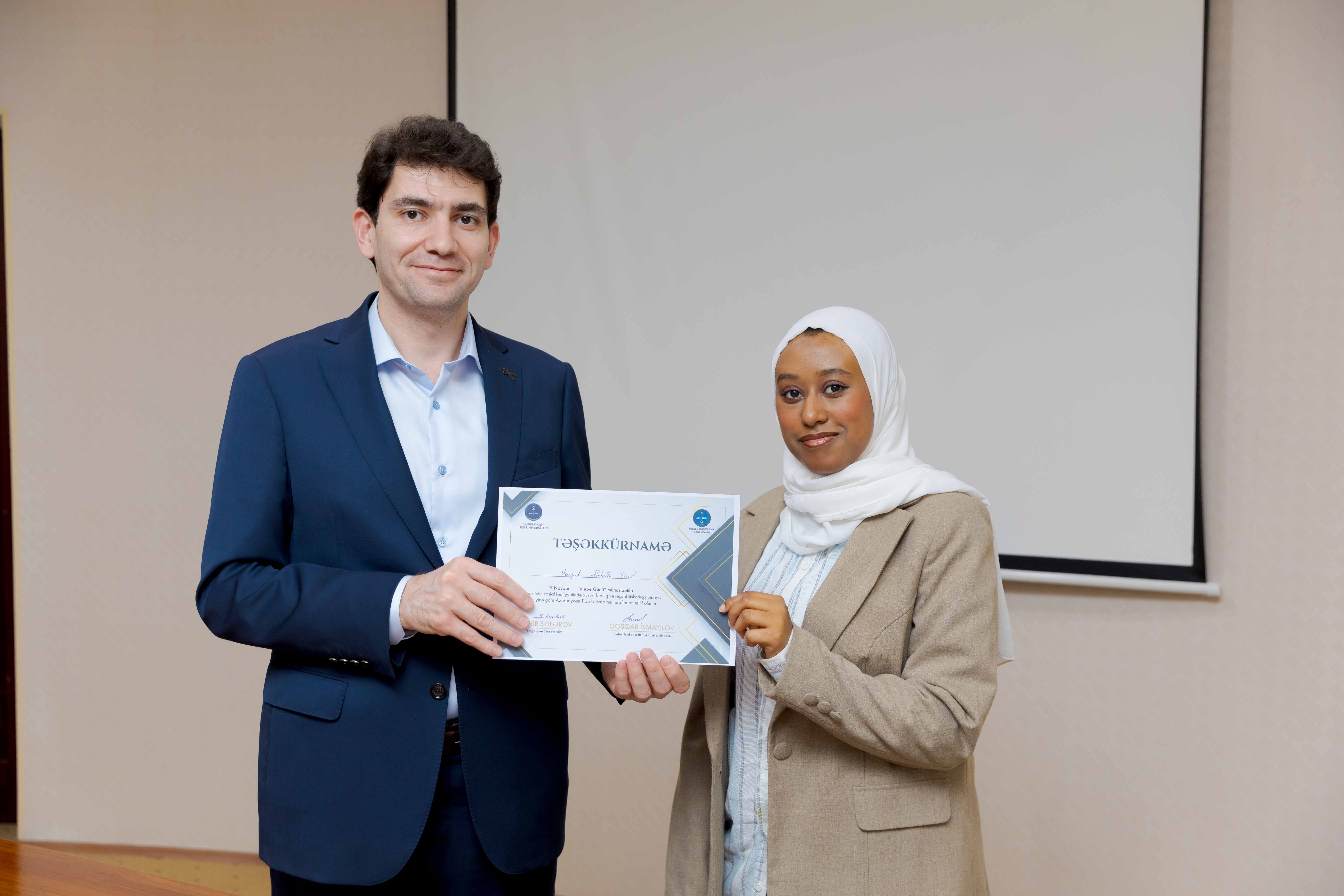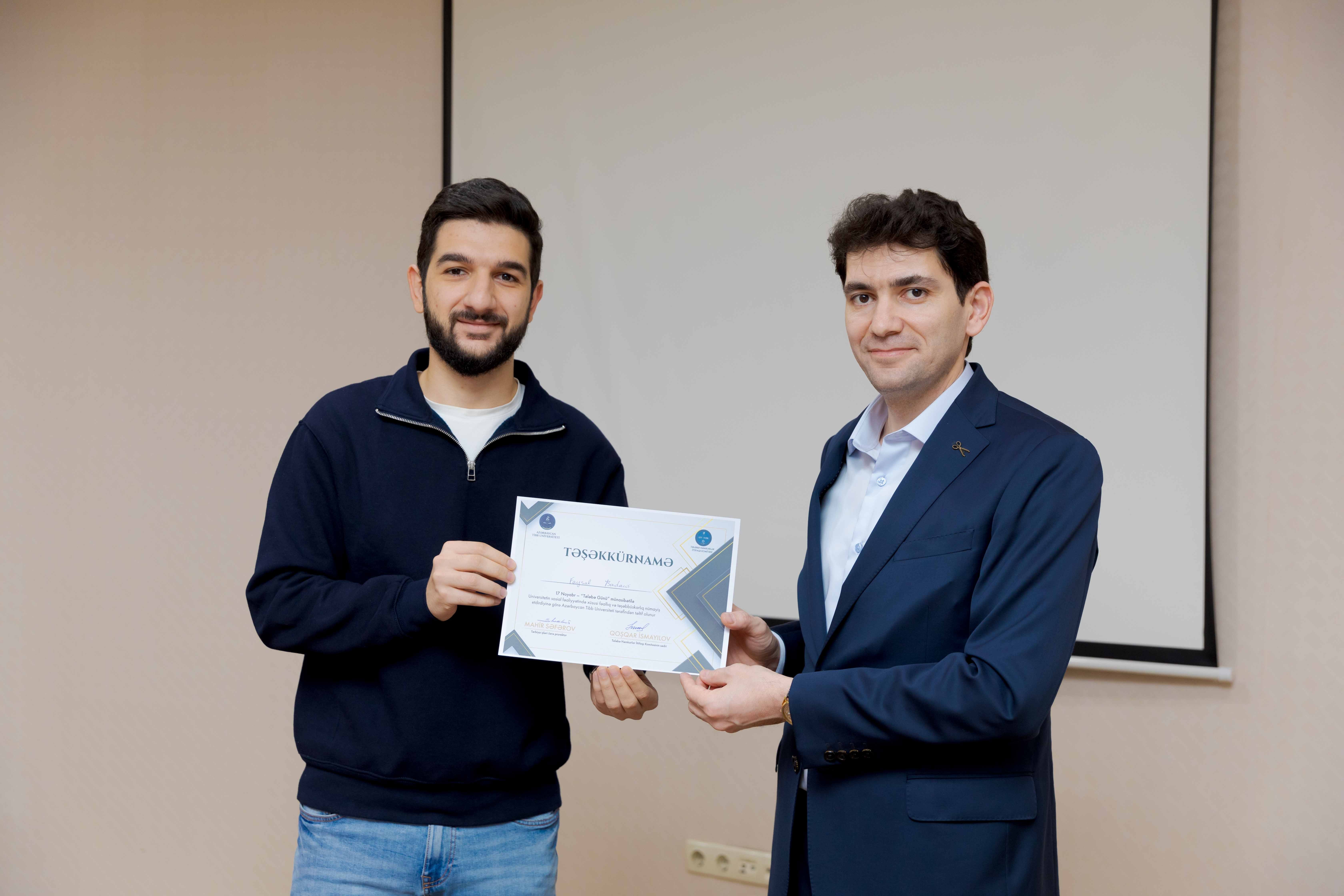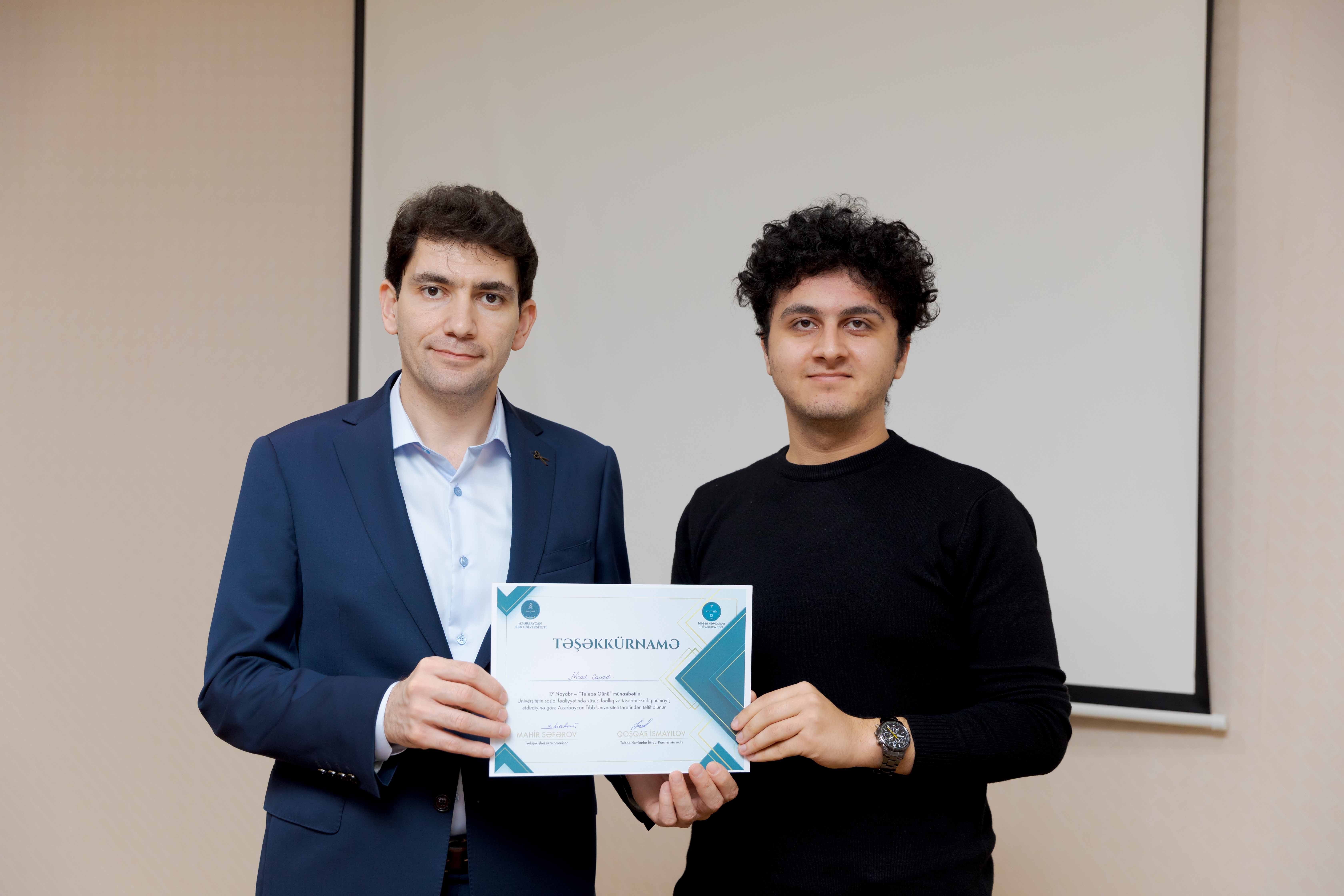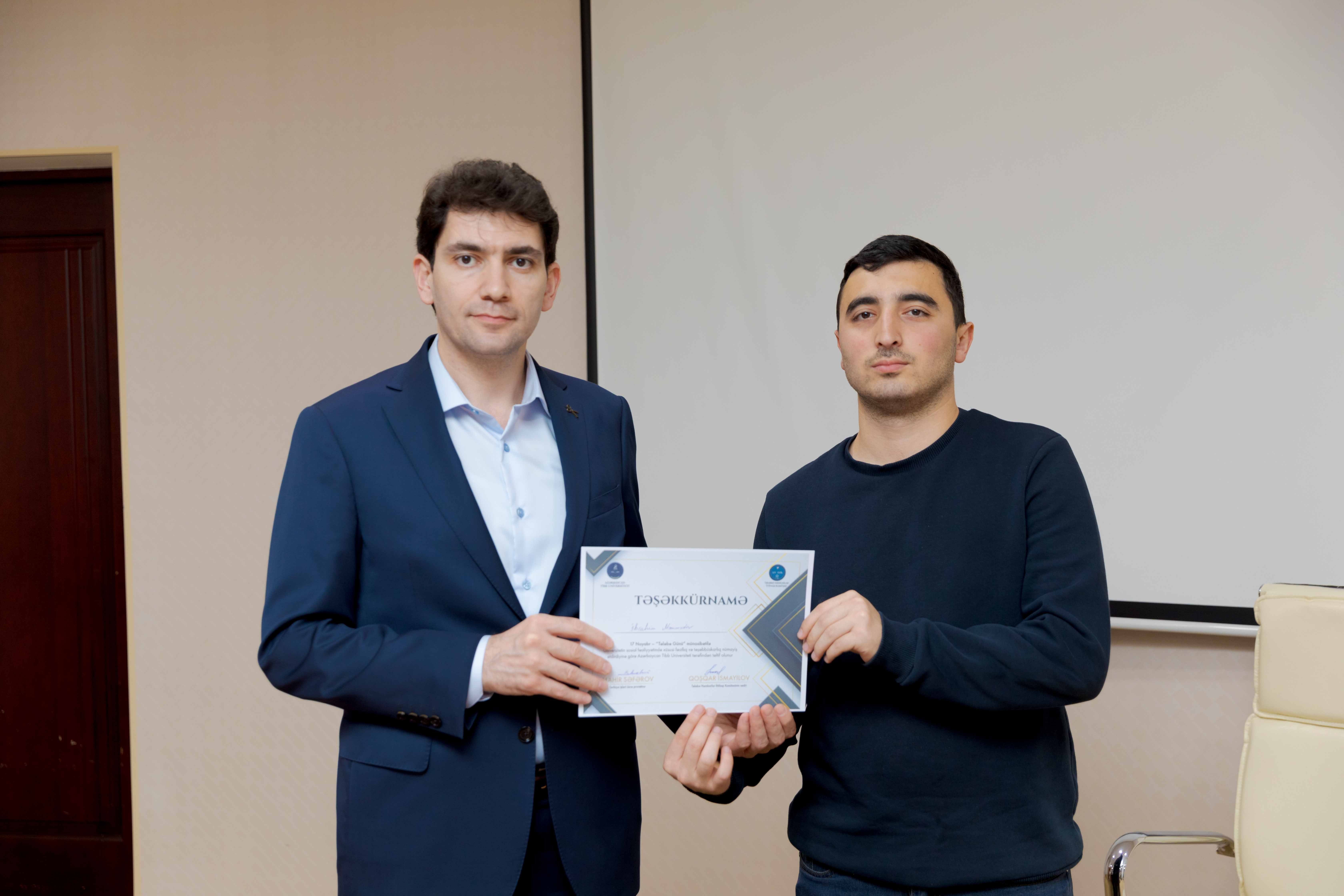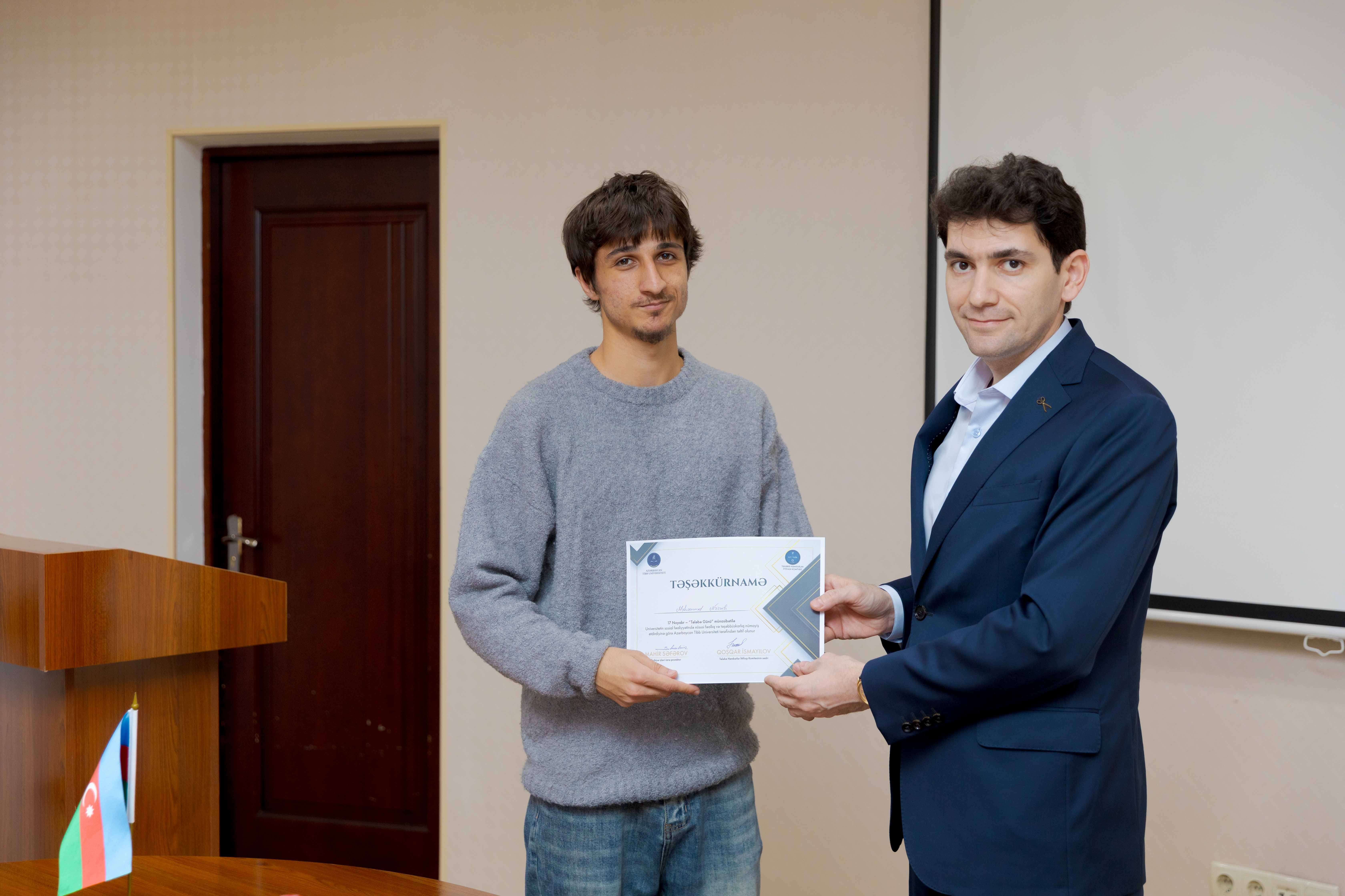 Tədbirin sonunda universitetin sosial-ictimai həyatında fərqlənən 30 tələbə Təşəkkürnamə ilə təltif olunub.