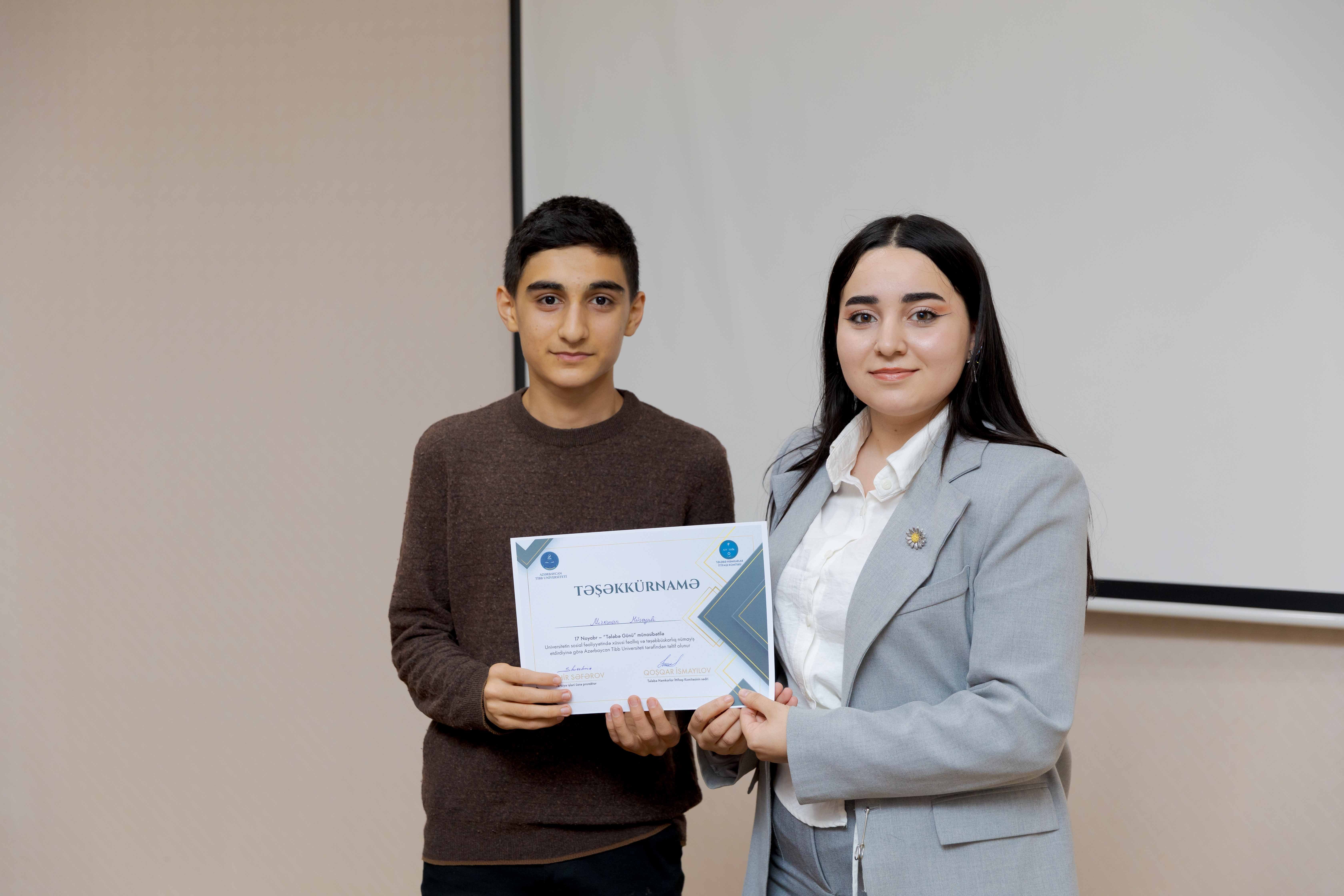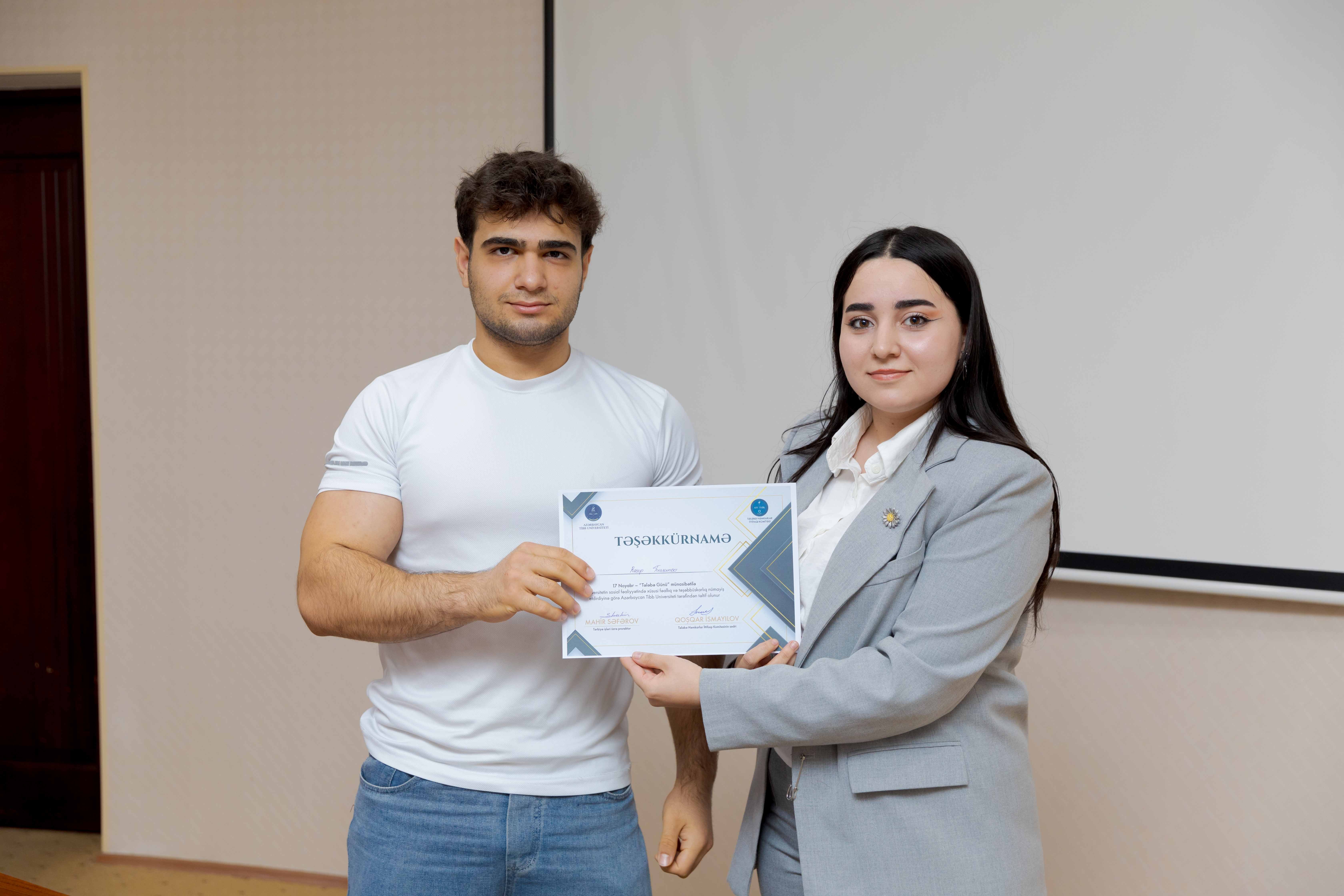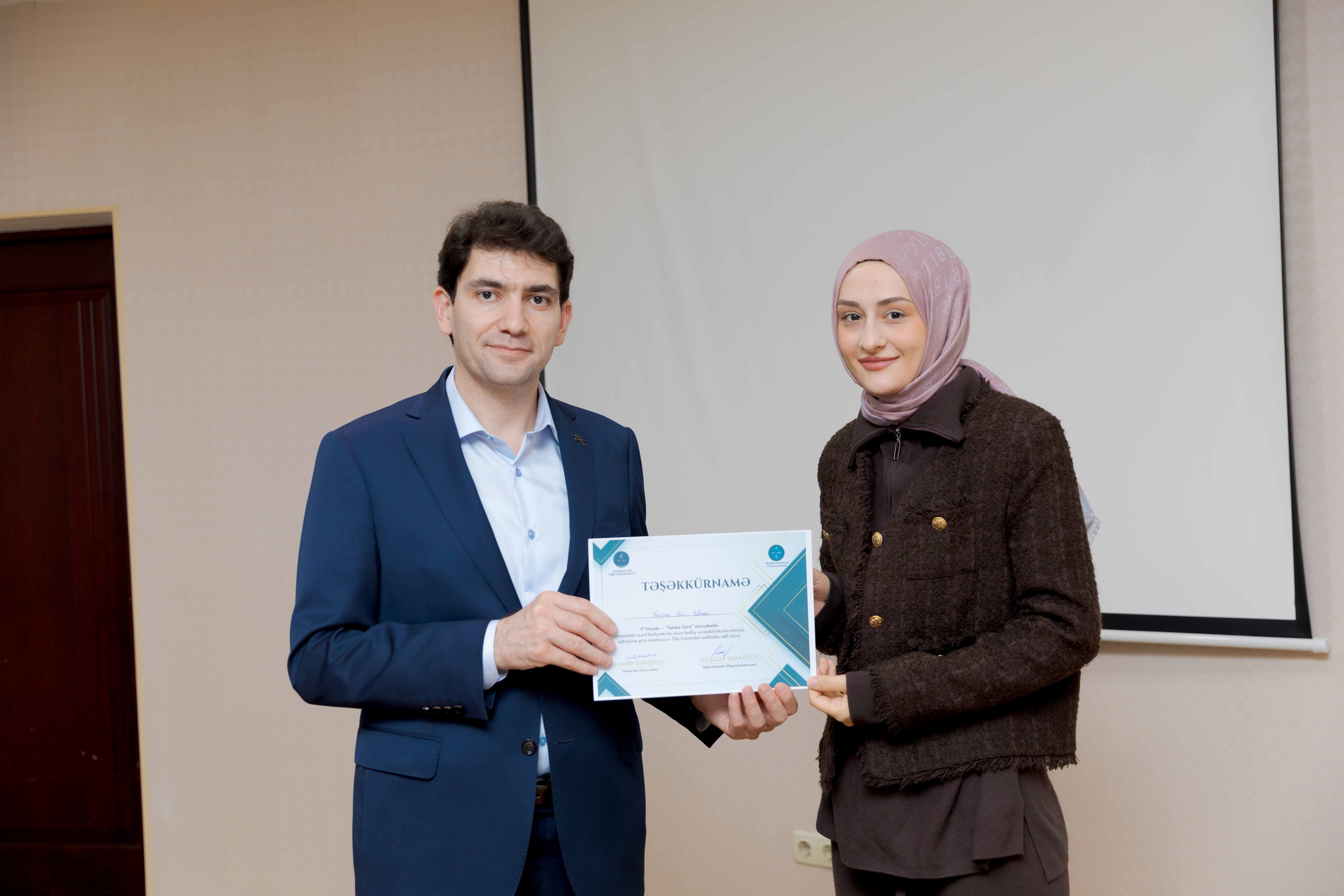Azərbaycan Tibb Universitetinin (ATU) Tələbə Həmkarlar İttifaqı Komitəsi 17 Noyabr – Tələbə Günü münasibətilə universitetin sosial-ictimai fəaliyyətində xüsusi fəallıq göstərən tələbələr üçün tədbir təşkil edib