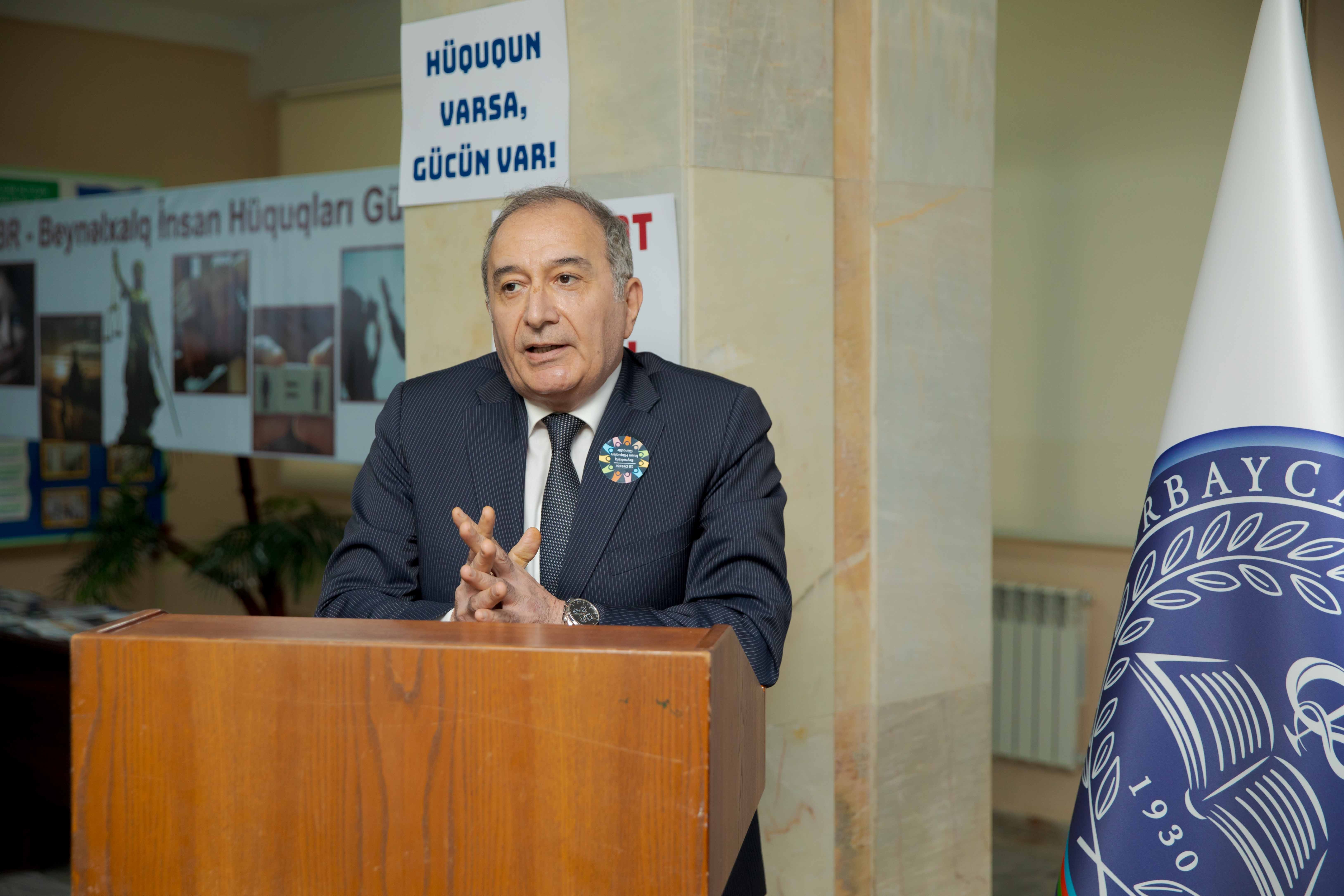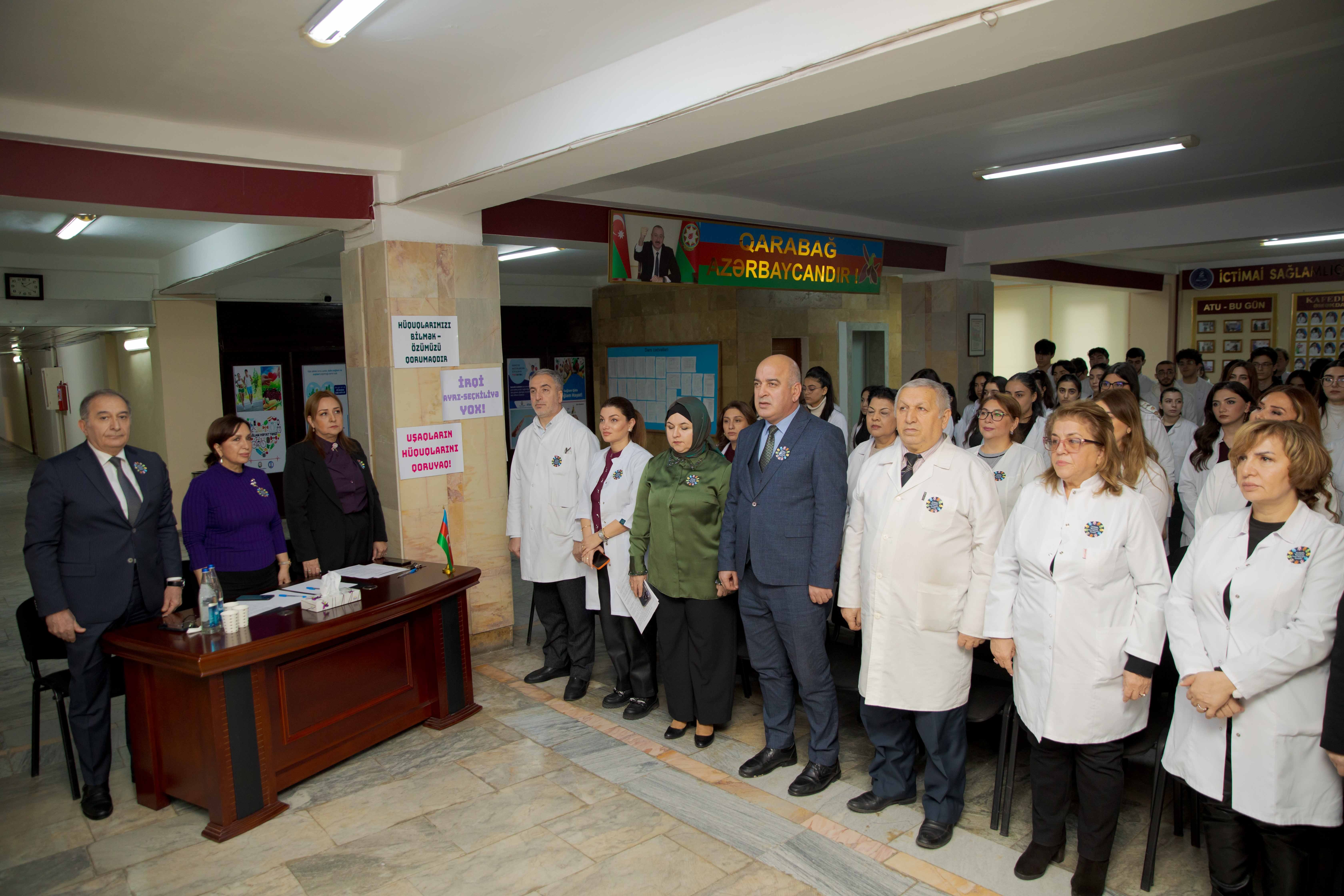 Azərbaycan Tibb Universitetinin (ATU) İctimai Səhiyyə fakltəsinin təşəbbüsü ilə İctimai sağlamlıq və səhiyyənin təşkili kafedrasında Beynəlxalq İnsan Hüquqları Günü münasibətilə professor-müəllim heyəti və tələbələrin iştirakı ilə tədbir təşkil olunub.