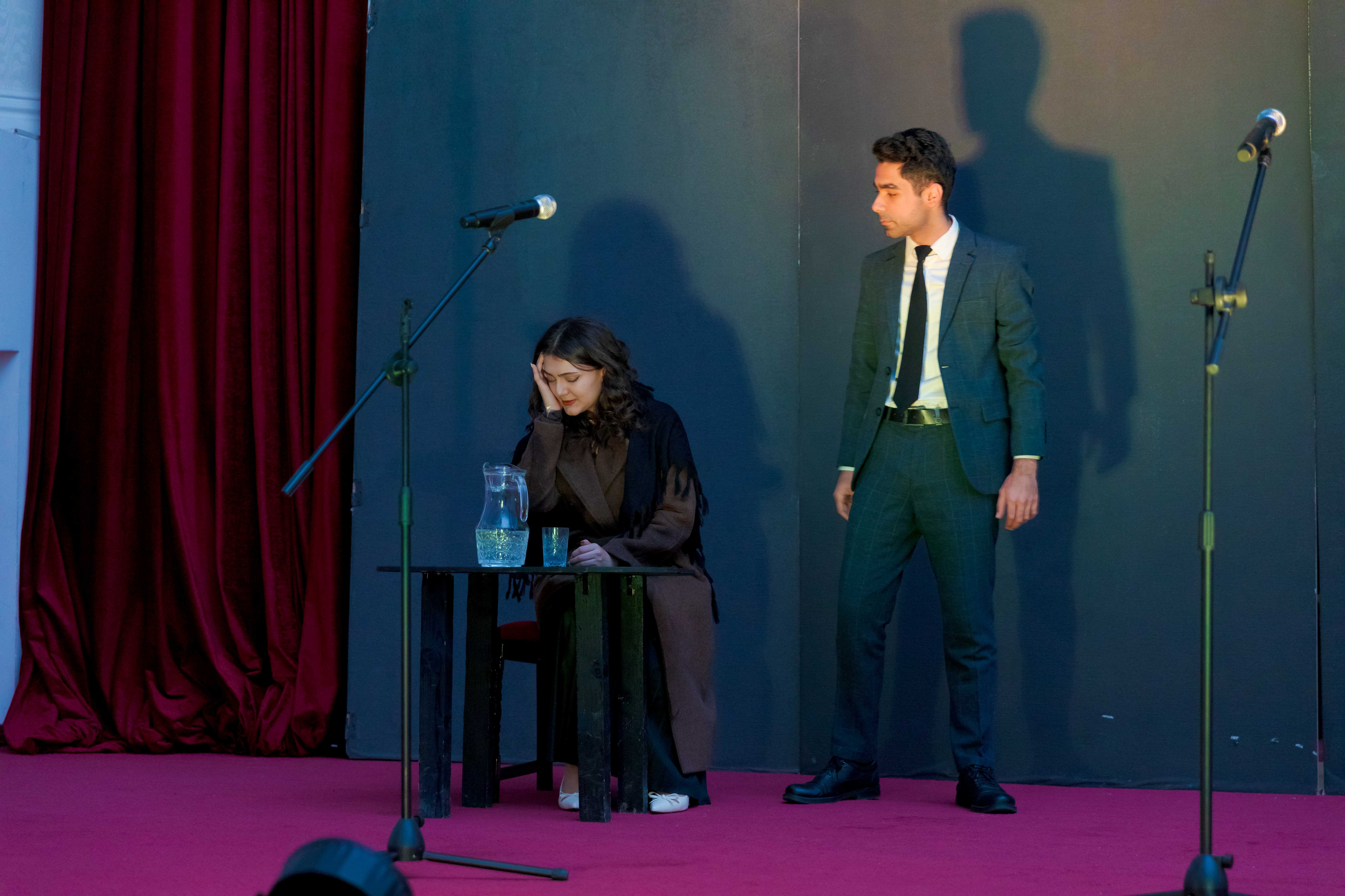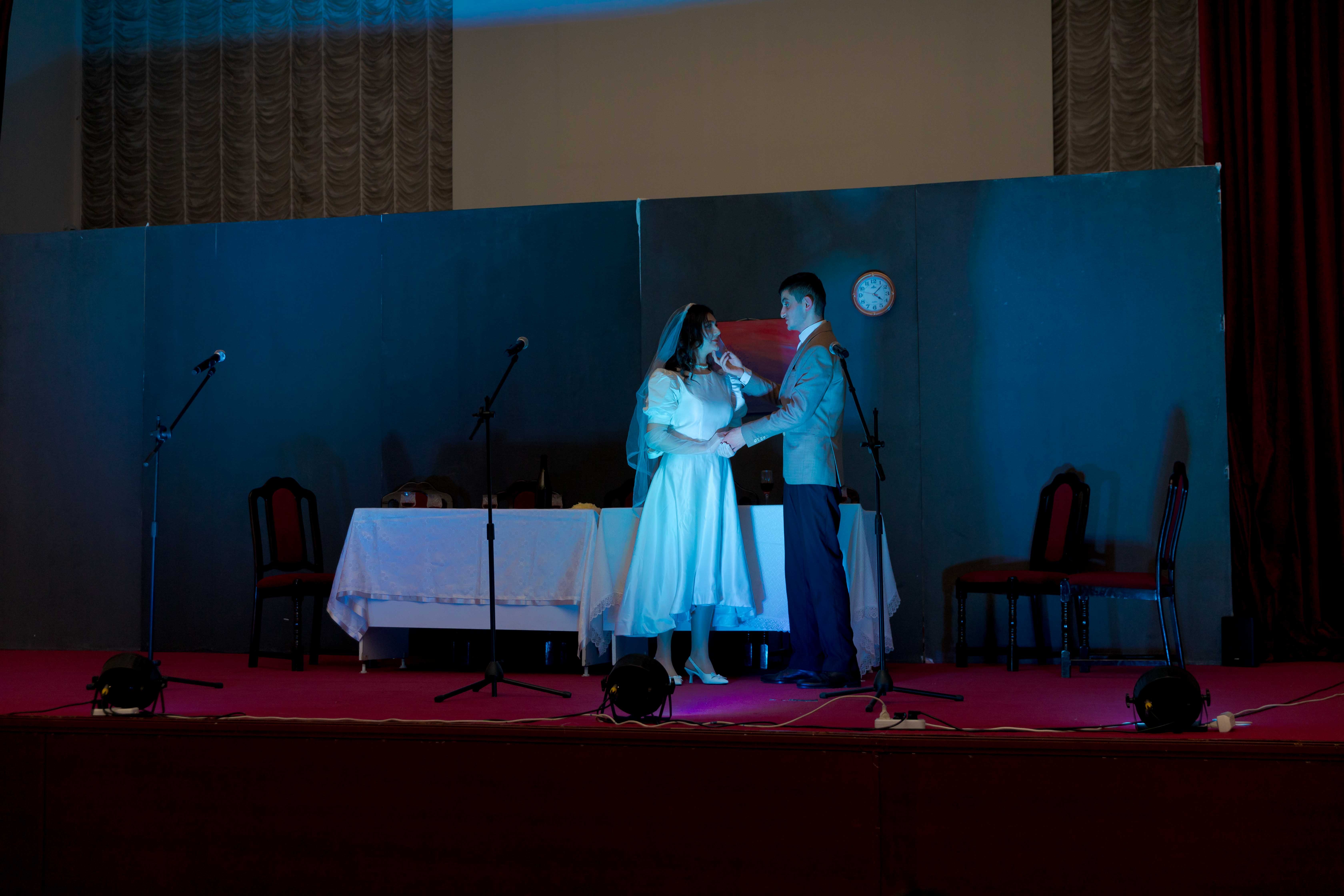 Tamaşada tələbə aktyorlar - Səid Qənbər (Mikayıl Müşfiq), İlahə Əliyeva (Dilbər Axundzadə), Aydın Çələbi (Frençli kişi), Elvin Abbaszadə (dost şair), Maarif Eyvazov (düşmən şair), İbrahim İbrahimov (müdrik şair), Elçin Fərzəliyev (novator şair), Asiman Məmmədli (qadın şair), Nihat Cabbarov (qorxaq şair), Aysel Manafova (ev sahibəsi), Aytac Vəliyeva (Gülər) öz rollarını yüksək peşəkarlıqla canlandıraraq tamaşaçıların alqışlarını qazanıblar.