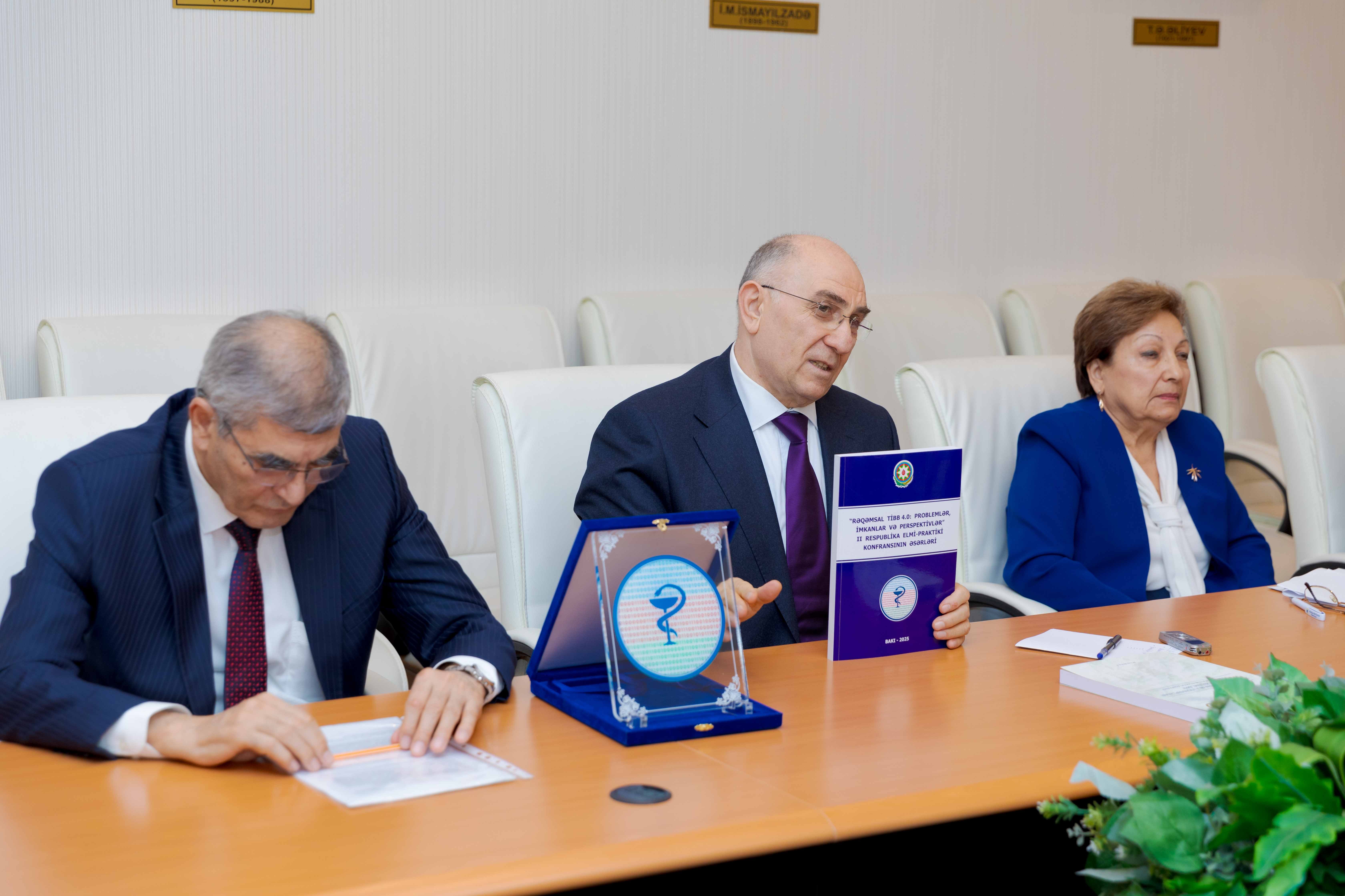 Alim cari ilin may ayında keçirilən “Rəqəmsal tibb 4.0: problemlər, imkanlar və perspektivlər” II respublika elmi-praktiki konfransını da xatırladıb. Qeyd edib ki, Azərbaycanda rəqəmsal səhiyyənin formalaşması, generasiya olunan böyük həcmli rəqəmsal səhiyyə və tibb məlumatlarının toplanması, emalı və mübadiləsi kimi bir çox elmtutumlu məsələlərə diqqətin artırılması, rəqəmsal səhiyyənin inkişaf istiqamətləri, problemləri və prioritetlərinin müəyyənləşdirilməsi, eyni zamanda müvafiq sahədə aparılan tədqiqatların monitorinqinin həyata keçirilməsi bu tədbirin əsas hədəflərindən idi. Konfrans Azərbaycanda rəqəmsal tibbin aktual elmi problemləri və prioritetlərinin müəyyənləşdirilməsi baxımından mühüm nəticələrlə yadda qalmışdır.