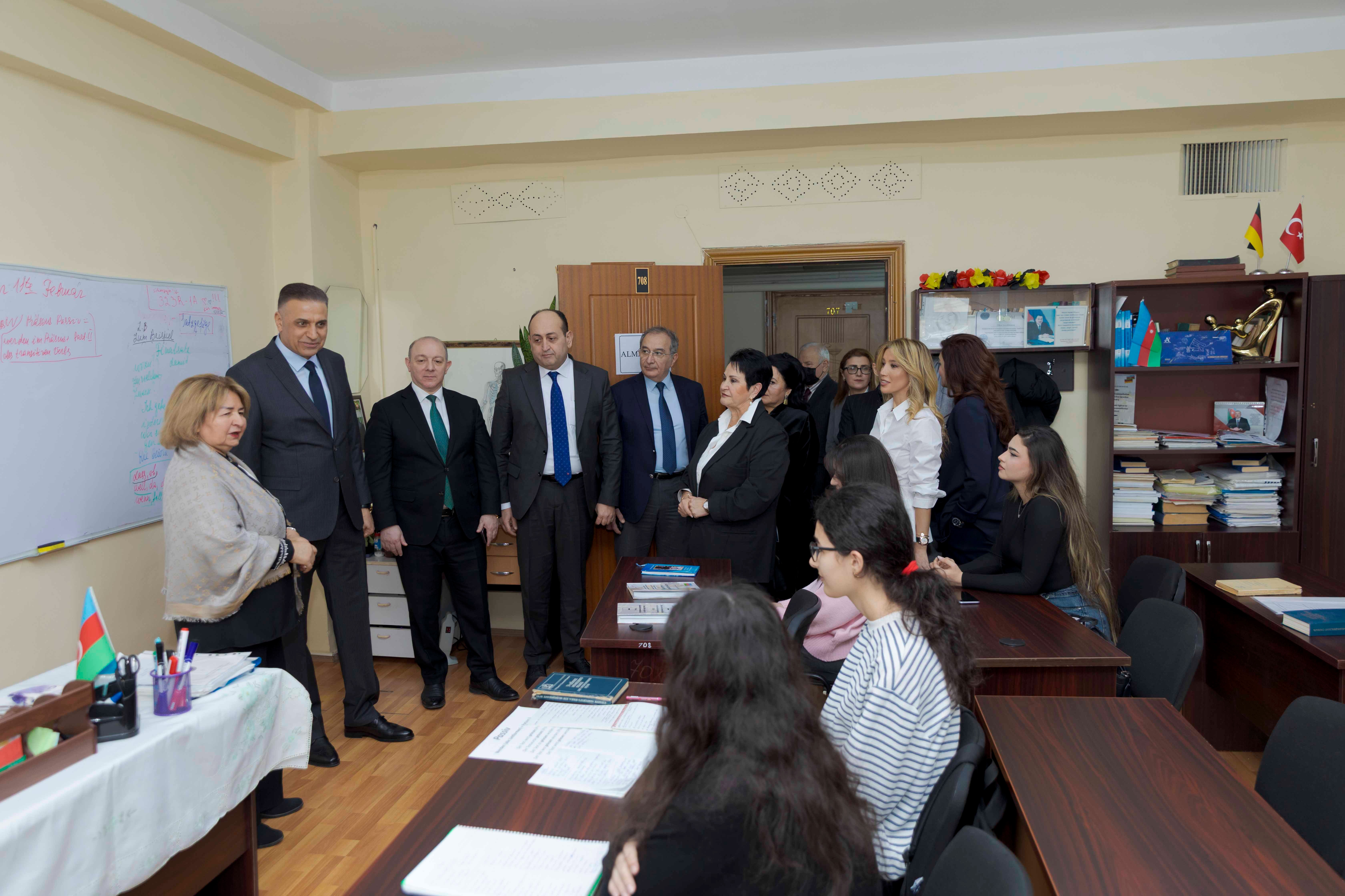 Tədbirin sonunda qonaqlar və iştirakçılar Xarici dillər kafedrasında yaradılmış şəraitlə, dərslərin gedişi ilə yaxından tanış olub, kafedrada qurulmuş stendlərə baxıblar.