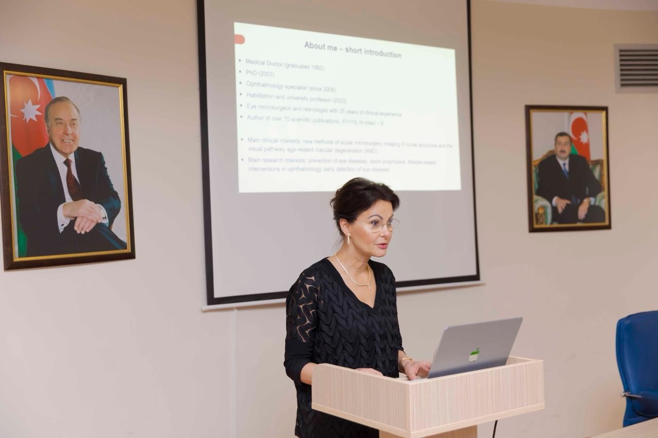 Daha sonra professor Agnieszka Kaminskanın “Polşa təcrübəsində oftalmologiya: tibb və ictimai səhiyyə arasında” mövzusunda məruzəsi dinlənilib. Professor qeyd edib ki, dünya üzrə təxminən 2,2 milyard insan müxtəlif dərəcəli görmə pozğunluğu və ya korluqdan əziyyət çəkir və bu halların 1 milyarddan çoxu qarşısı alına bilən və ya müalicə oluna bilən səbəblərlə bağlıdır. Onun sözlərinə görə, görmə itkisinin əsas səbəbləri sırasında katarakta, qlaukoma, refraksiya qüsurları və yaşa bağlı makulyar degenerasiya xüsusi yer tutur. Avropada isə təxminən 90 milyon insan görmə problemləri ilə üzləşir ki, onların 1,3 milyonu tam korluq səviyyəsindədir.